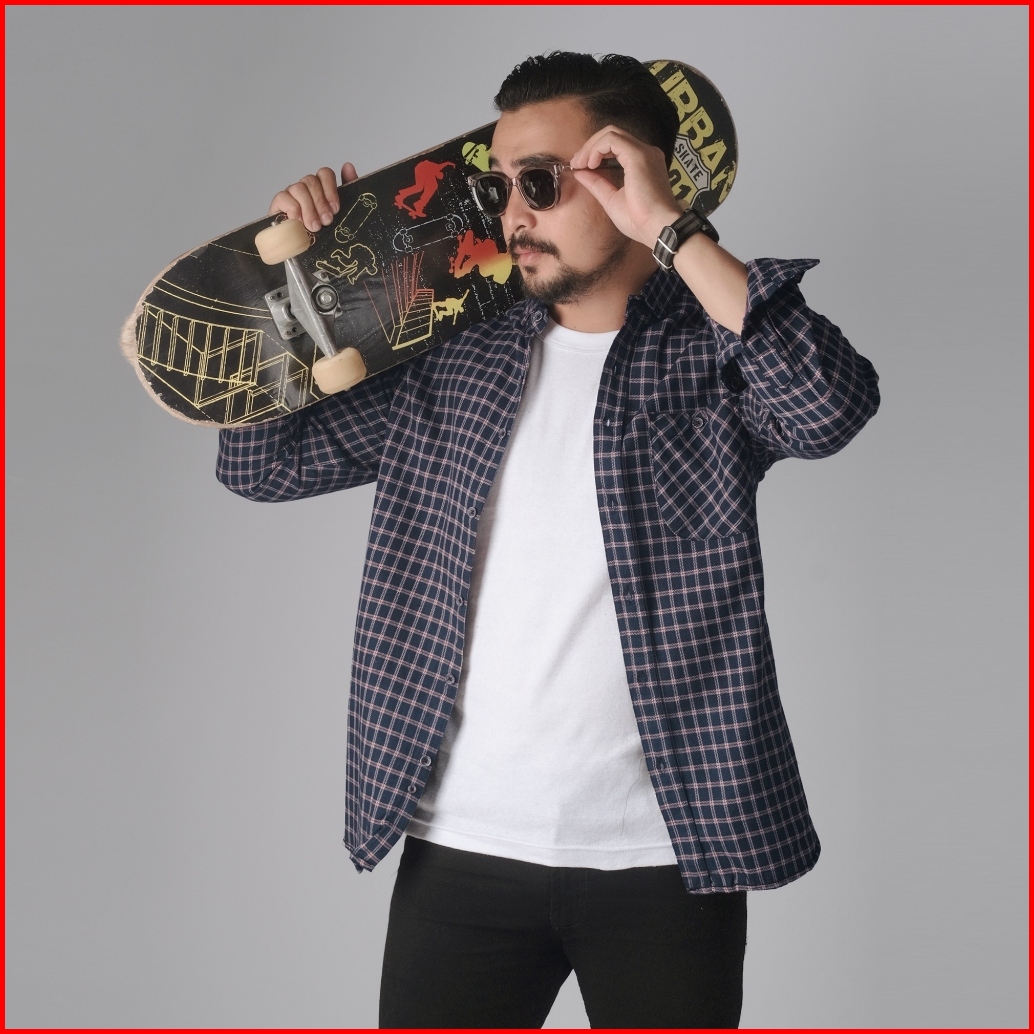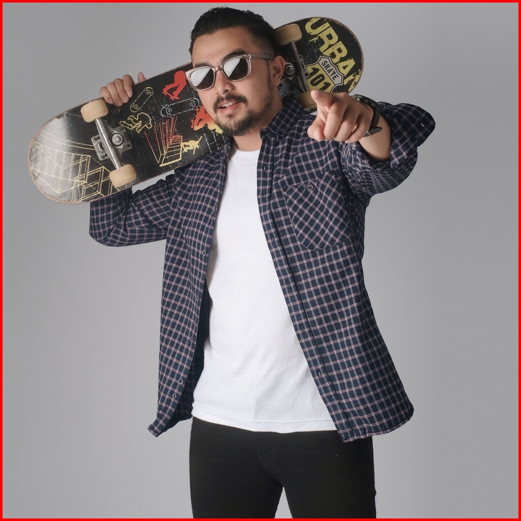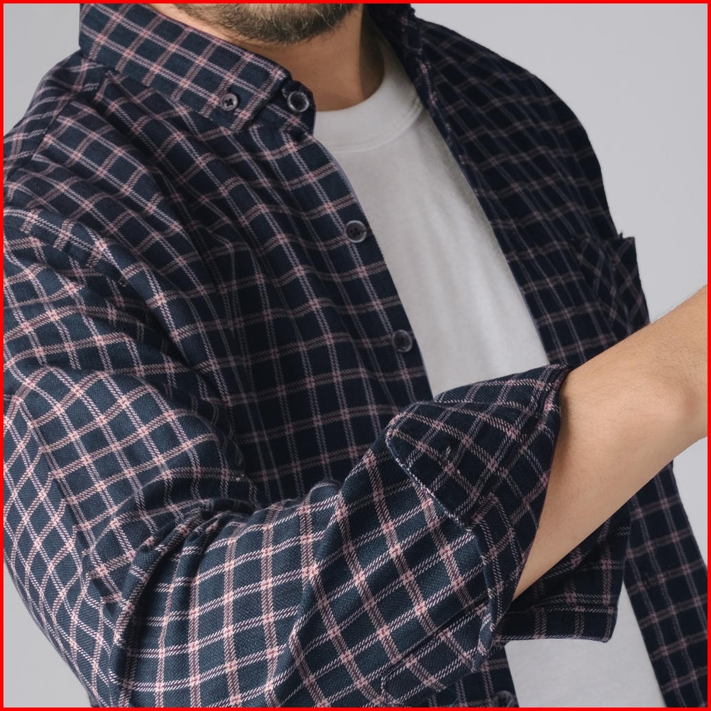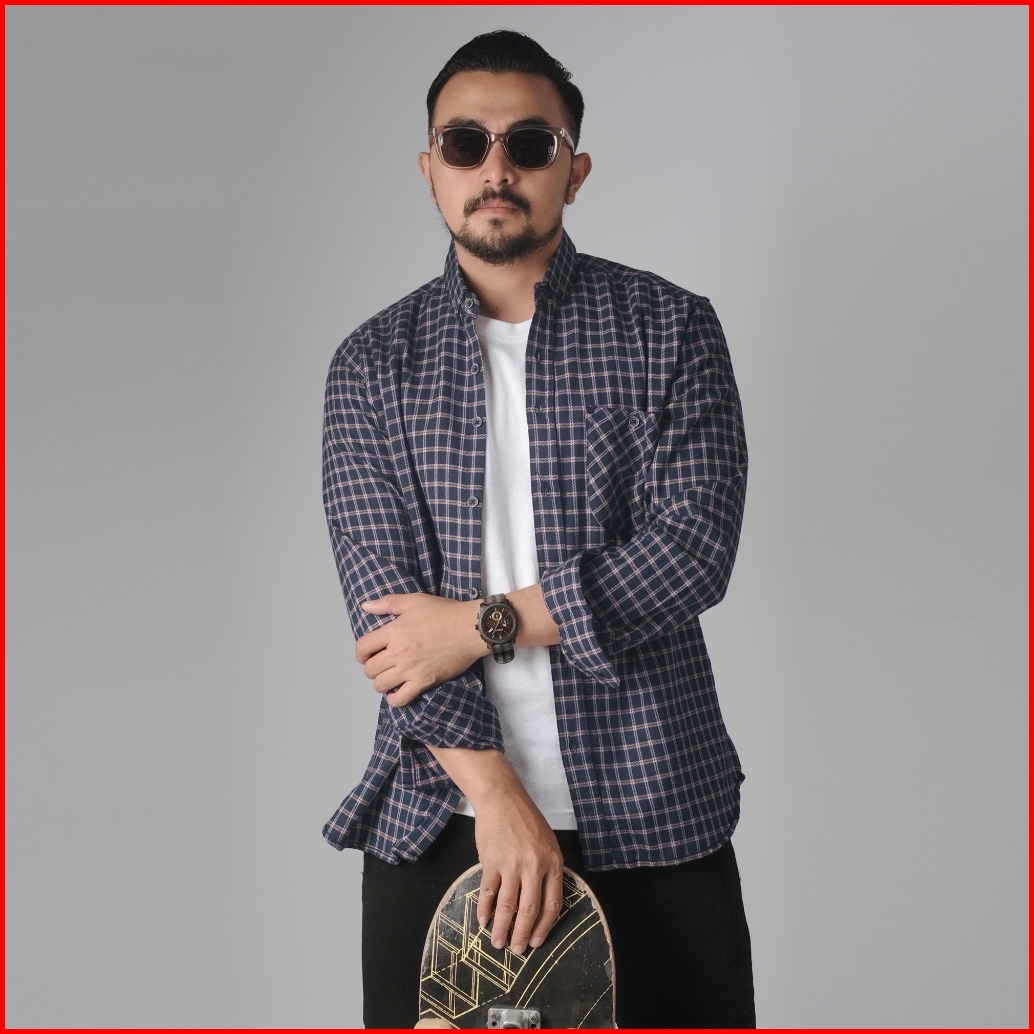 Dgm Kemeja Flanel Pria Lengan Panjang Premium Kemeja Pria Navy Garis Kecil Merah 2659