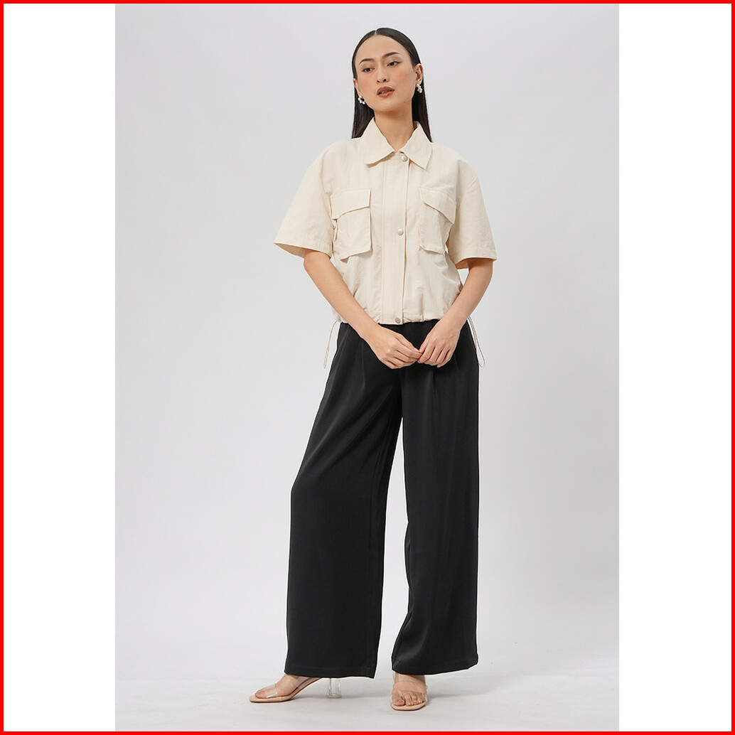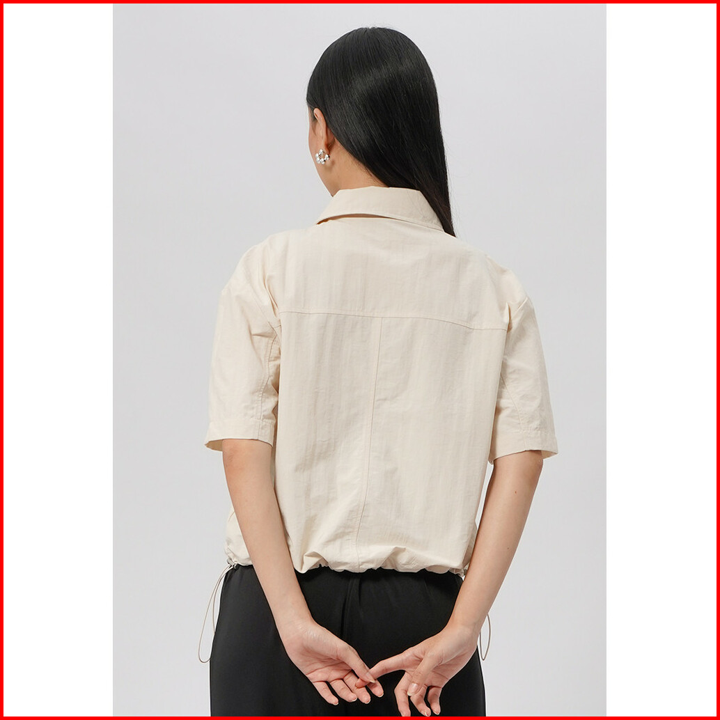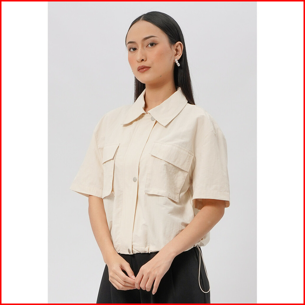 Executive Double Pocket Crop Blouse Ecru