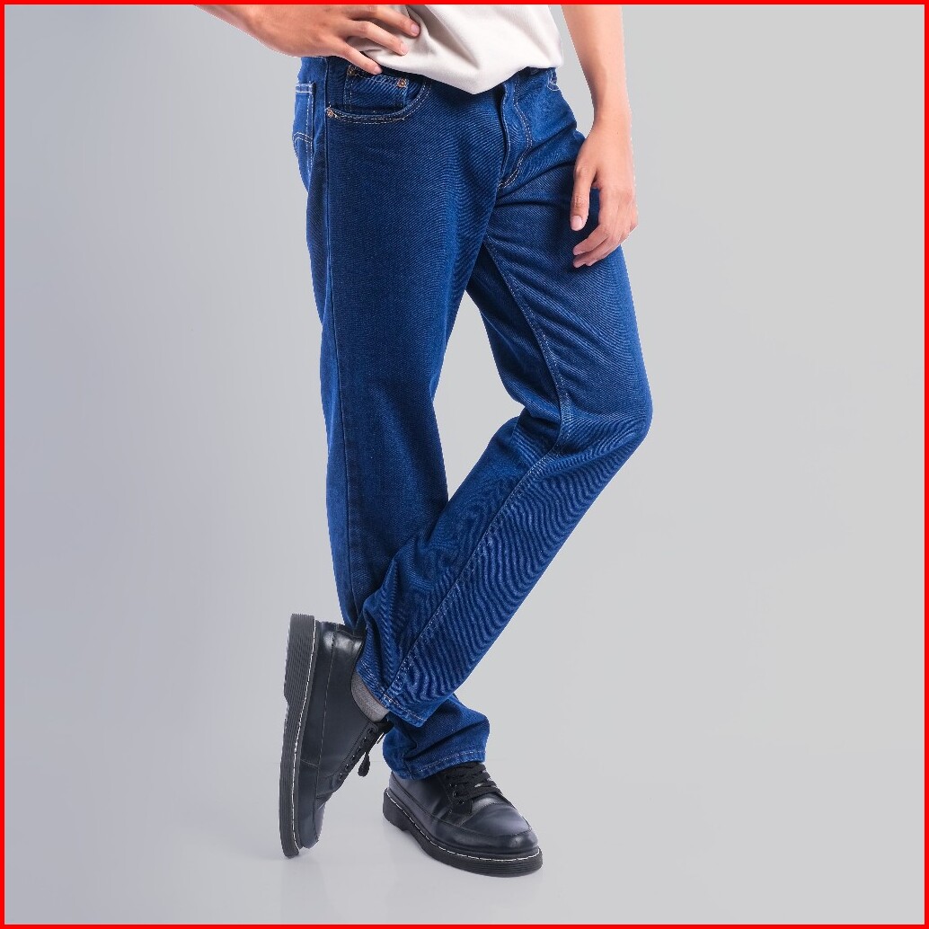 Dgm Fashion Celana Jeans Standar Biru Polos Panjang Basic 6161