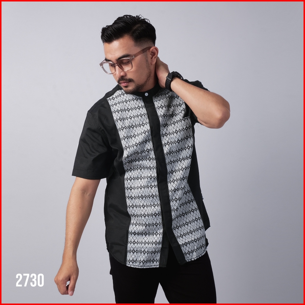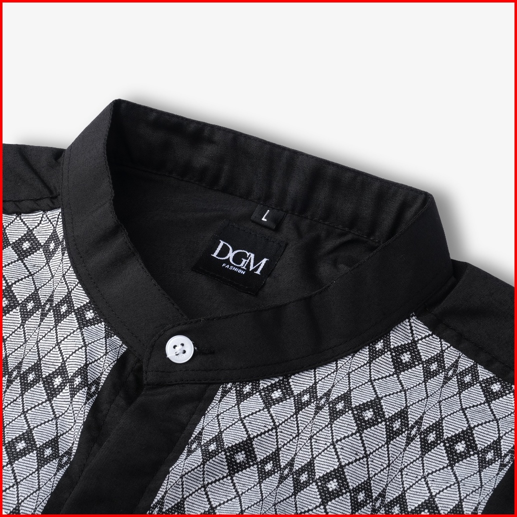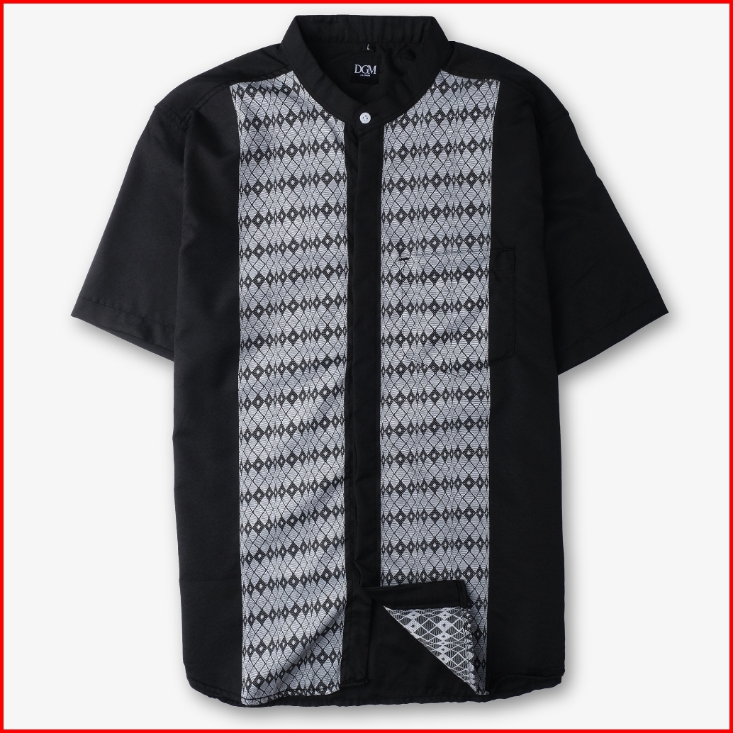 Dgm Baju Koko Pria Lengan Pendek Bordir Premium Hitam Motif Mozaik Baju Koko 2730