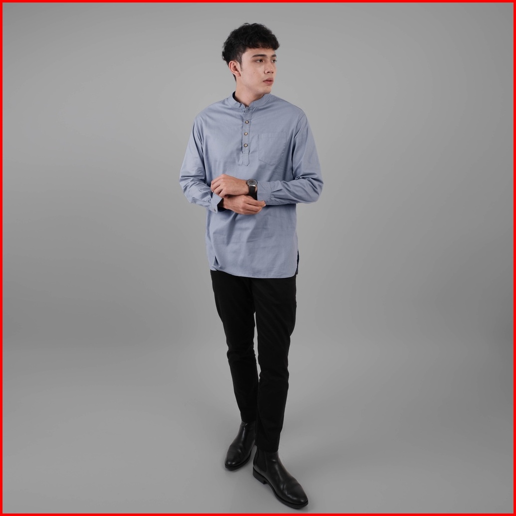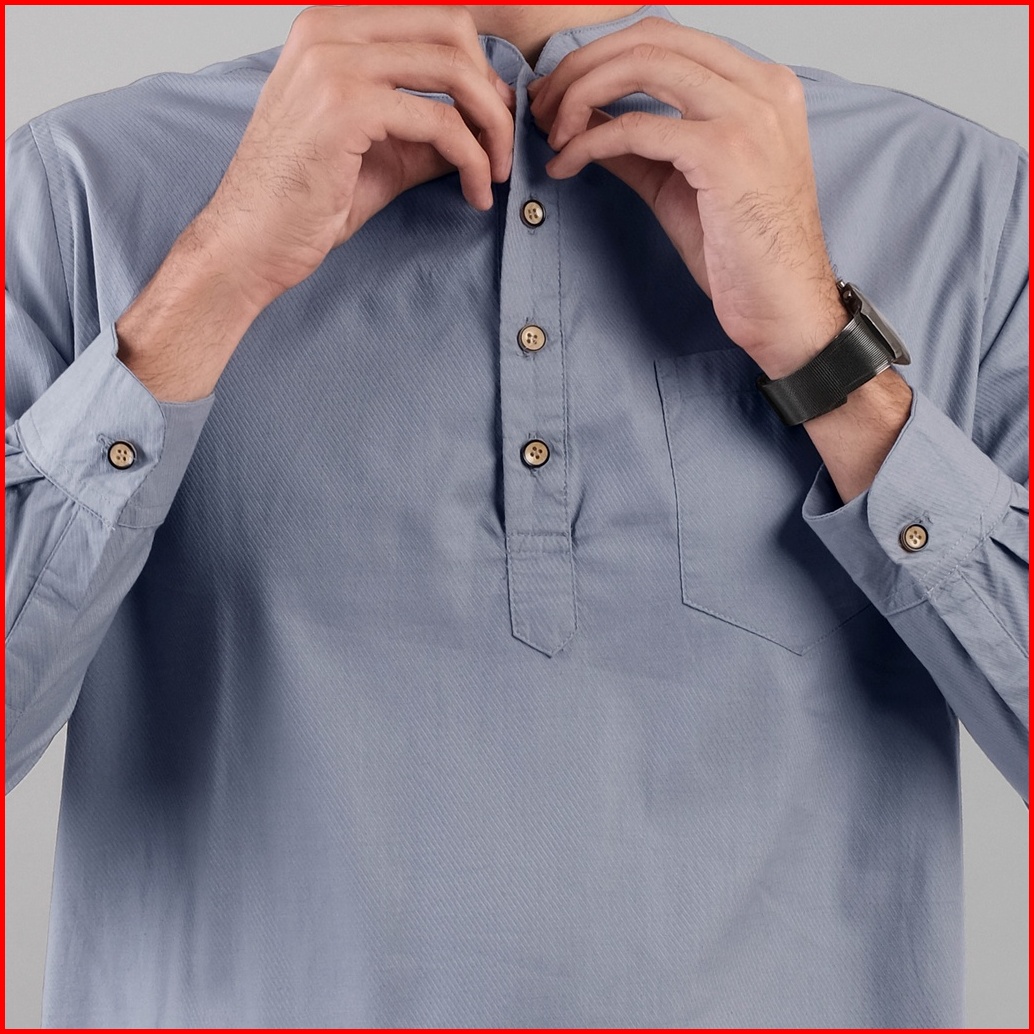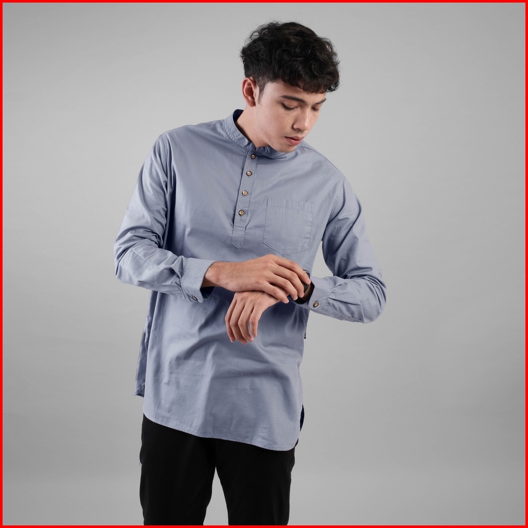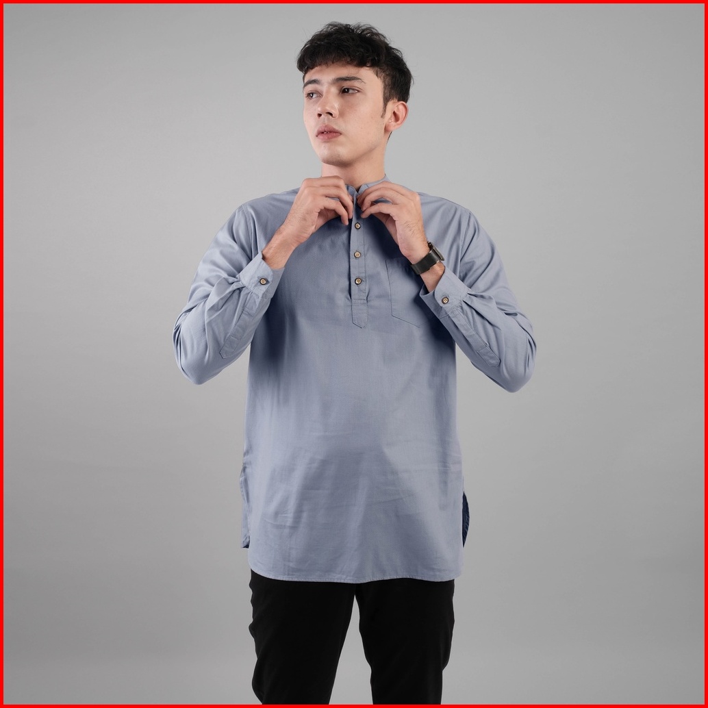 Dgm Baju Koko Pria Polos Katun Weave Premium Lengan Panjang Grey Koko Kurta 1605