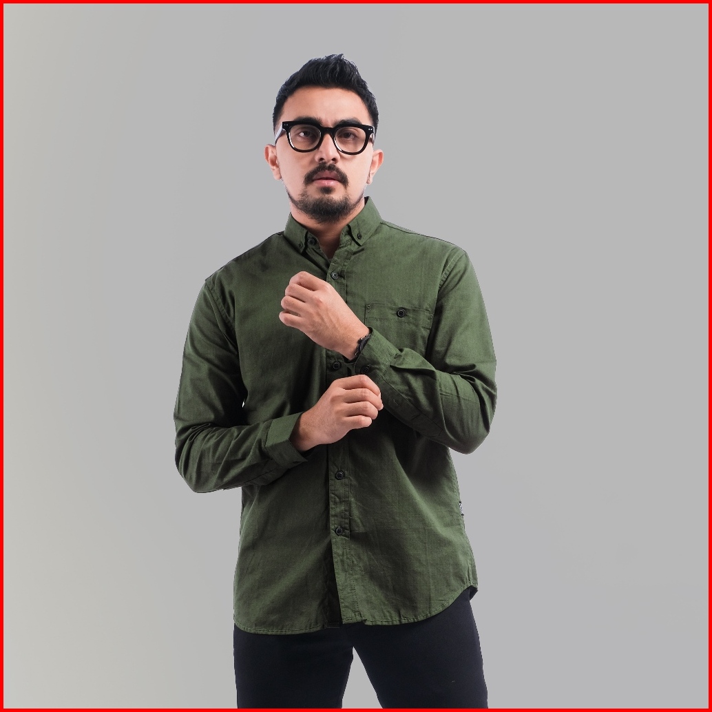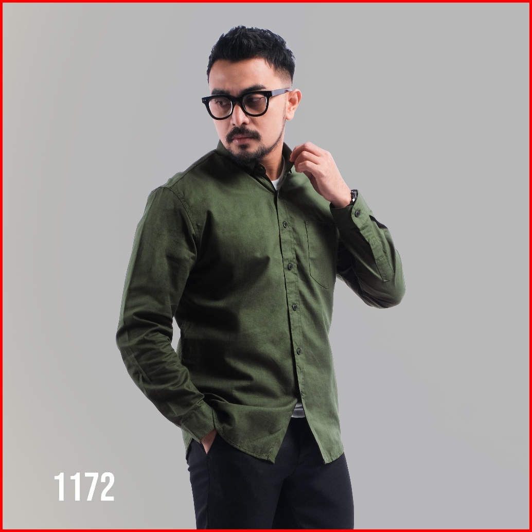 Dgm Fashion Kemeja Pria Polos Panjang Collar Army 1172
