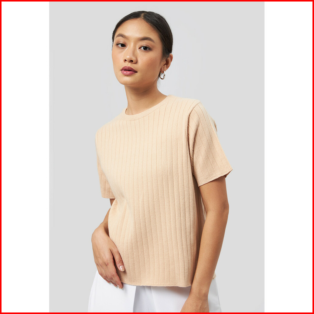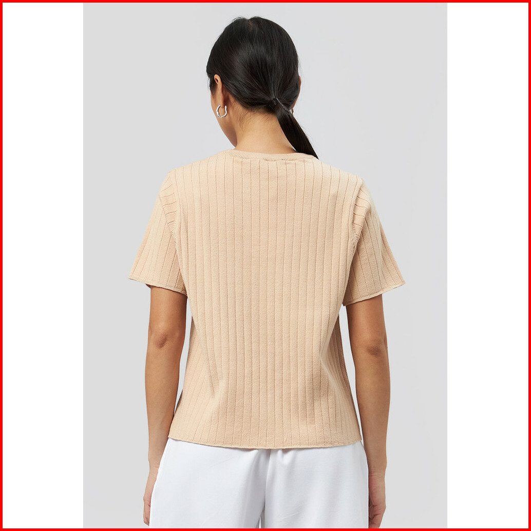 Executive Lettuce Hem Short Sleeve Top Beige