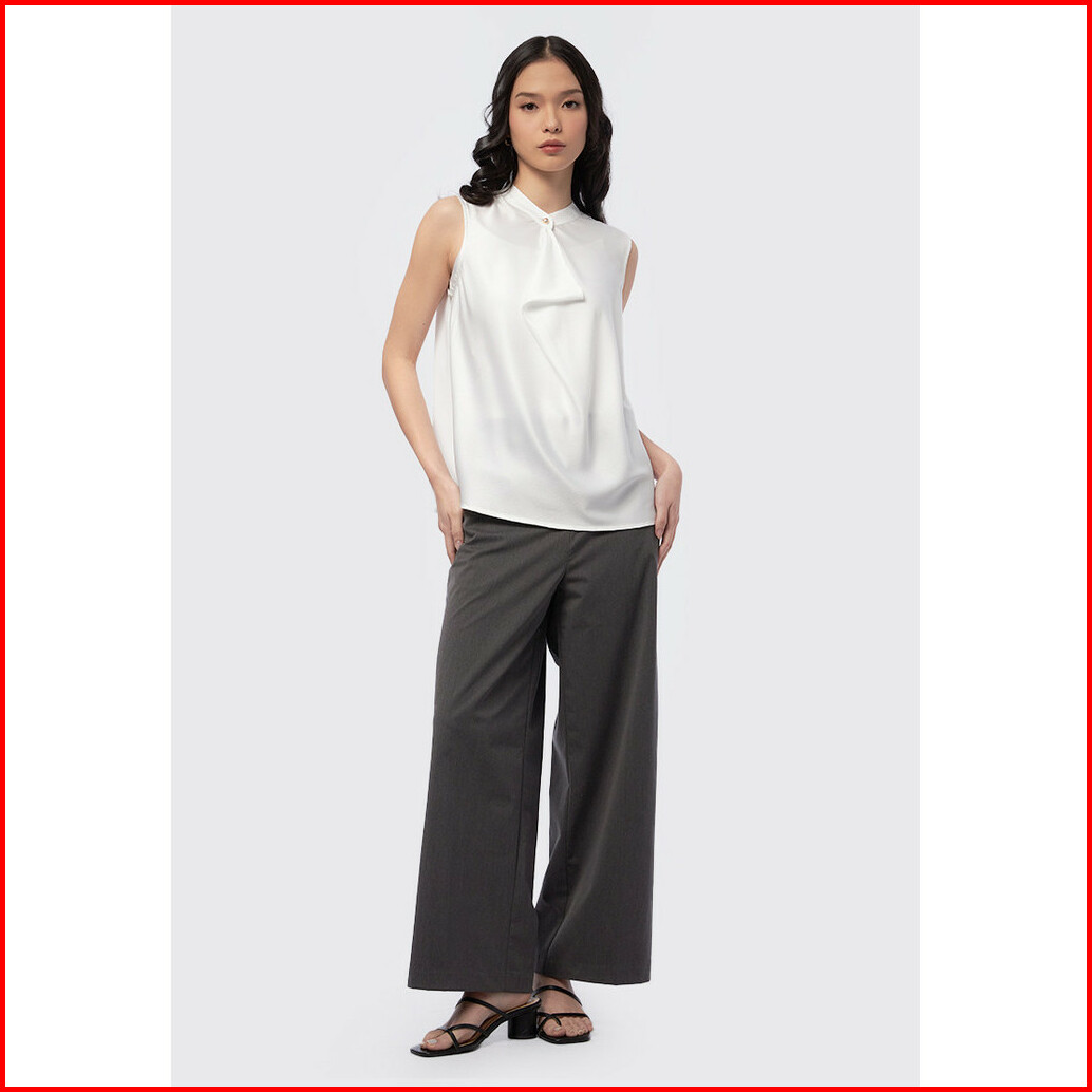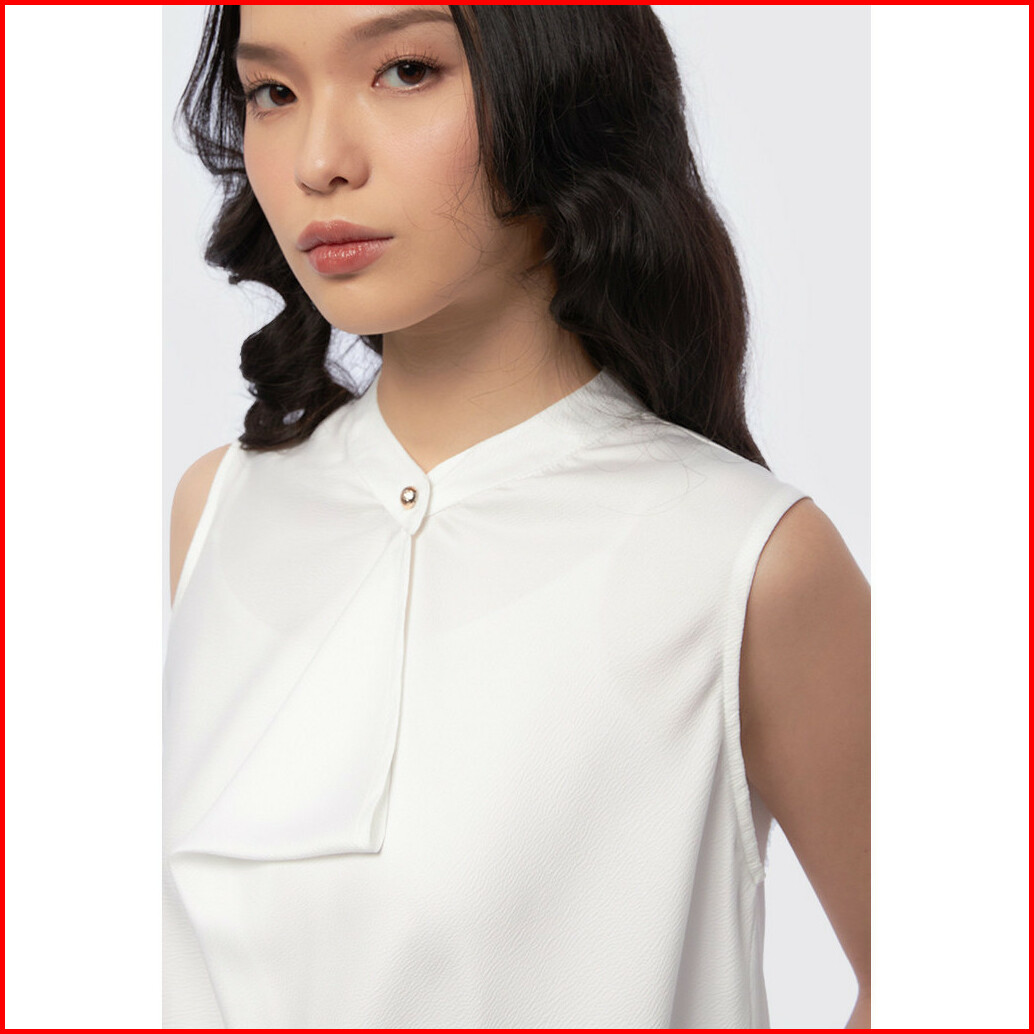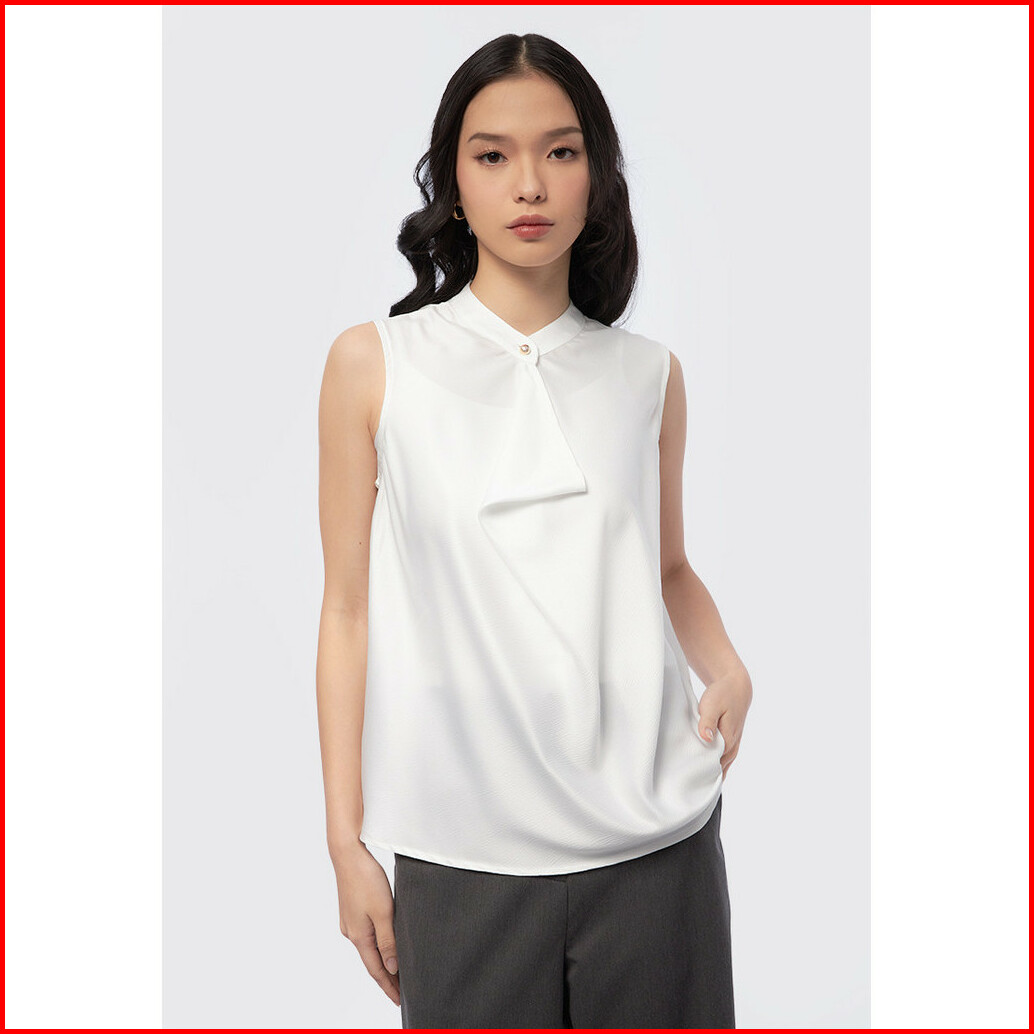 Executive Sleeveless Blouse With Drapped Front Off White