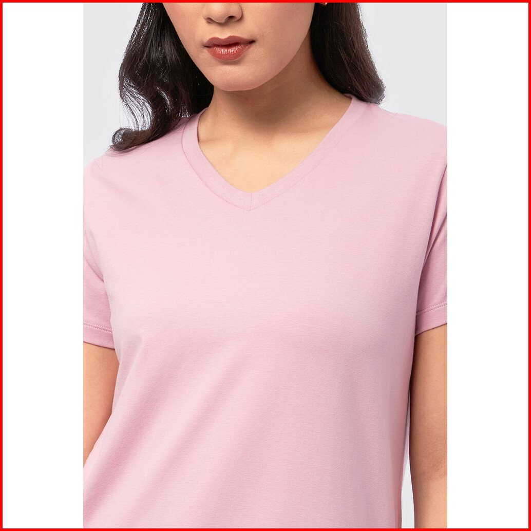 Executive Basic V-neck Cotton T-shirt Pink