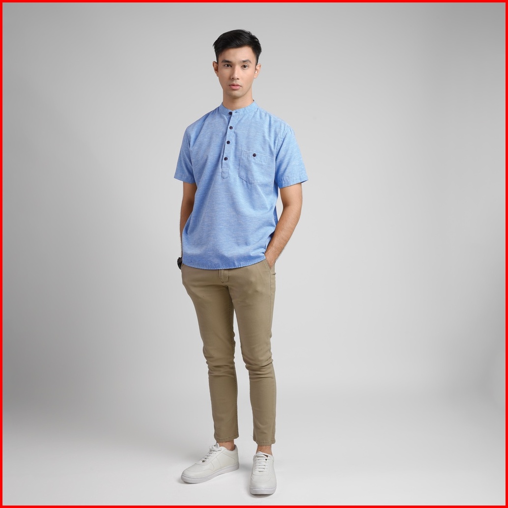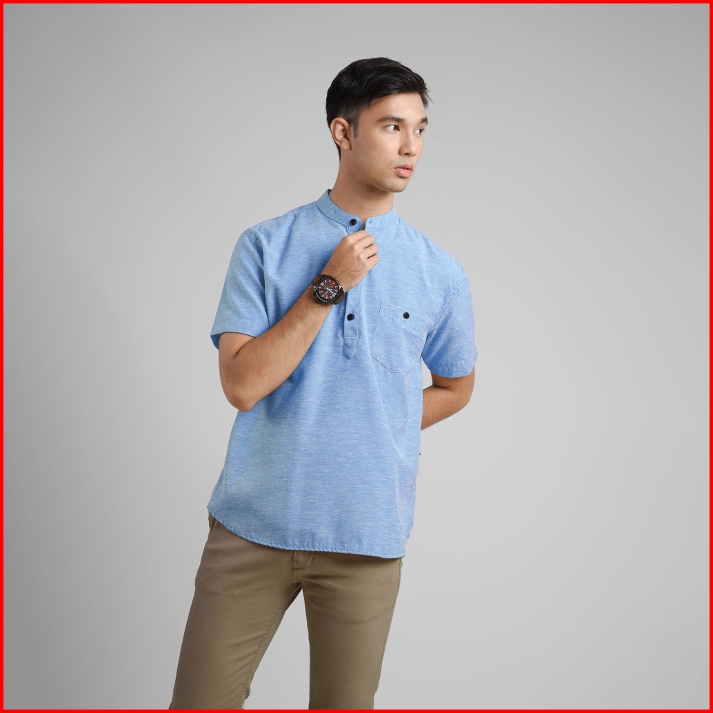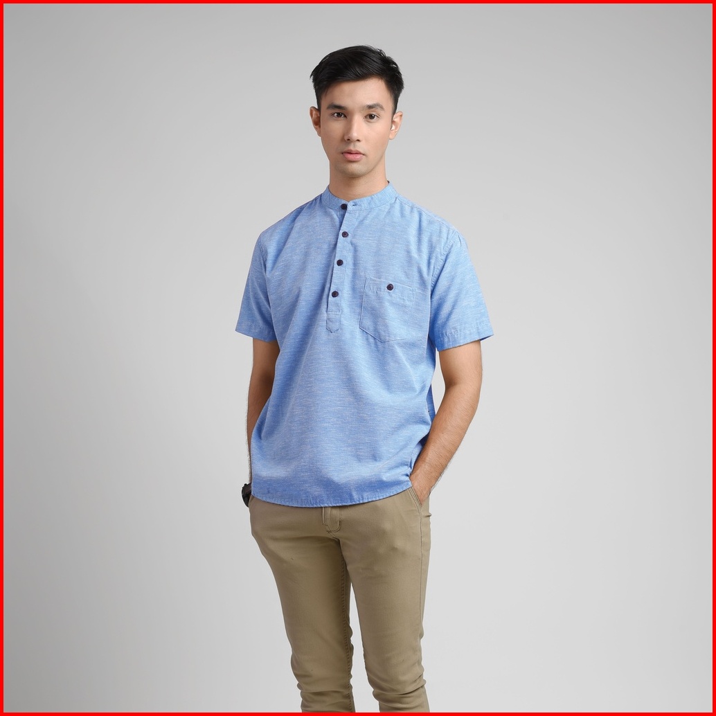 Dgm Kemeja Polos Pria Sanghai Lengan Pendek Fischeri Blue Kemeja Pria Kemeja 1230