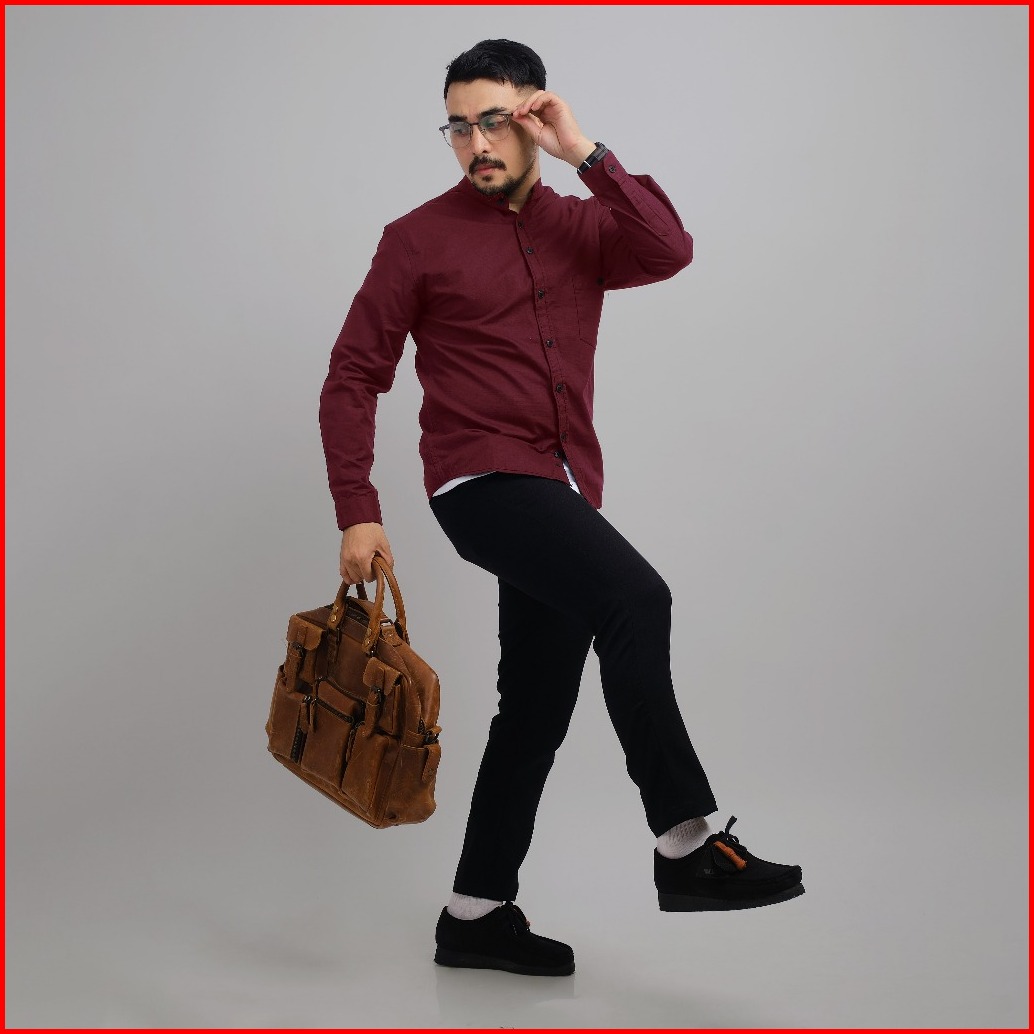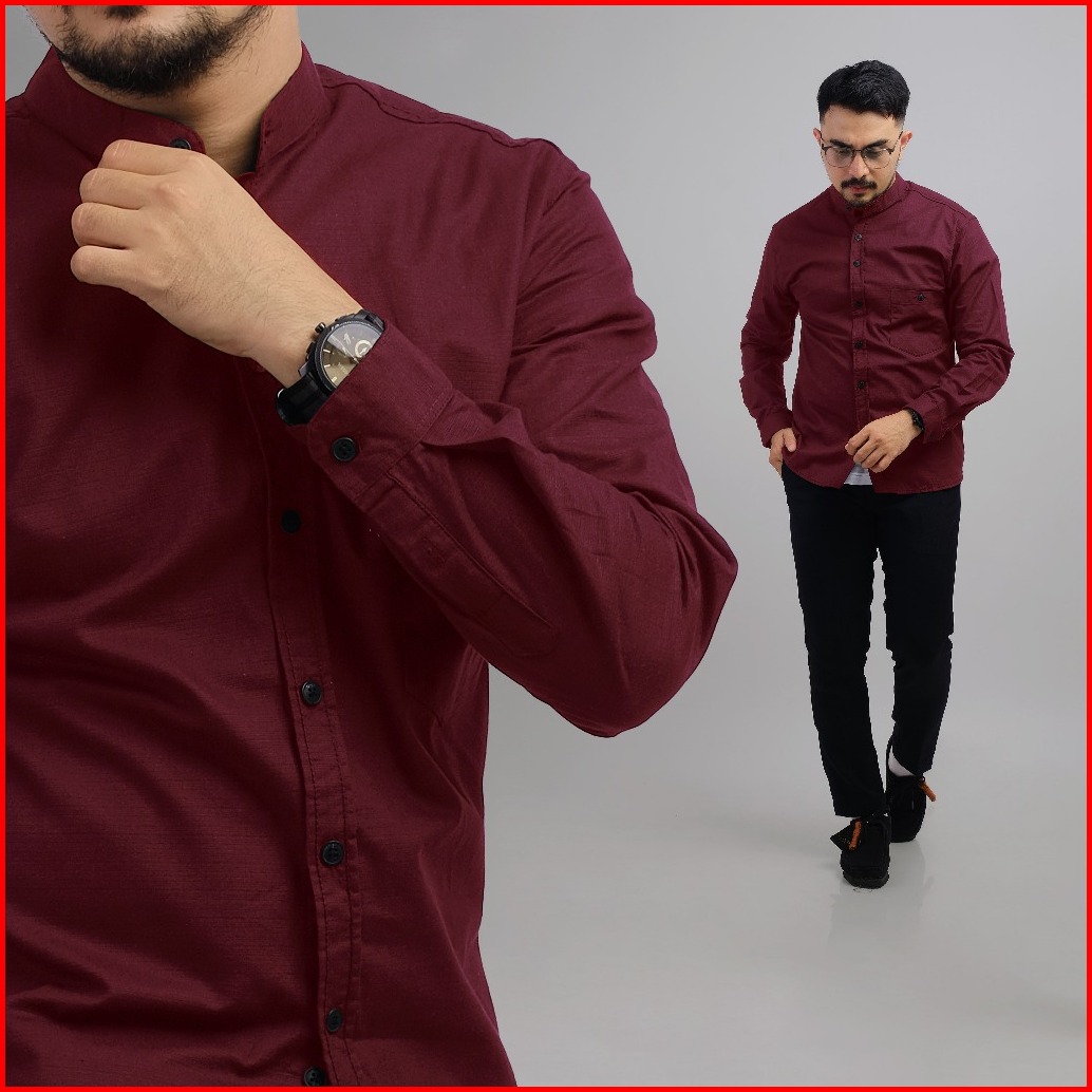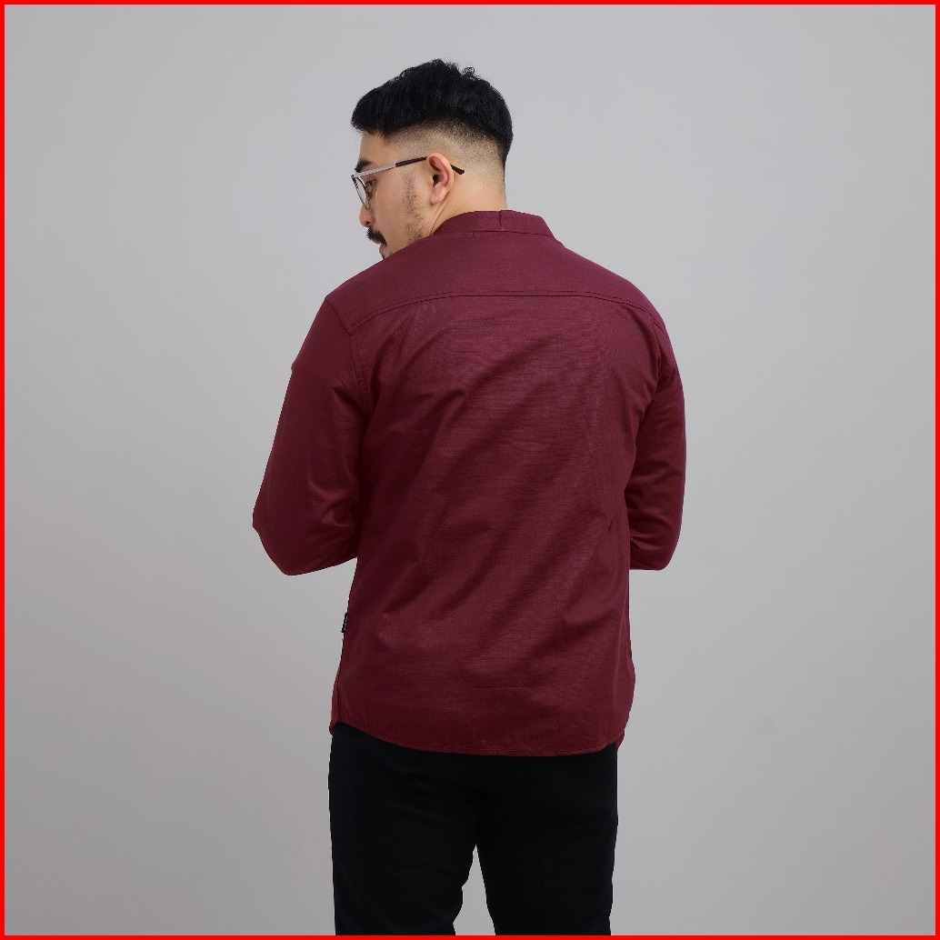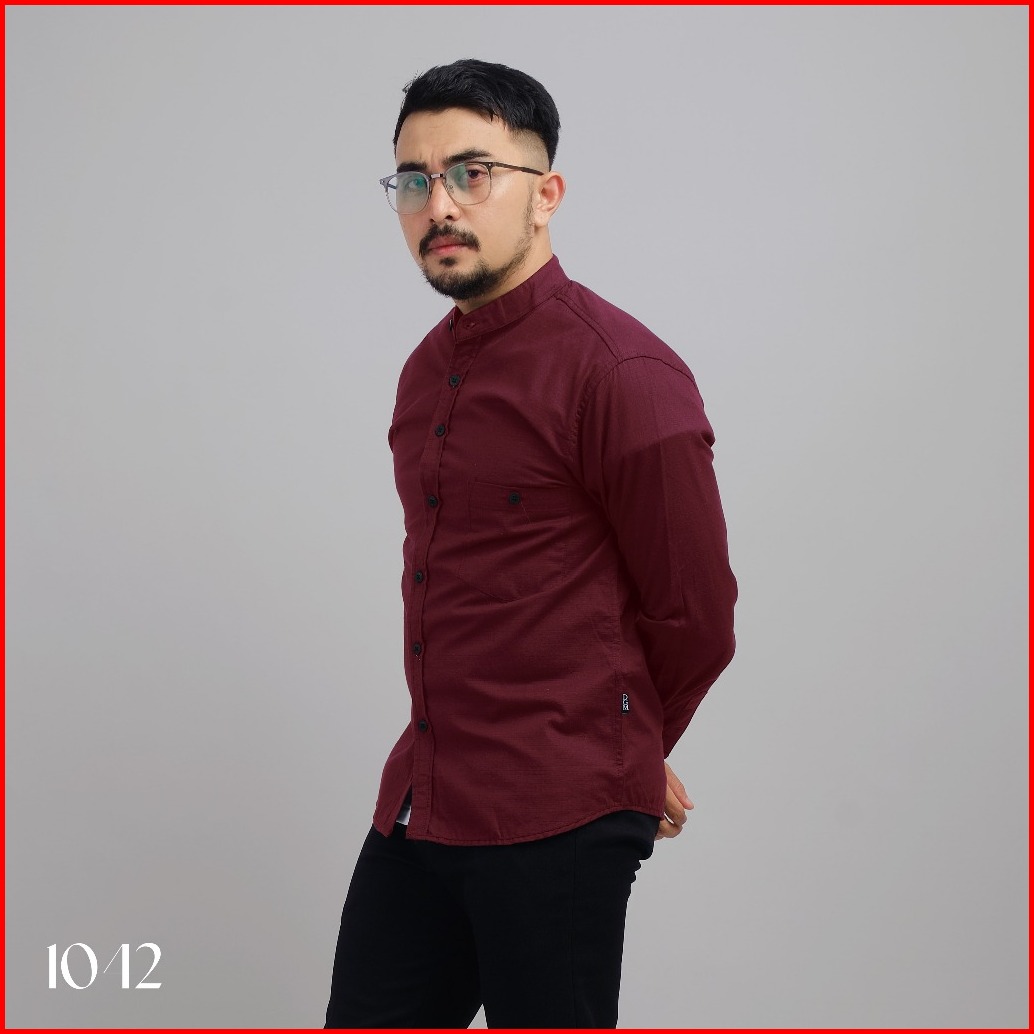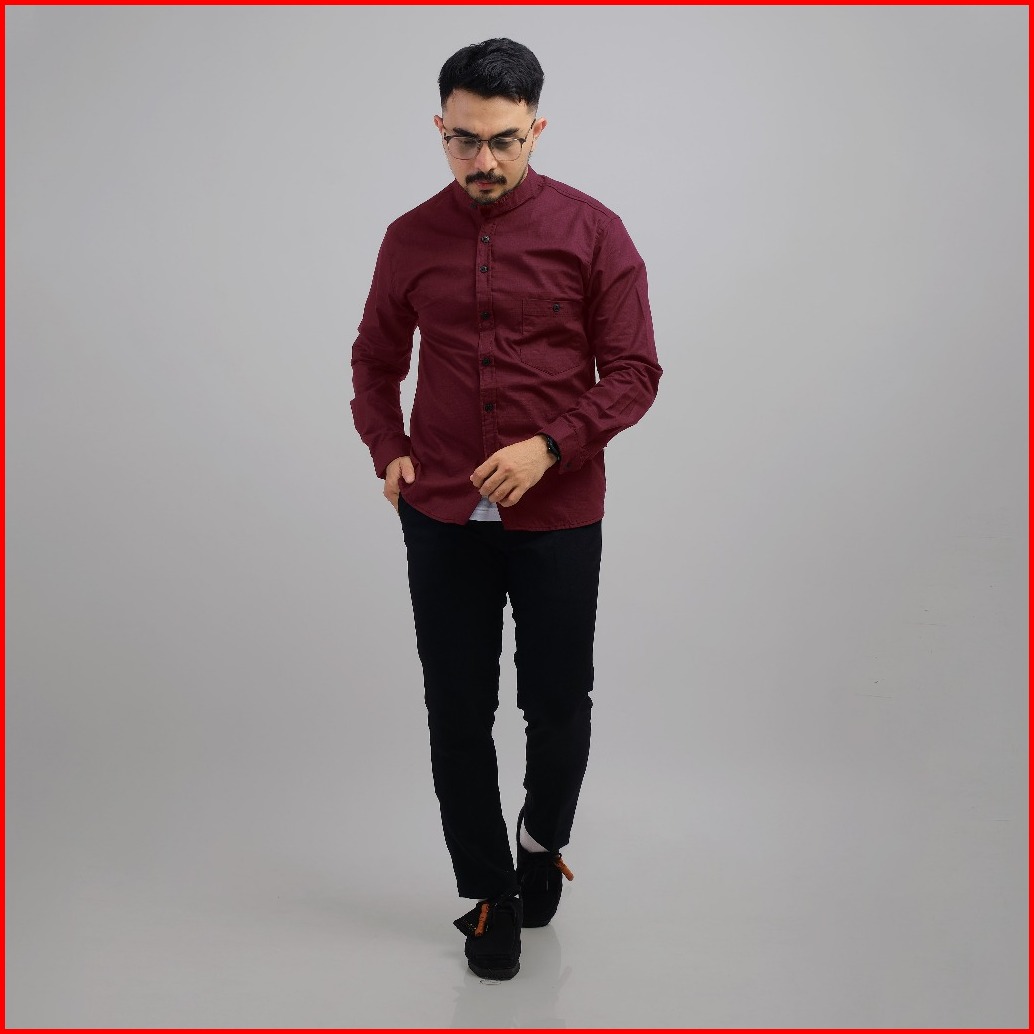 Dgm Kemeja Polos Pria Lengan Panjang Kerah Sanghai Koko Maroon 1042