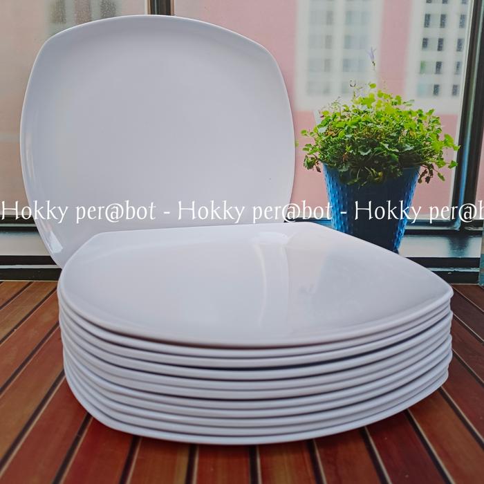 Murah 6 PIRING KOTAK SAJI MELAMIN PERSEGI 9 INCH PUTIH POLOS - 6 PCS PIRING Promo