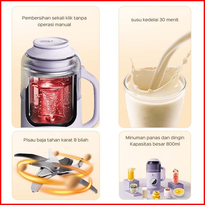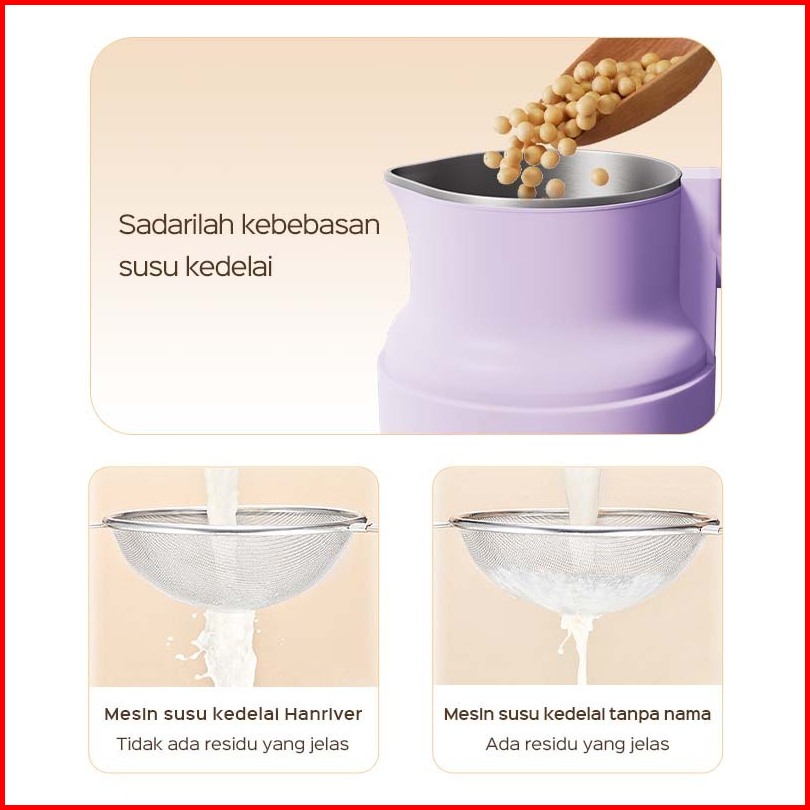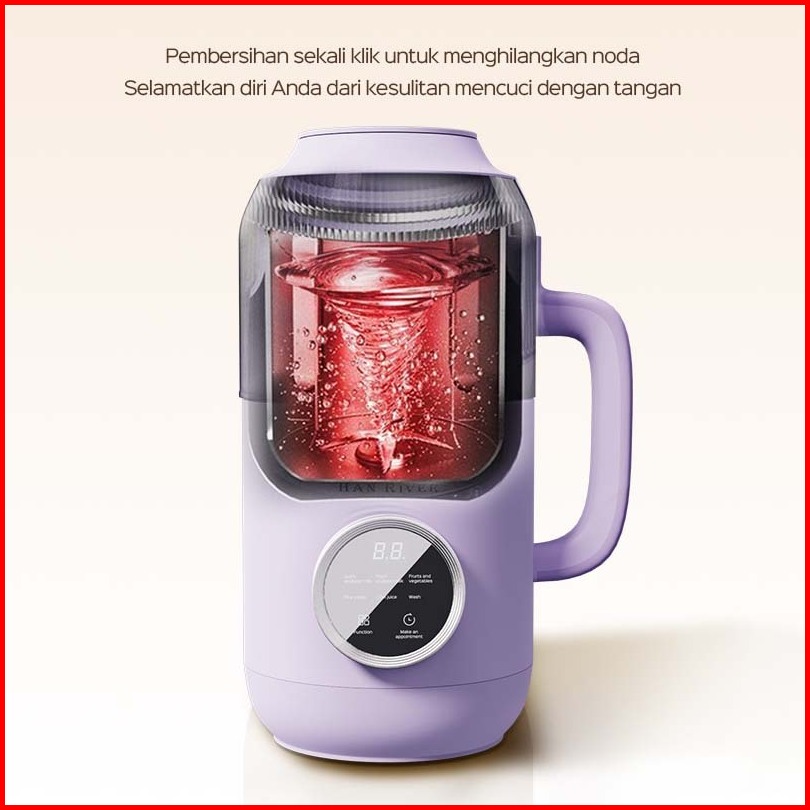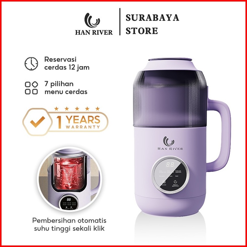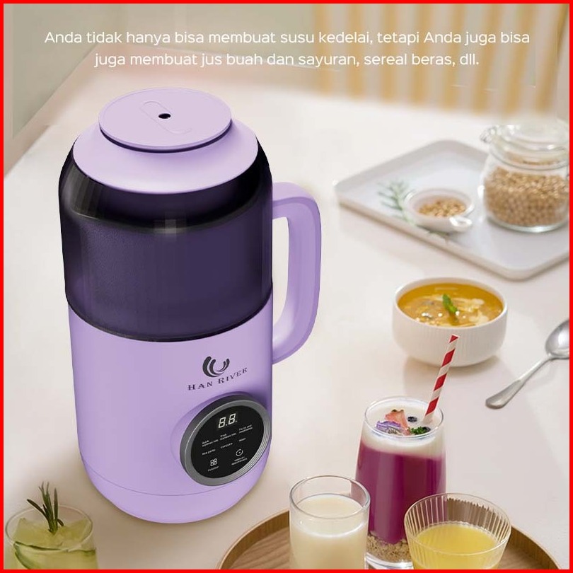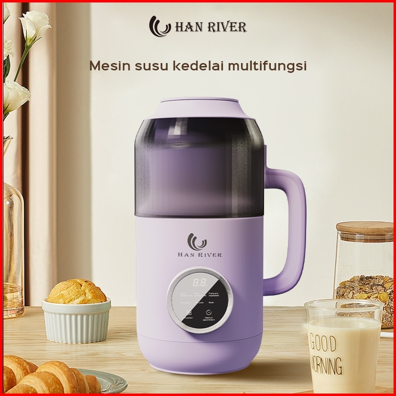 Han River Mesin Susu Kedelai 6 In 1 800ml Mesin Kacang Kesdelai Yang Dipanaskan Blender Jus Halus Hrdjj01pur