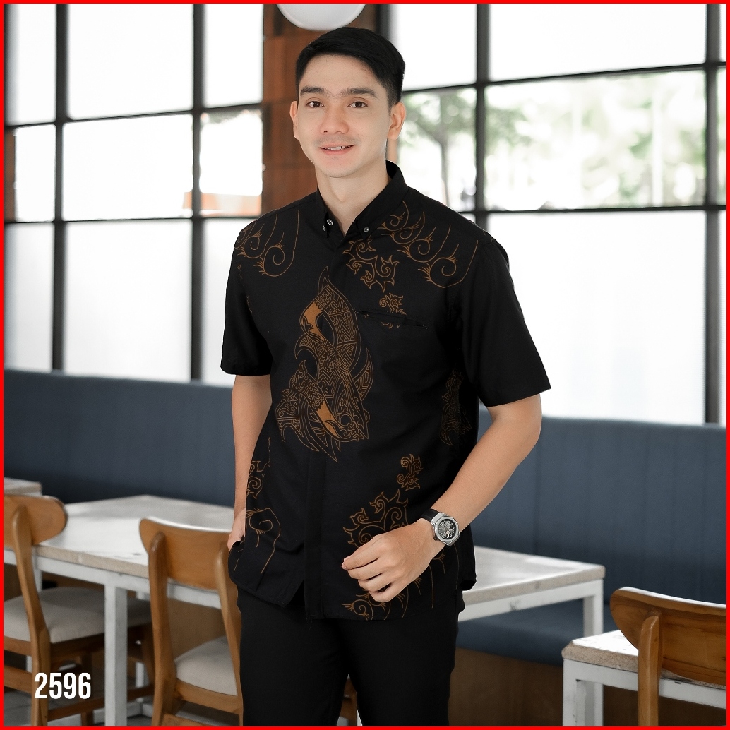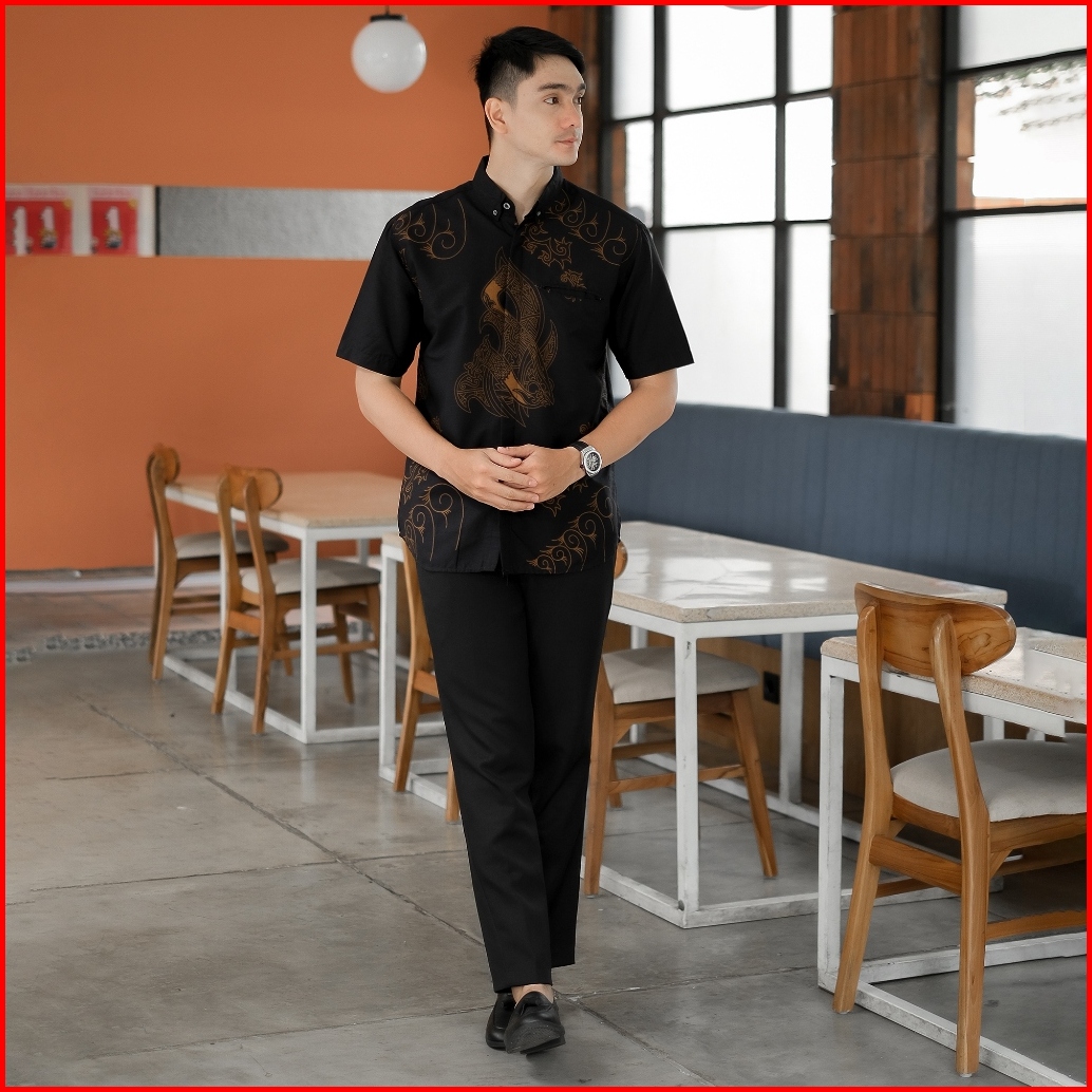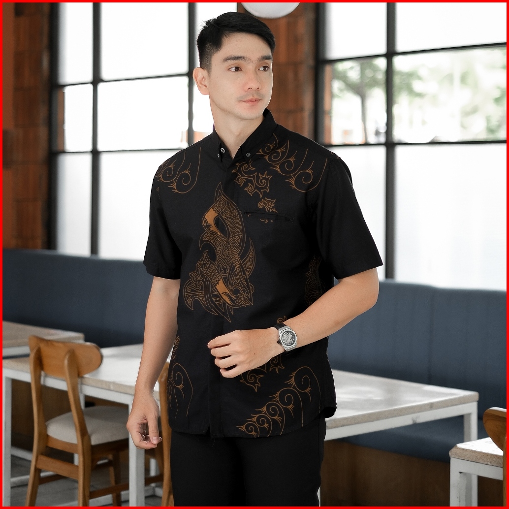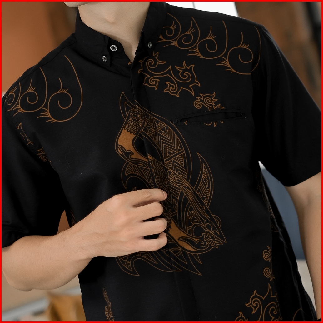 Dgm Batik Pria Coklat Lapis Furing Lengan Pendek Premium Batik Puring Motif Merak Hitam 2596