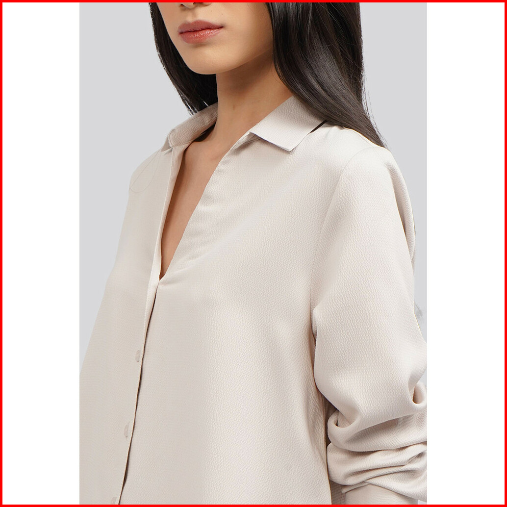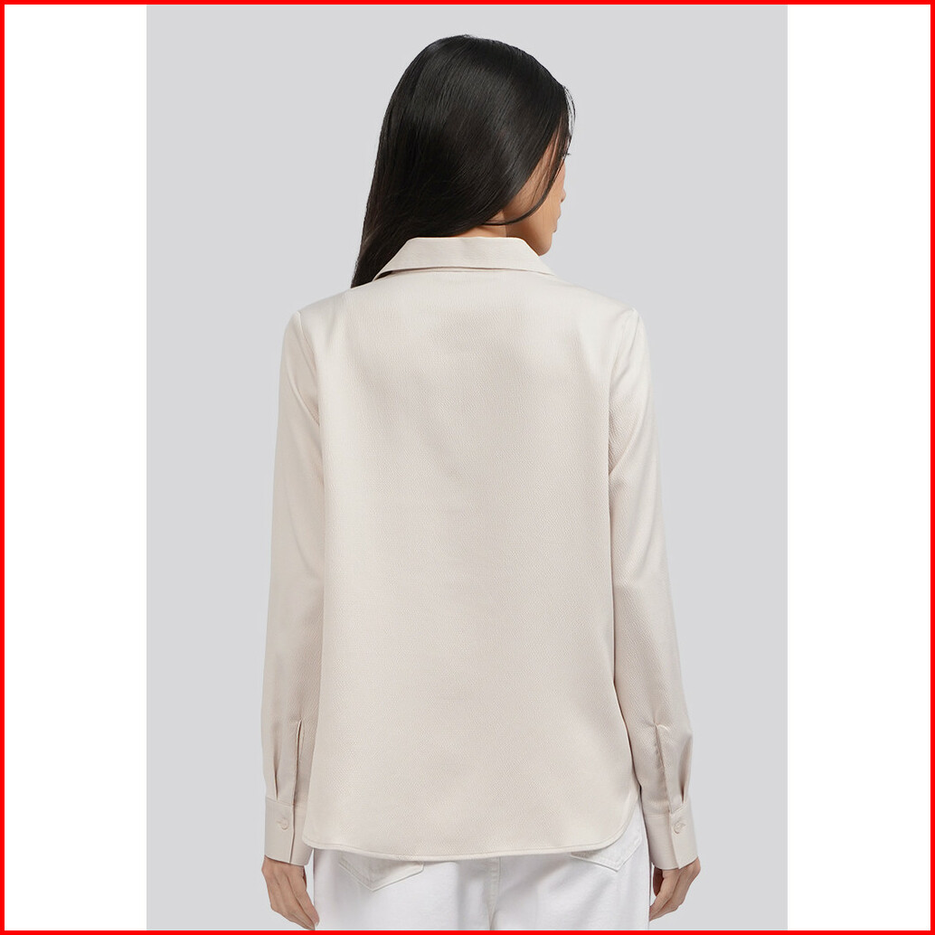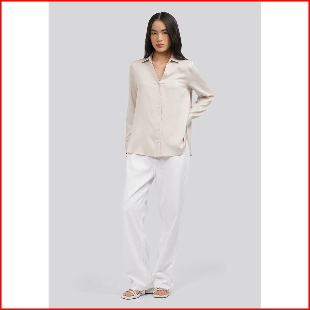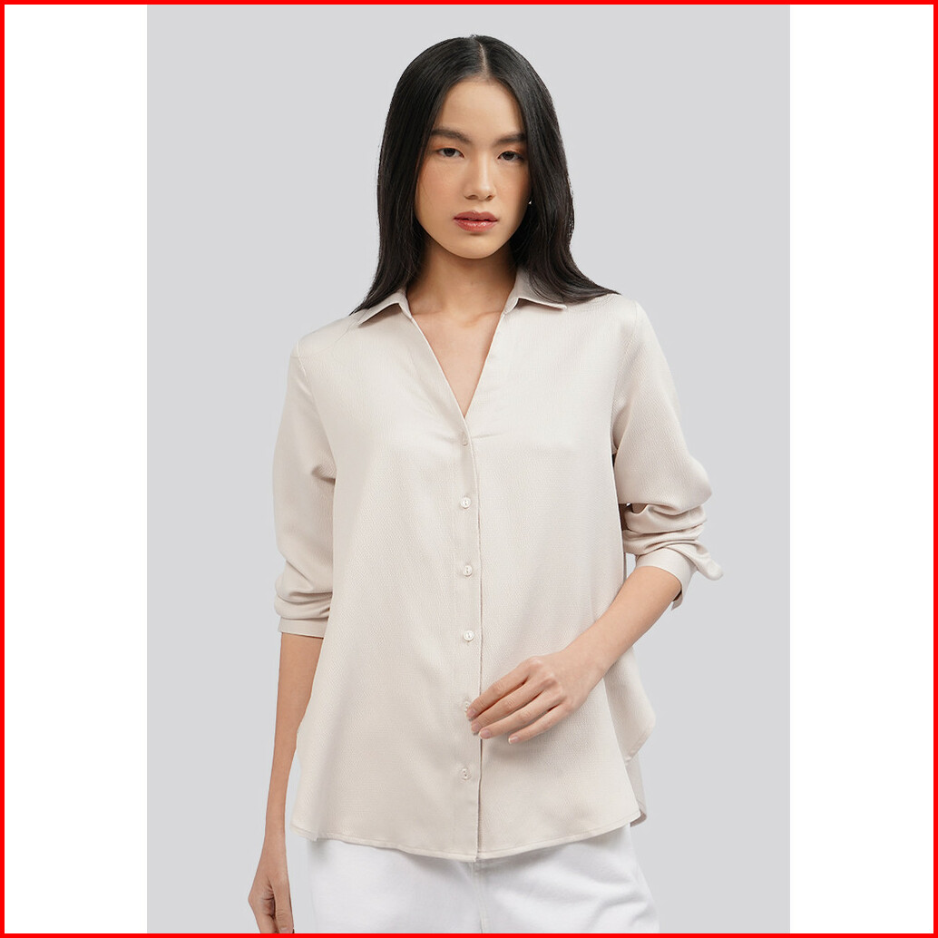 Executive V-neck Long Sleeve Satin Blouse Beige