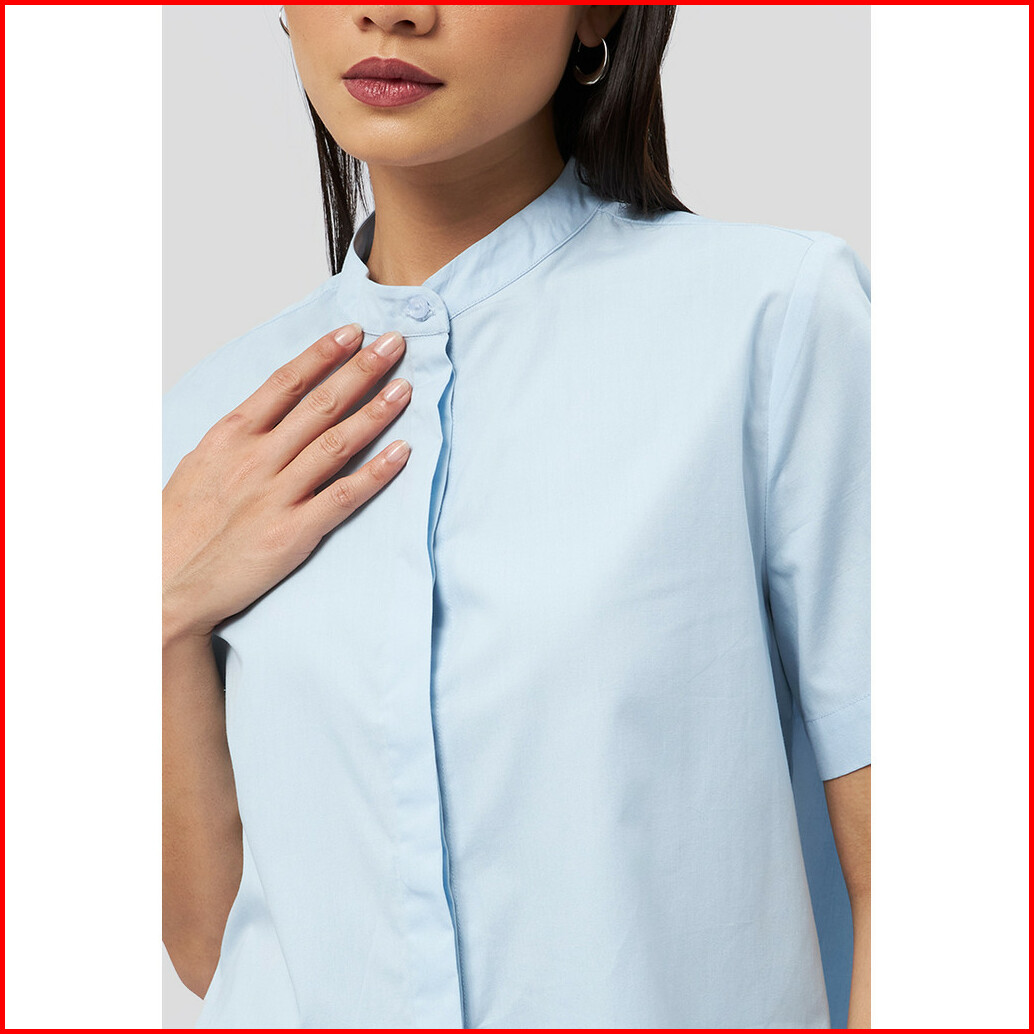 Executive Mandarin Collar Short Sleeve Blouse Lt. Blue