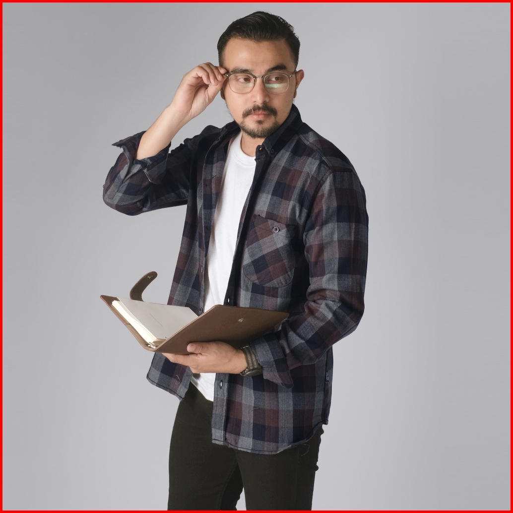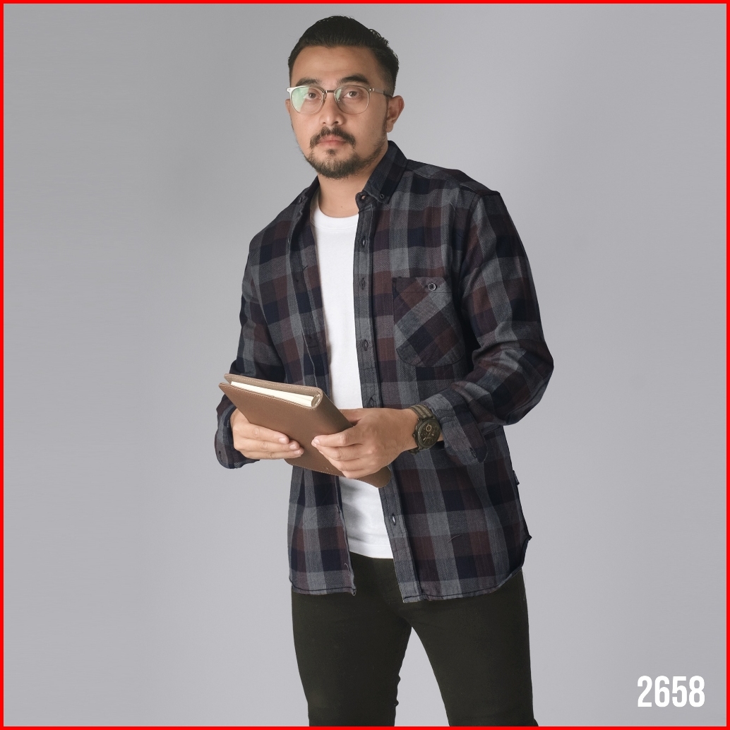 Dgm Kemeja Pria Flanel Panjang Premium Kotak Kotak Kemeja Flanel Abu - Coklat - Navy 2658