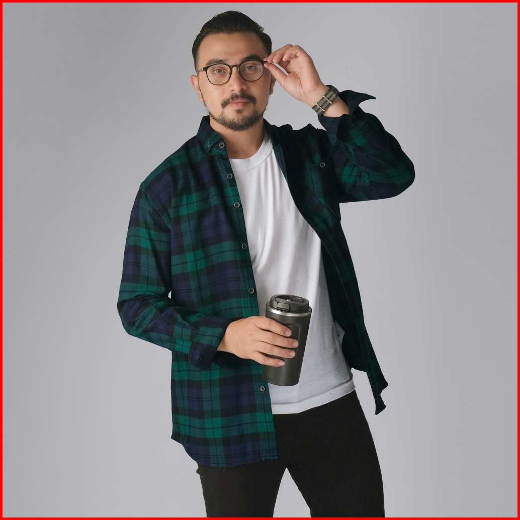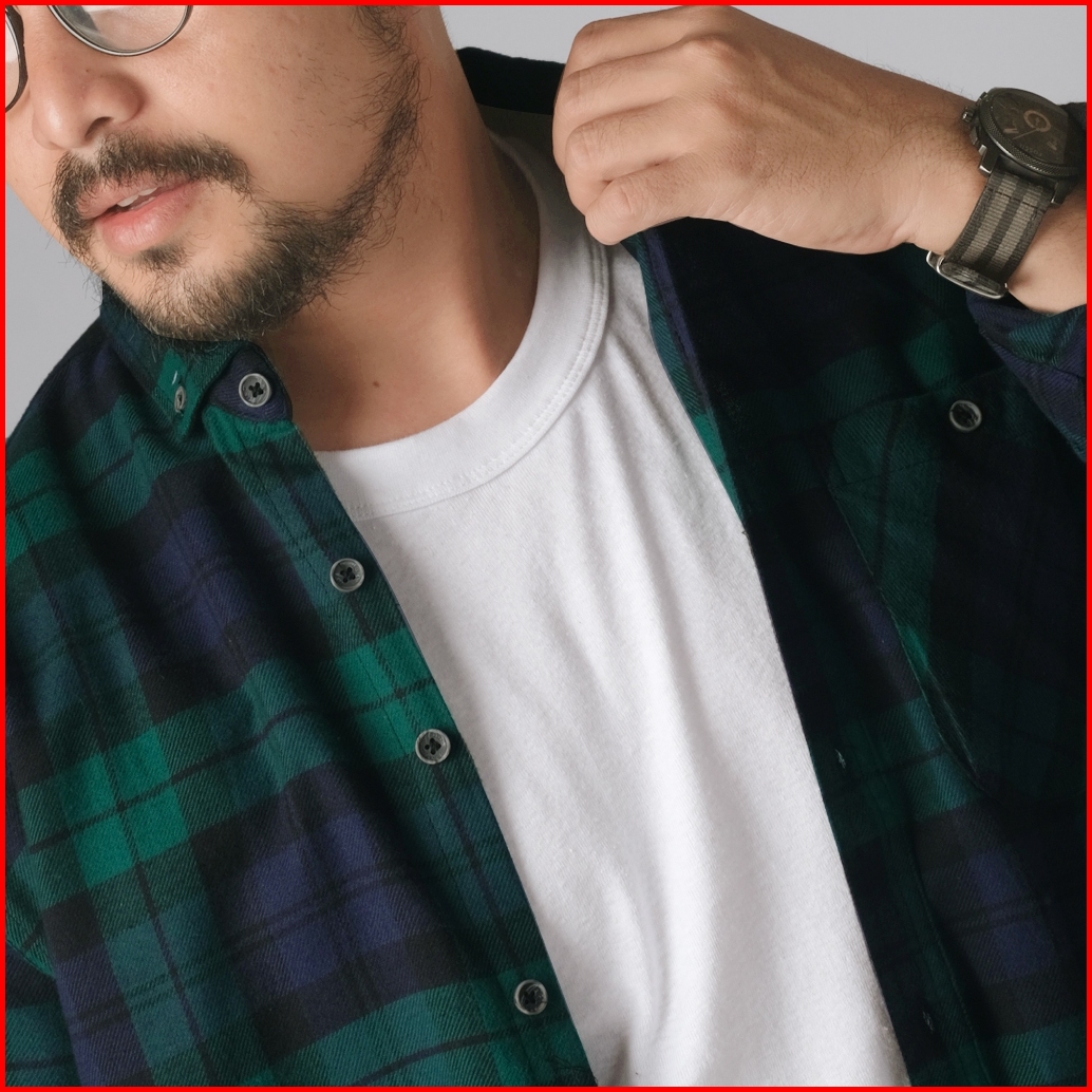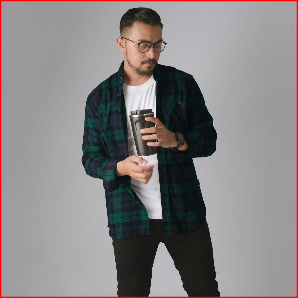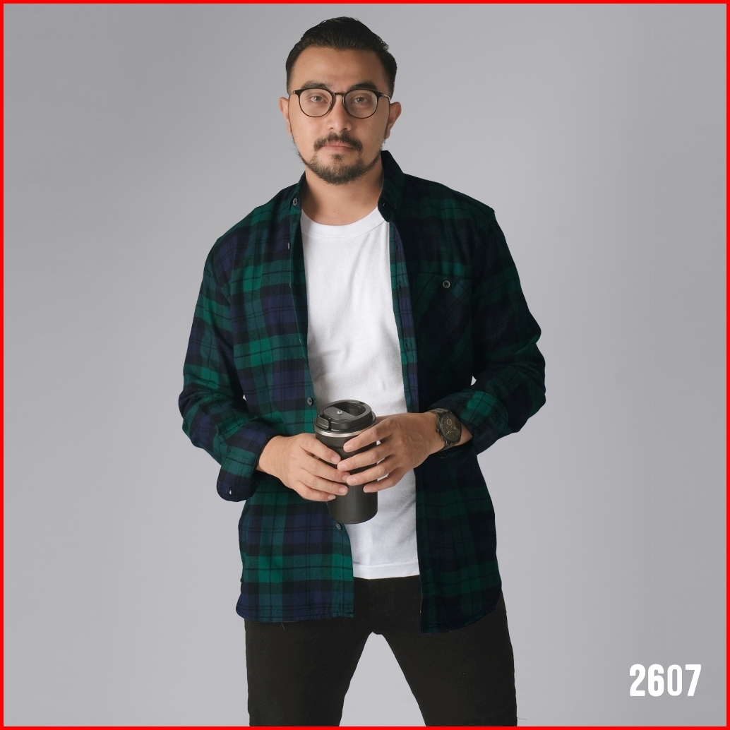 Dgm Kemeja Flanel Lengan Panjang Premium Kotak-kotak Kemeja Flanel Navy-hitam 2607