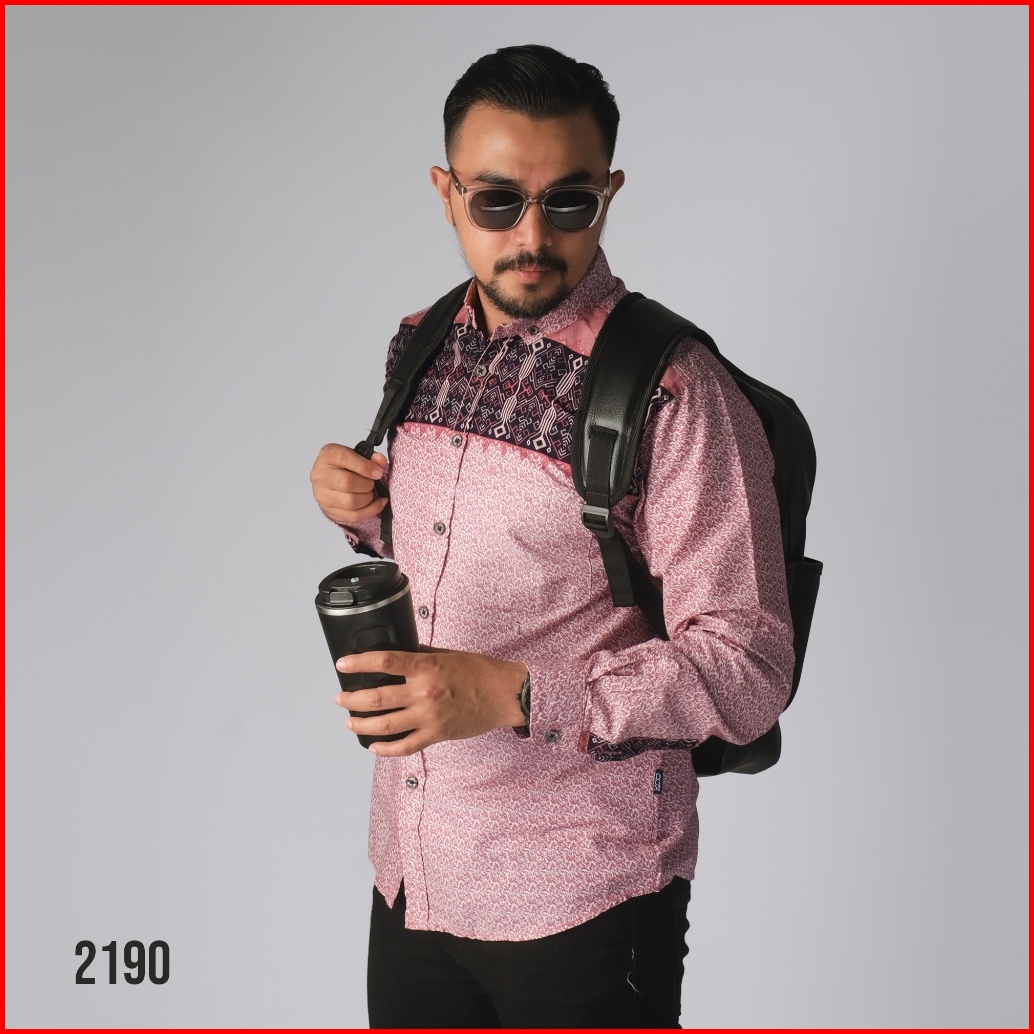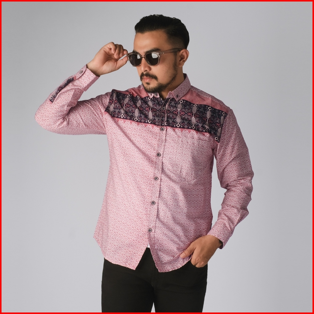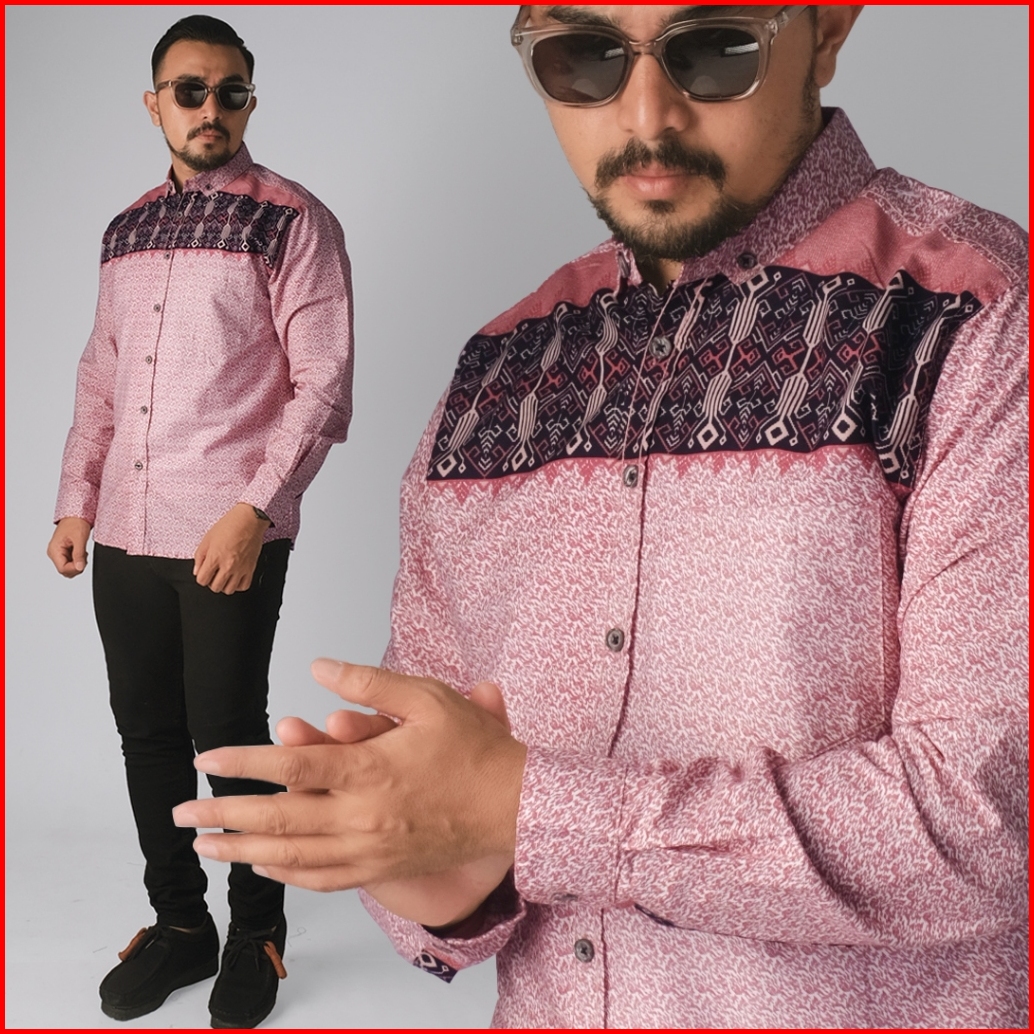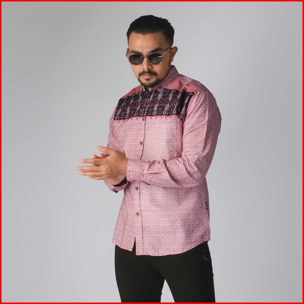 Dgm Kemeja Batik Pria Lengan Panjang Stretch Premium Batik Pria Motif Torpedo Merah Muda 2190