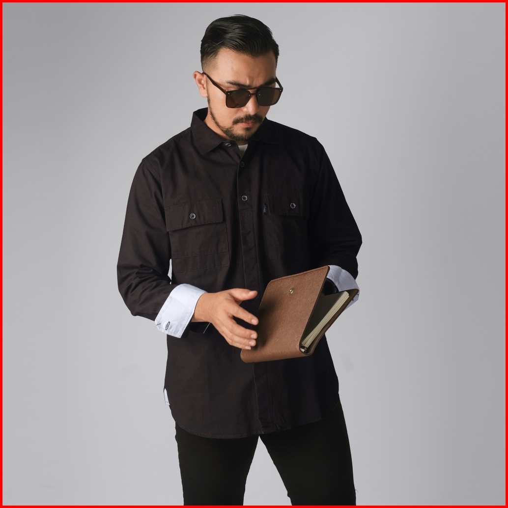 Dgm Workshirt Kemeja Kerja Katun Twill 30s Lengan Panjang Premium Double Pocket Workshirt Kemeja Kerja Dark Coklat Gleen