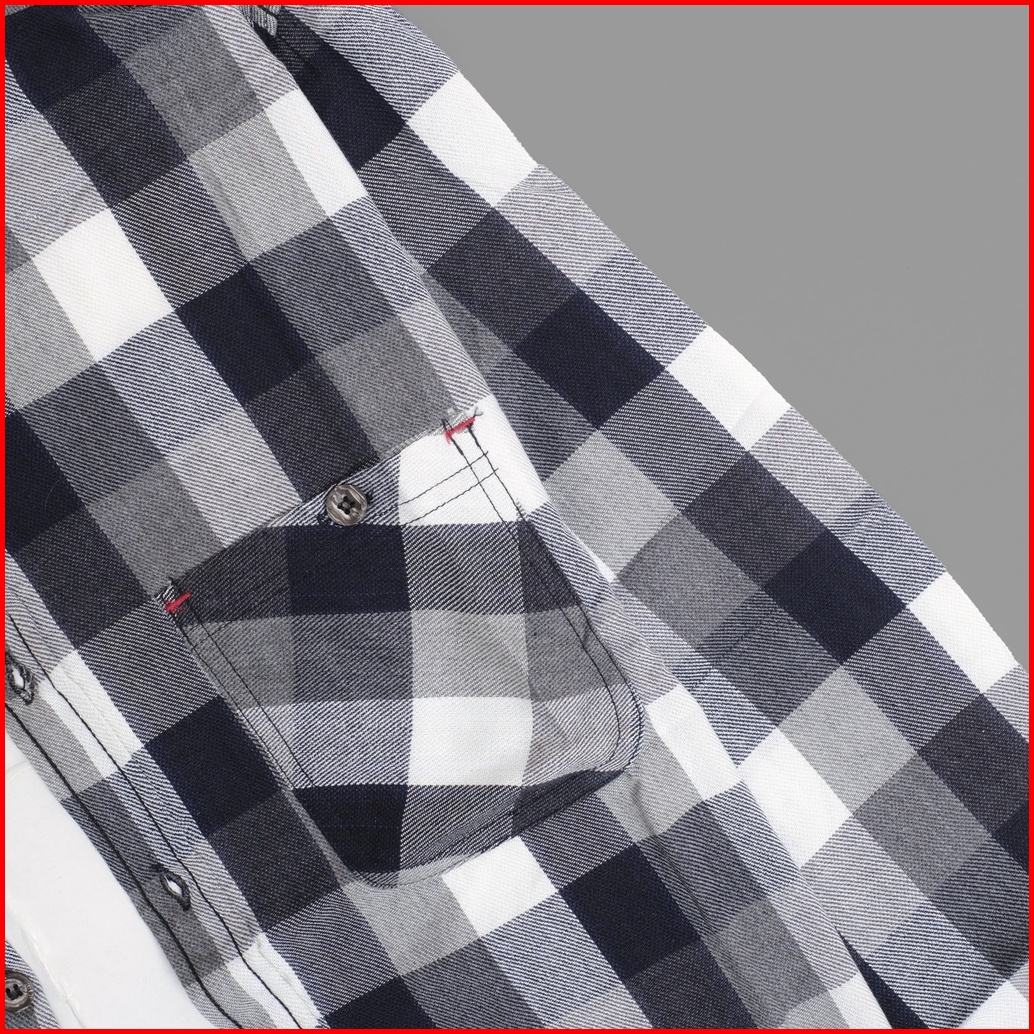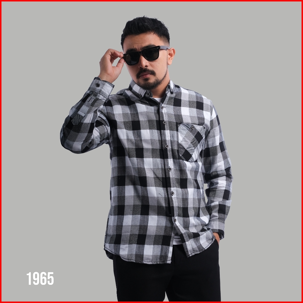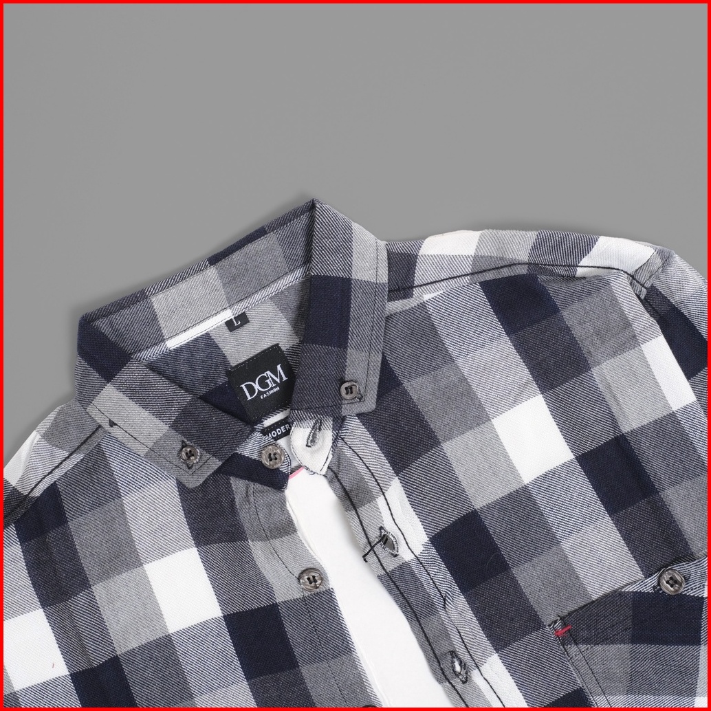Dgm Fashion Kemeja Flanel Kemeja Lengan Panjang Kotak Hitam Dan Putih 1965
