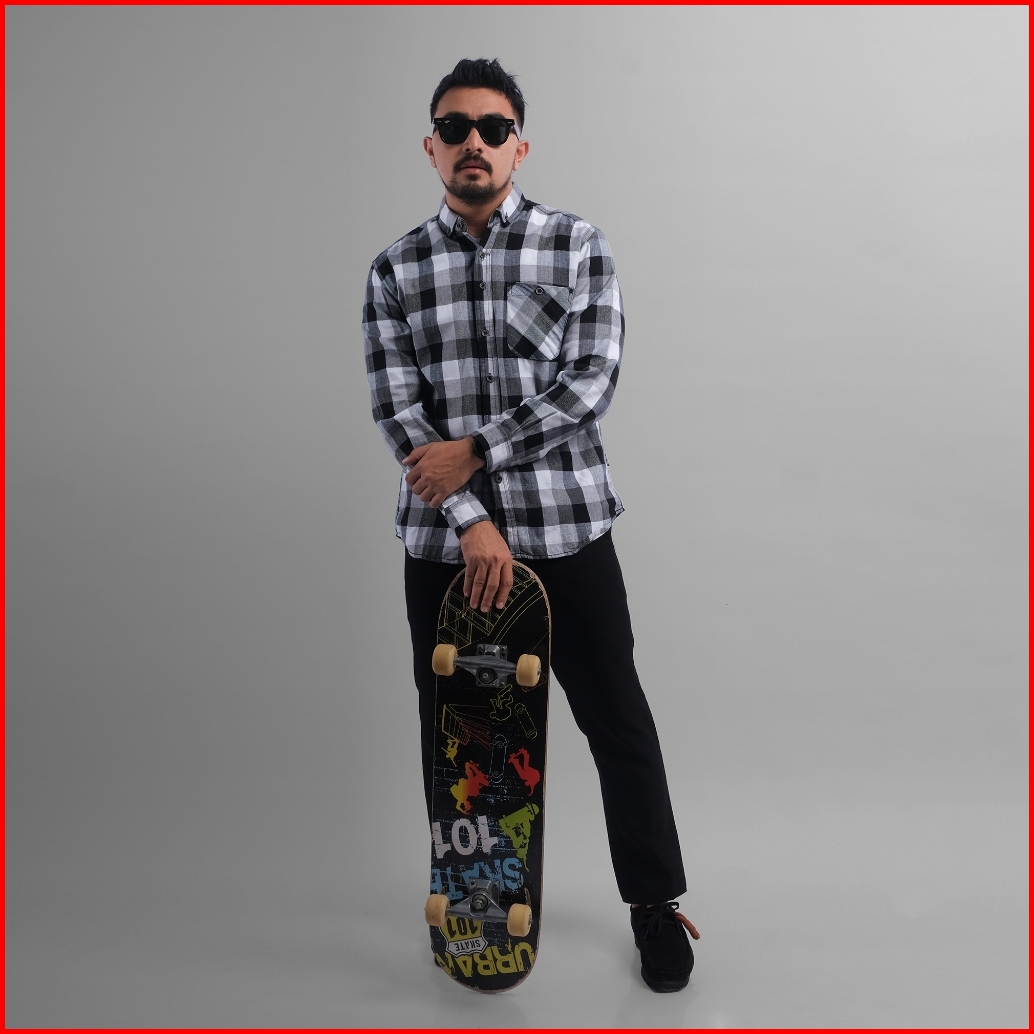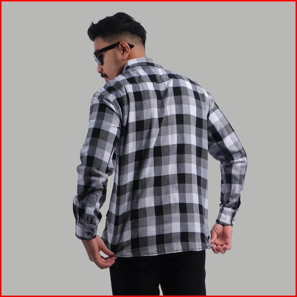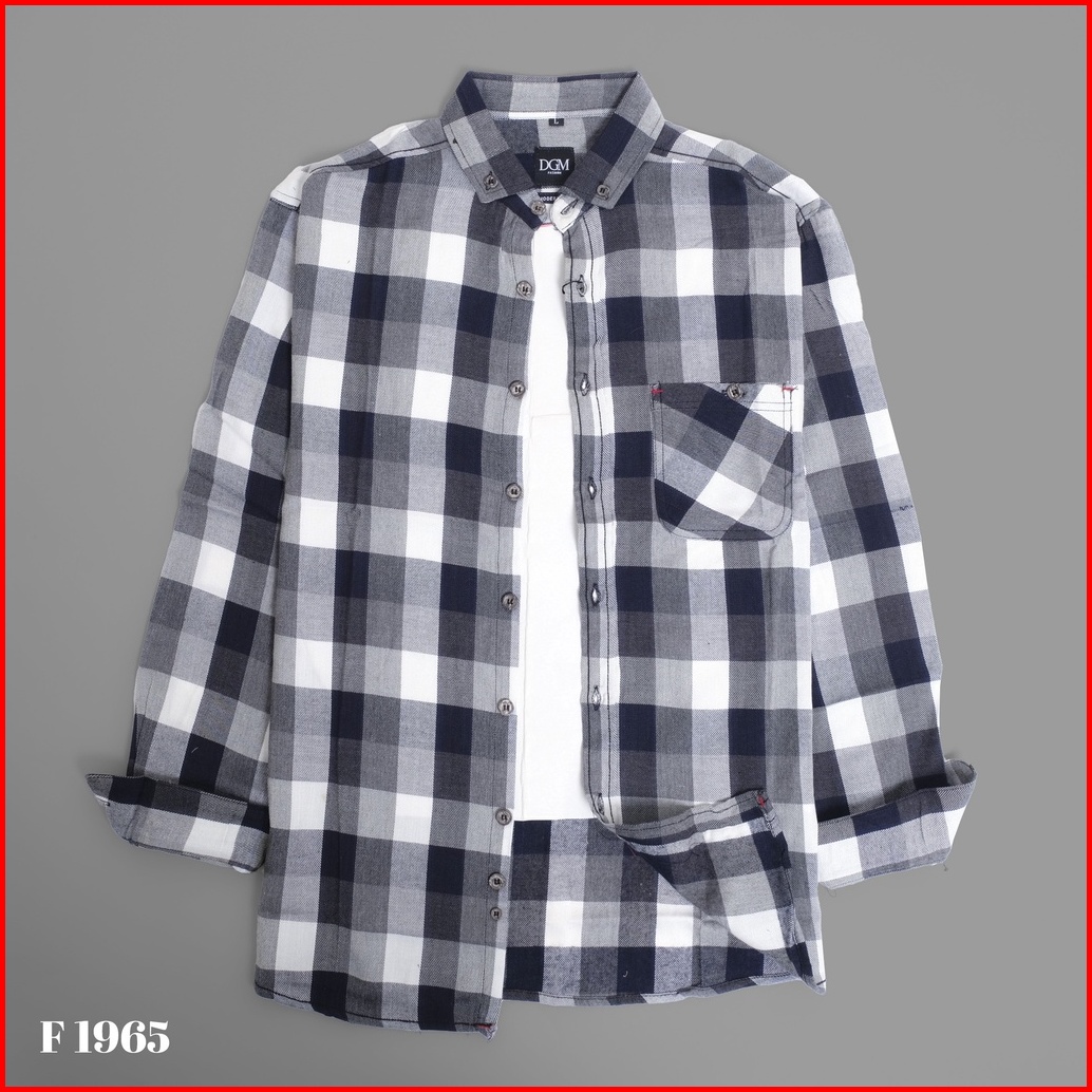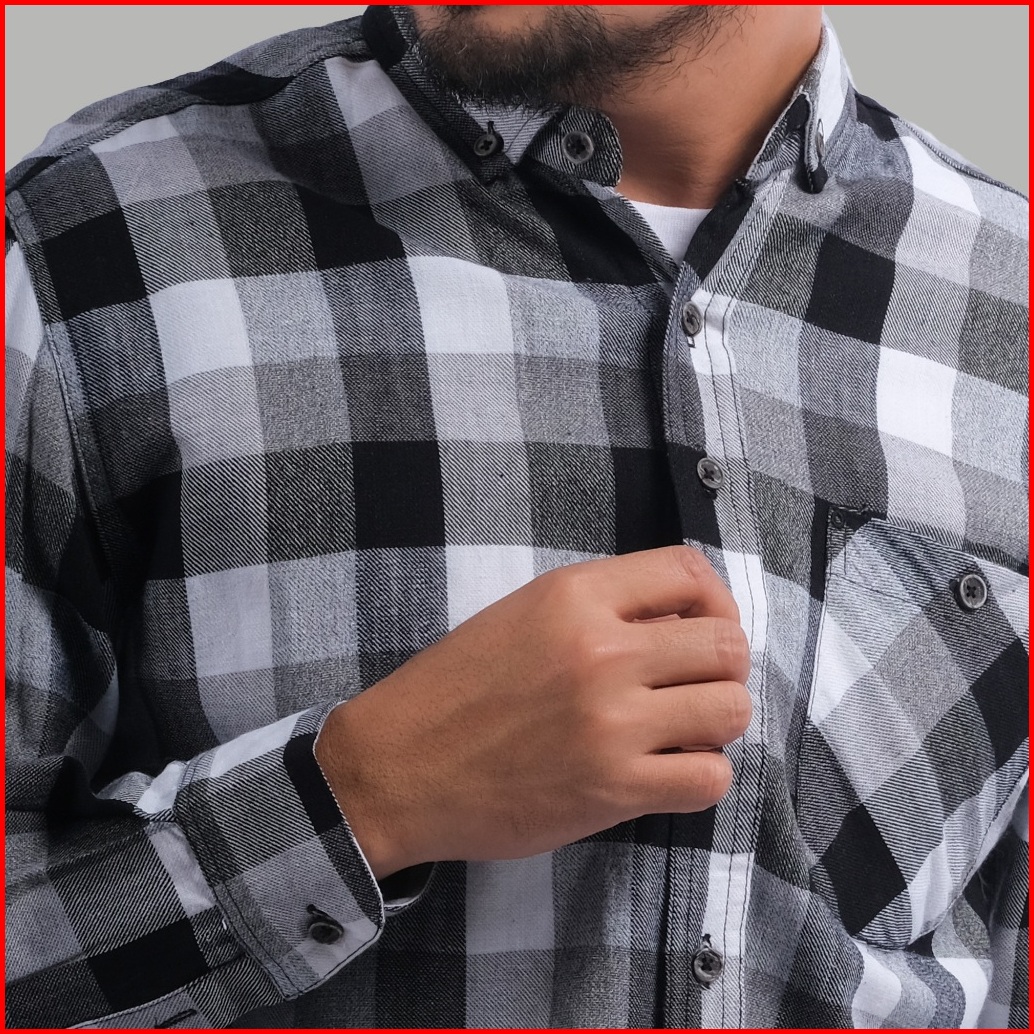 Dgm Fashion Kemeja Flanel Kemeja Lengan Panjang Kotak Hitam Dan Putih 1965