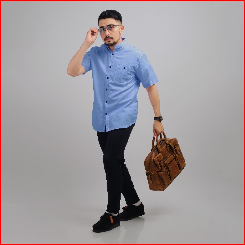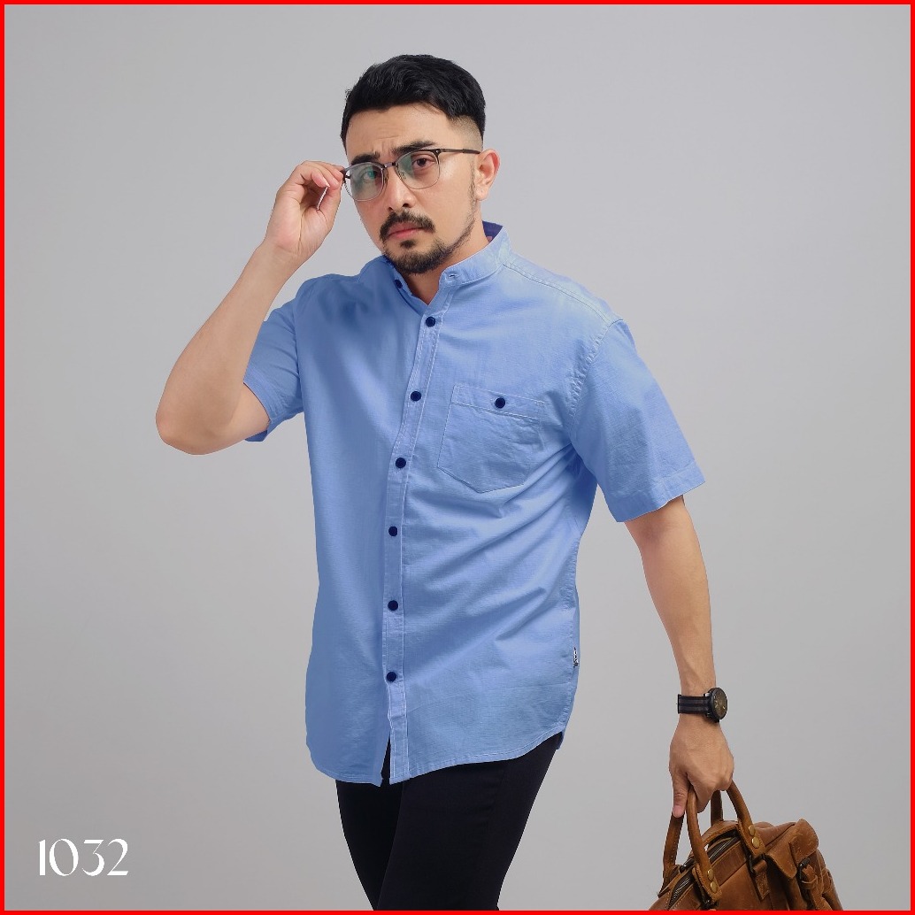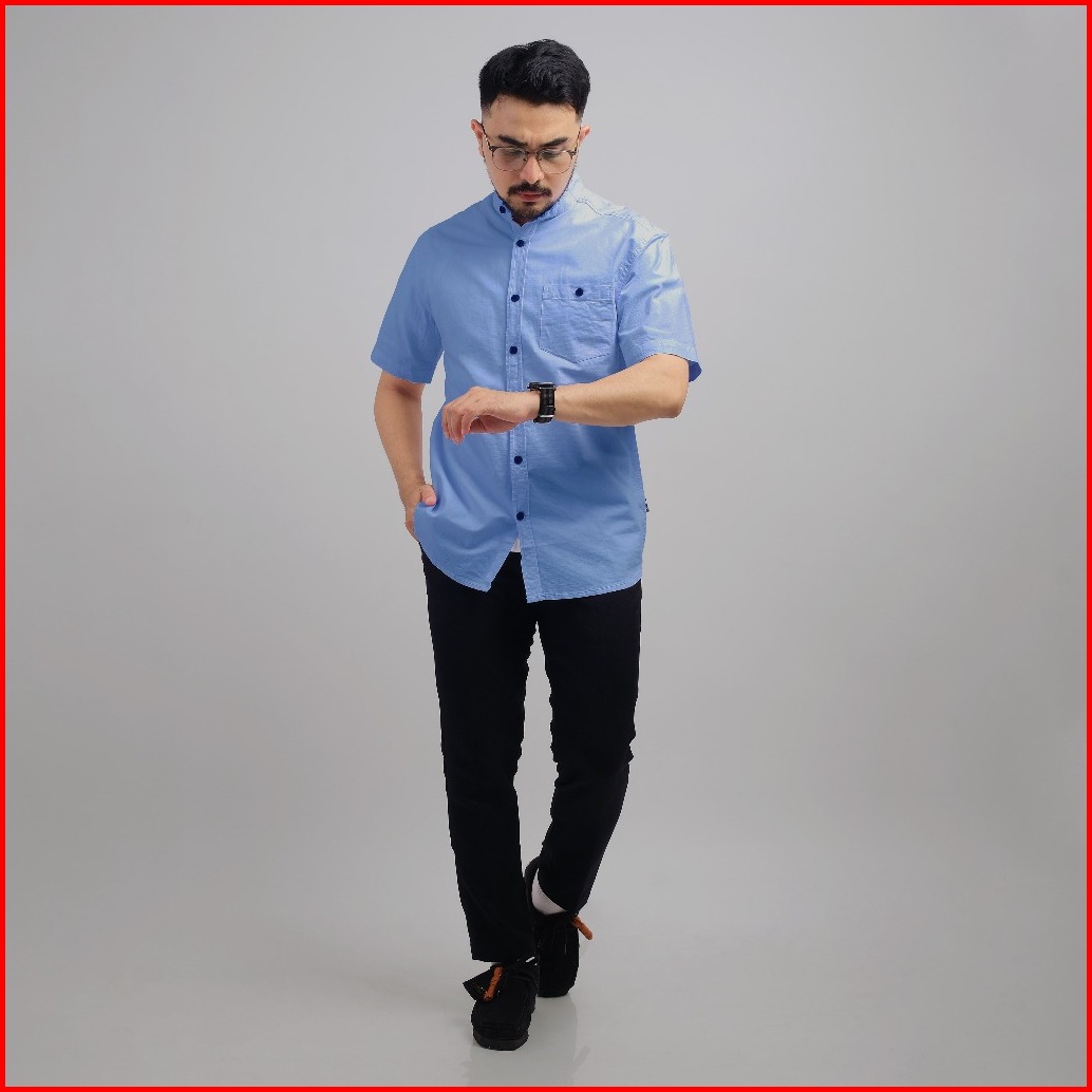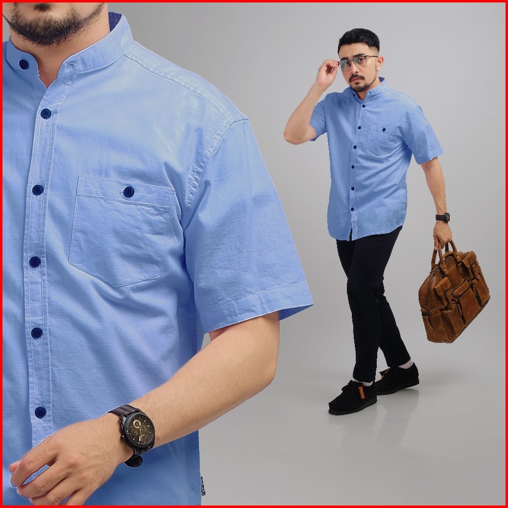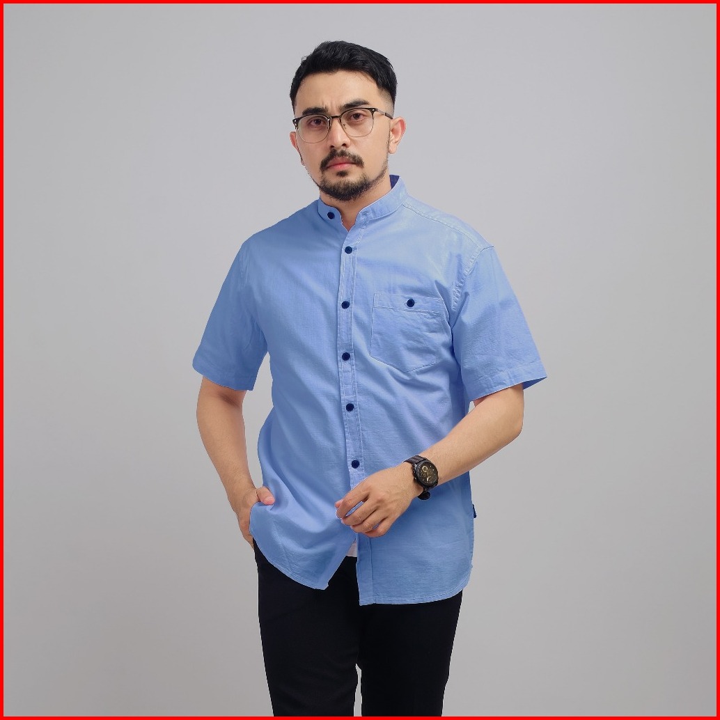 Dgm Kemeja Pria Kerah Sanghai Koko Lengan Pendek Blue 1032