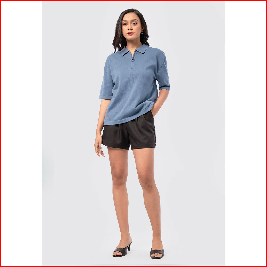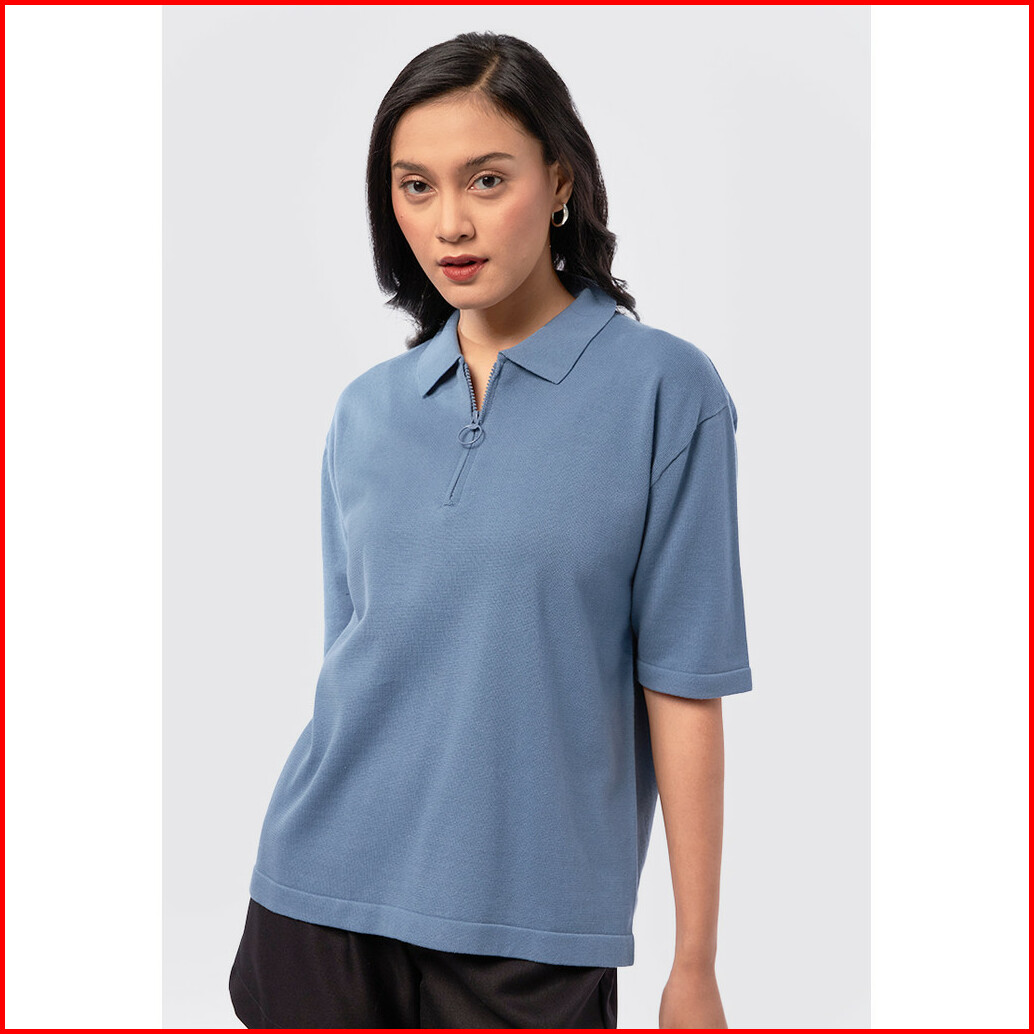 Executive Knitted Zip Up Polo Shirt Denim Blue
