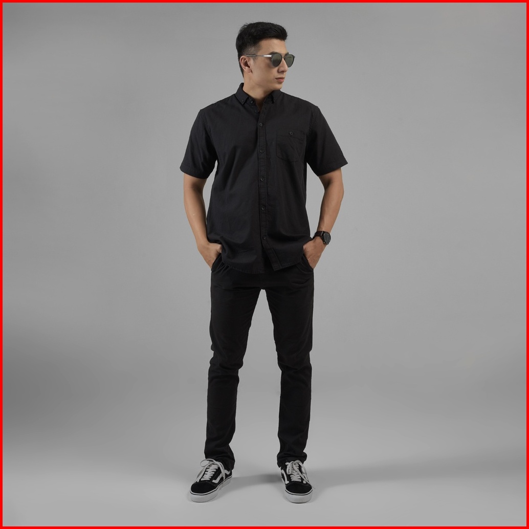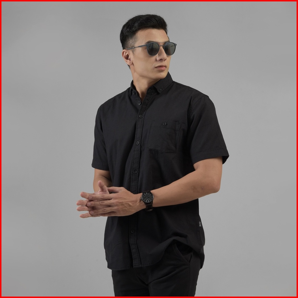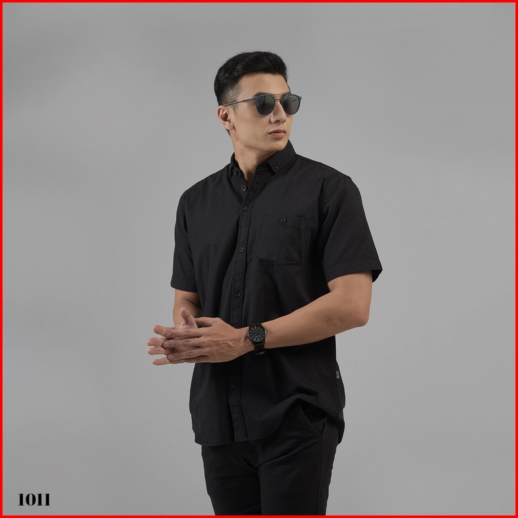 Dgm Kemeja Pria Basic Polos Lengan Pendek Black 1011