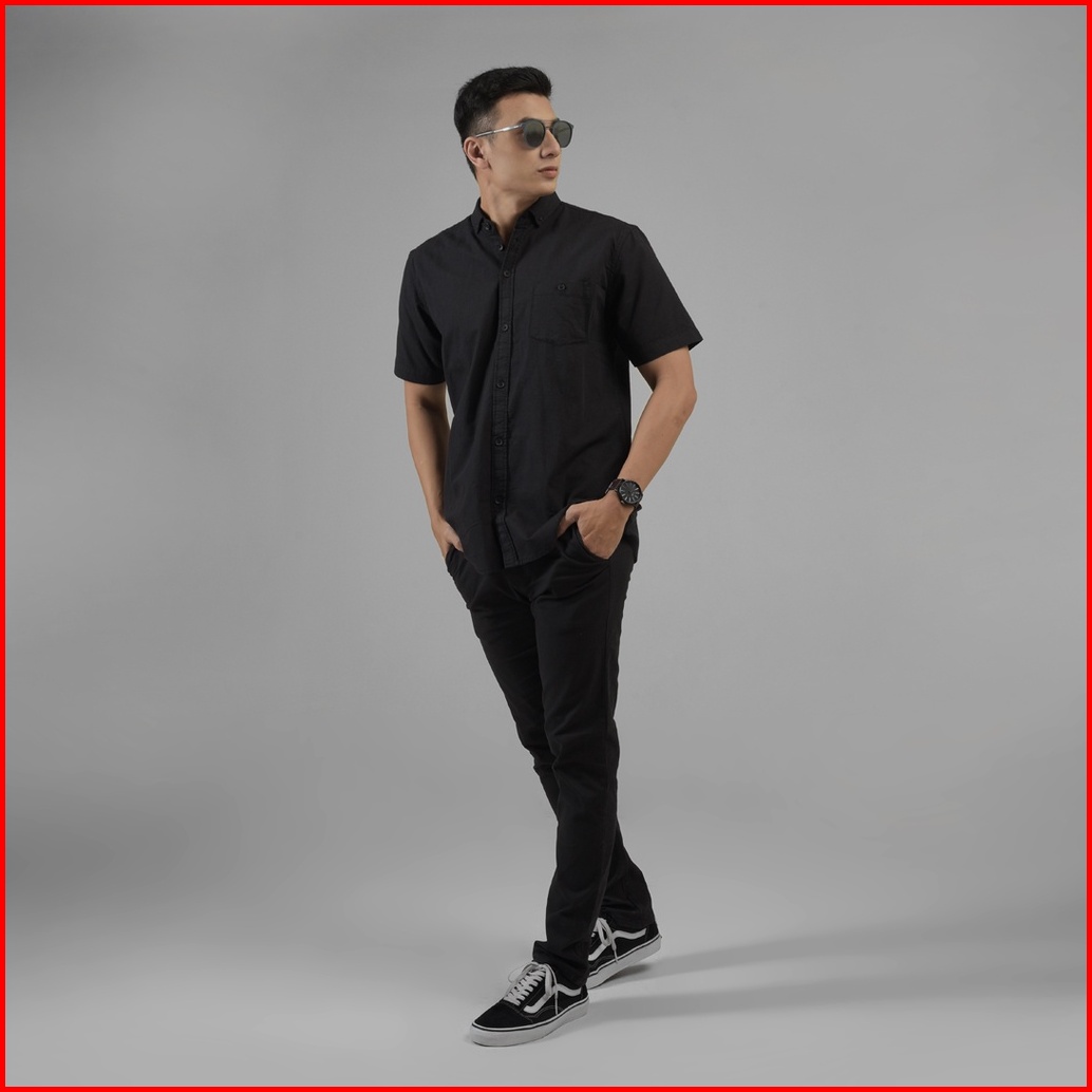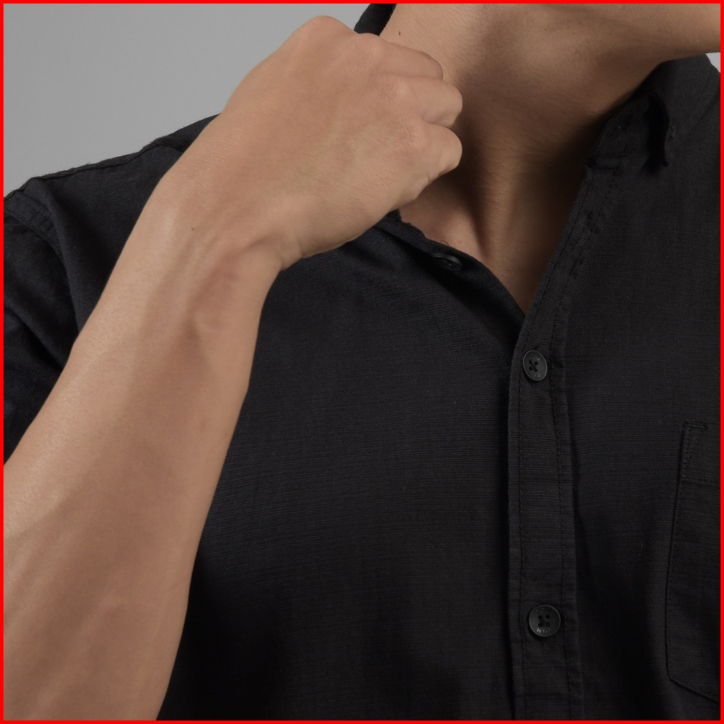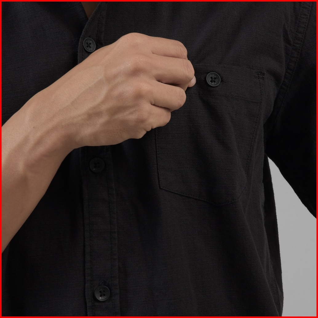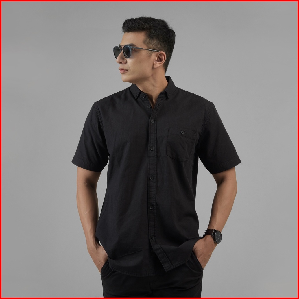 Dgm Kemeja Pria Basic Polos Lengan Pendek Black 1011