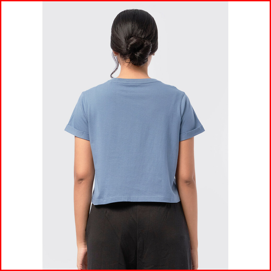 Executive Basic Cropped Cotton T-shirt Denim Blue