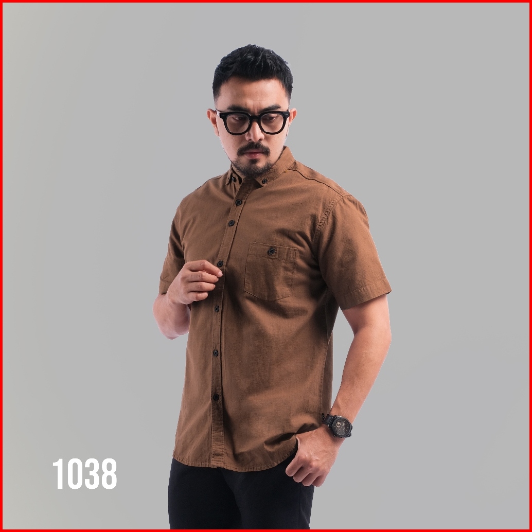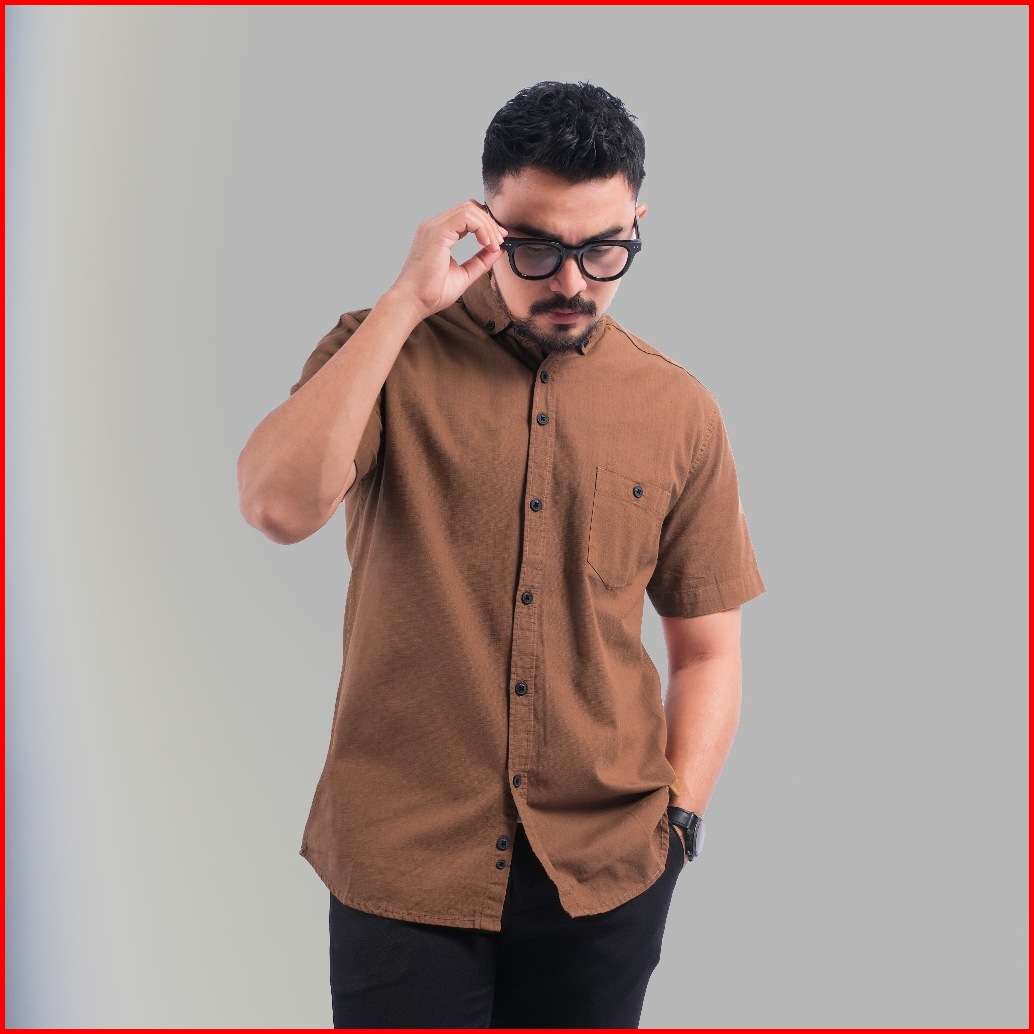 Dgm Kemeja Pria Basic Polos Pendek Dark Coklat Premium 1038