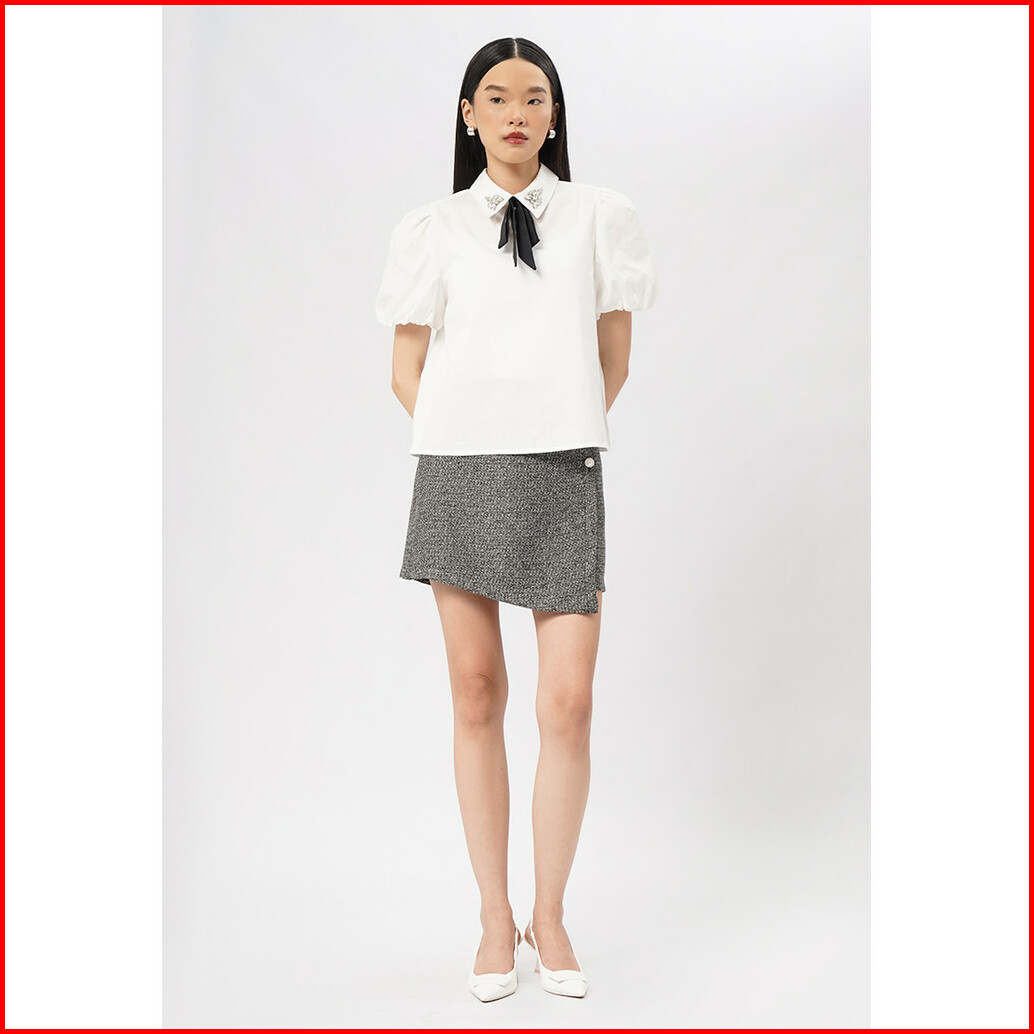 Executive Short Sleeve Blouse With Bow Tie Off White