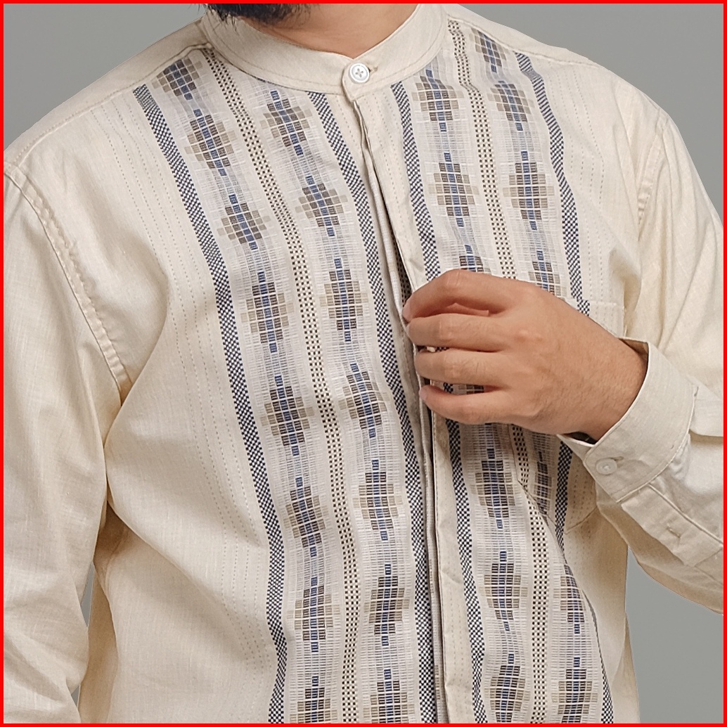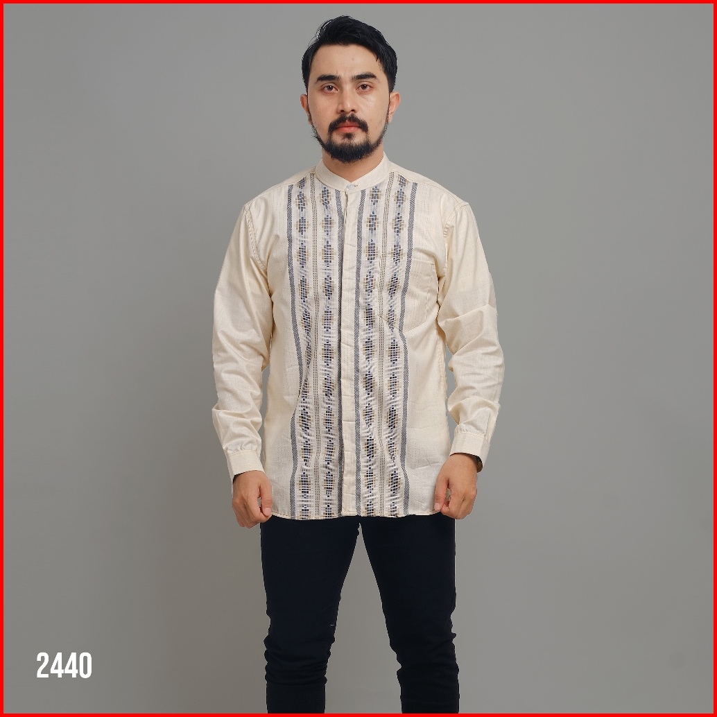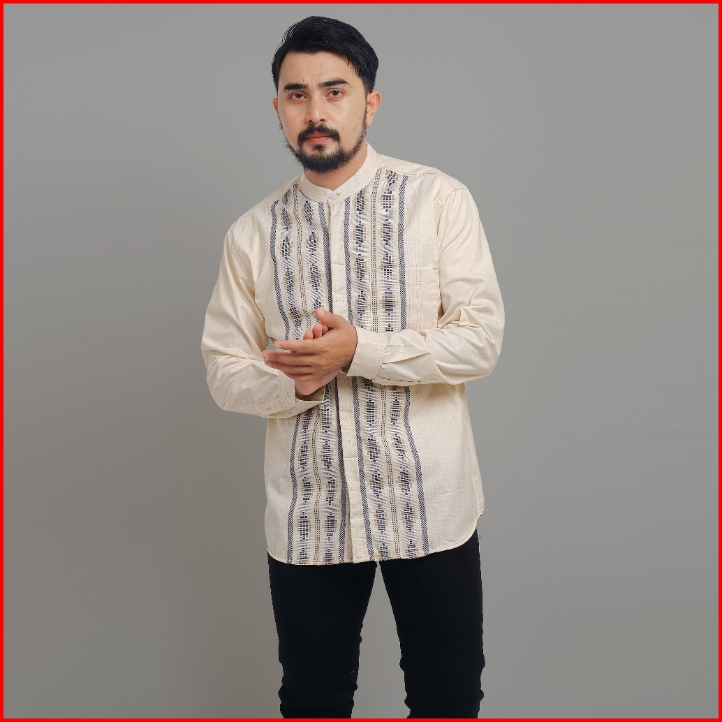 Dgm Kemeja Pria Koko Krem Vanilla Bordir Lengan Panjang Motif Anyam 2440