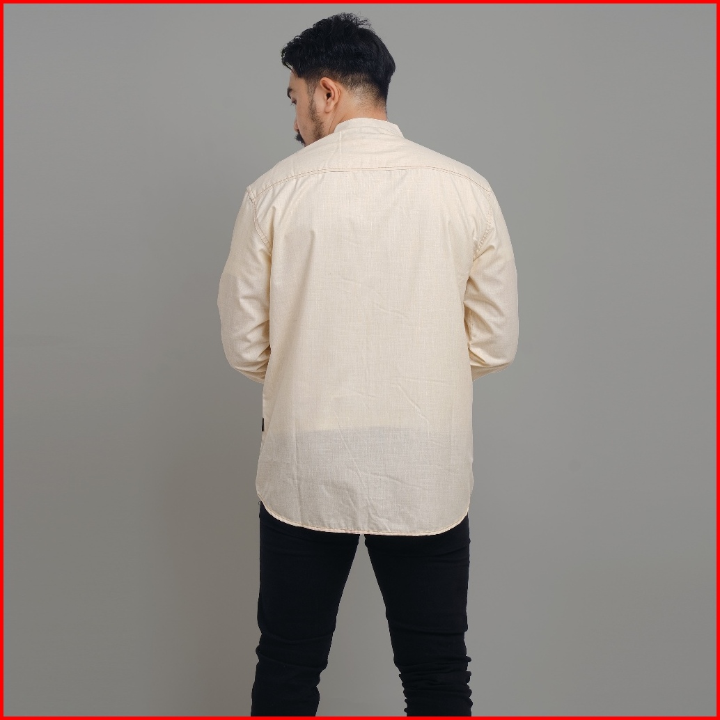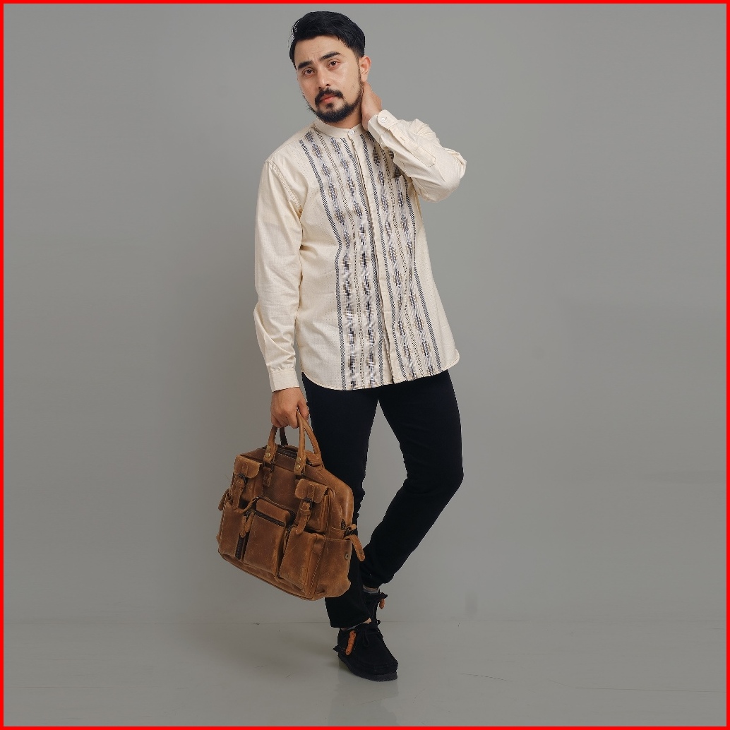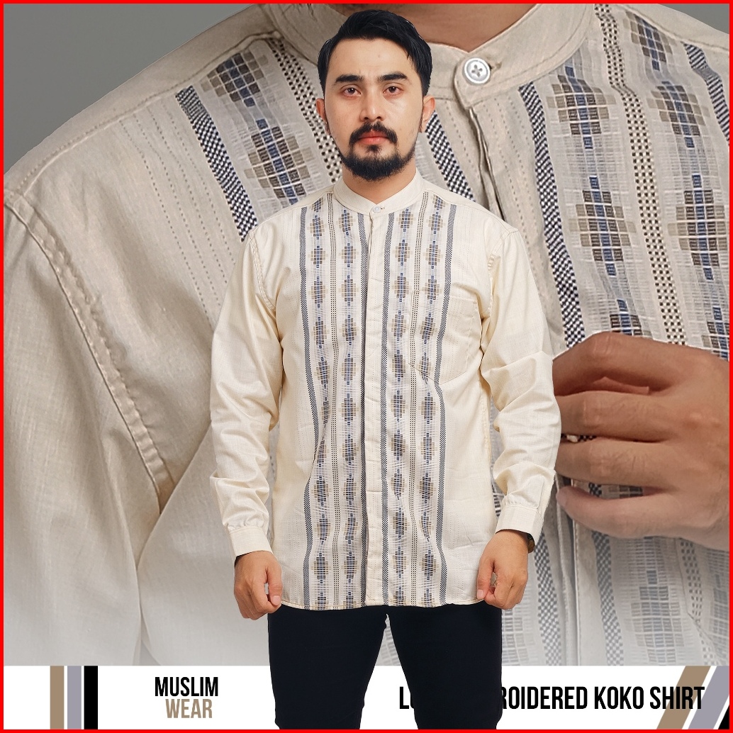 Dgm Kemeja Pria Koko Krem Vanilla Bordir Lengan Panjang Motif Anyam 2440
