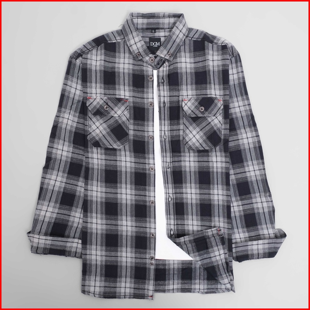 Dgm Fashion Kemeja Pria Flanel Double Pocket Lengan Panjang Premium Flanel Kantong Dua 1879