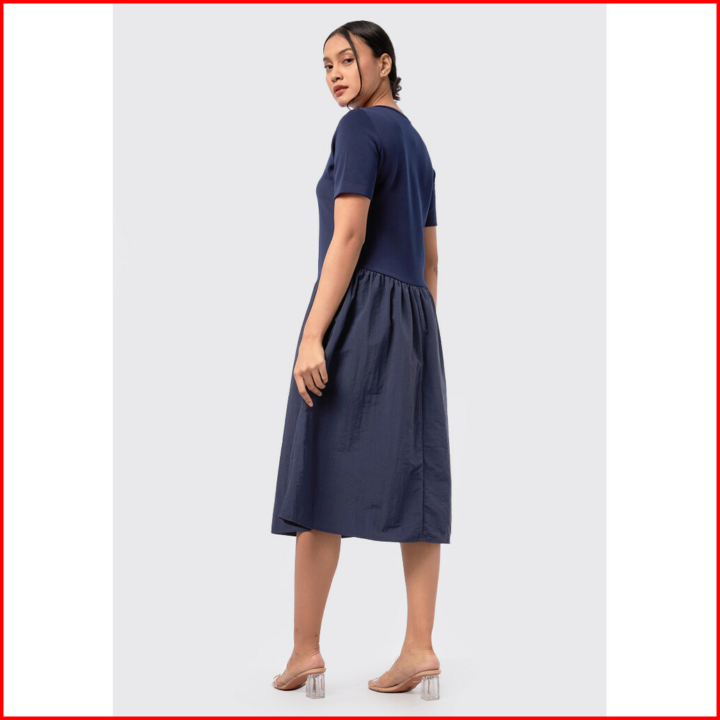 Executive Contrast Panel Midi Dress Navy