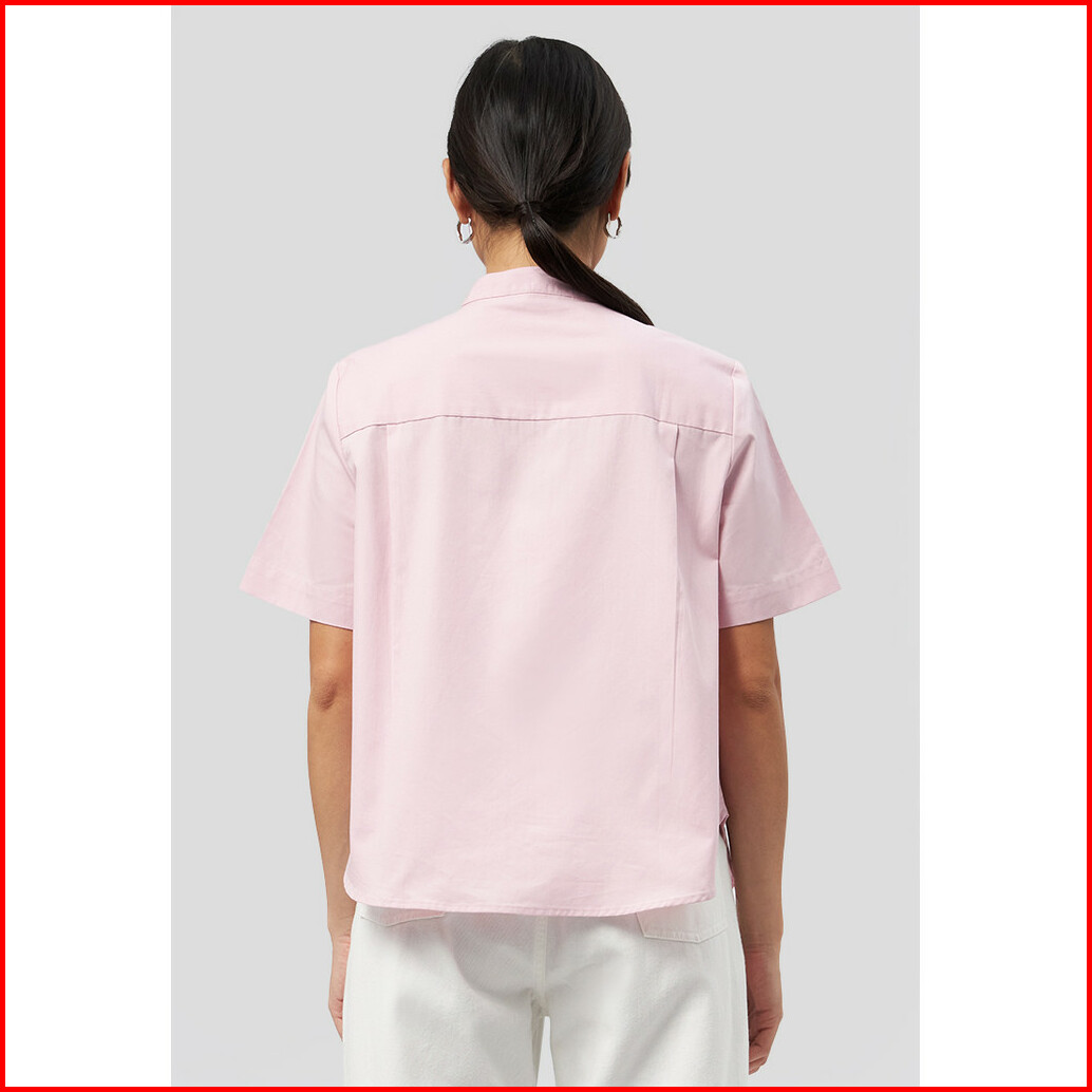 Executive Mandarin Collar Short Sleeve Blouse Pink