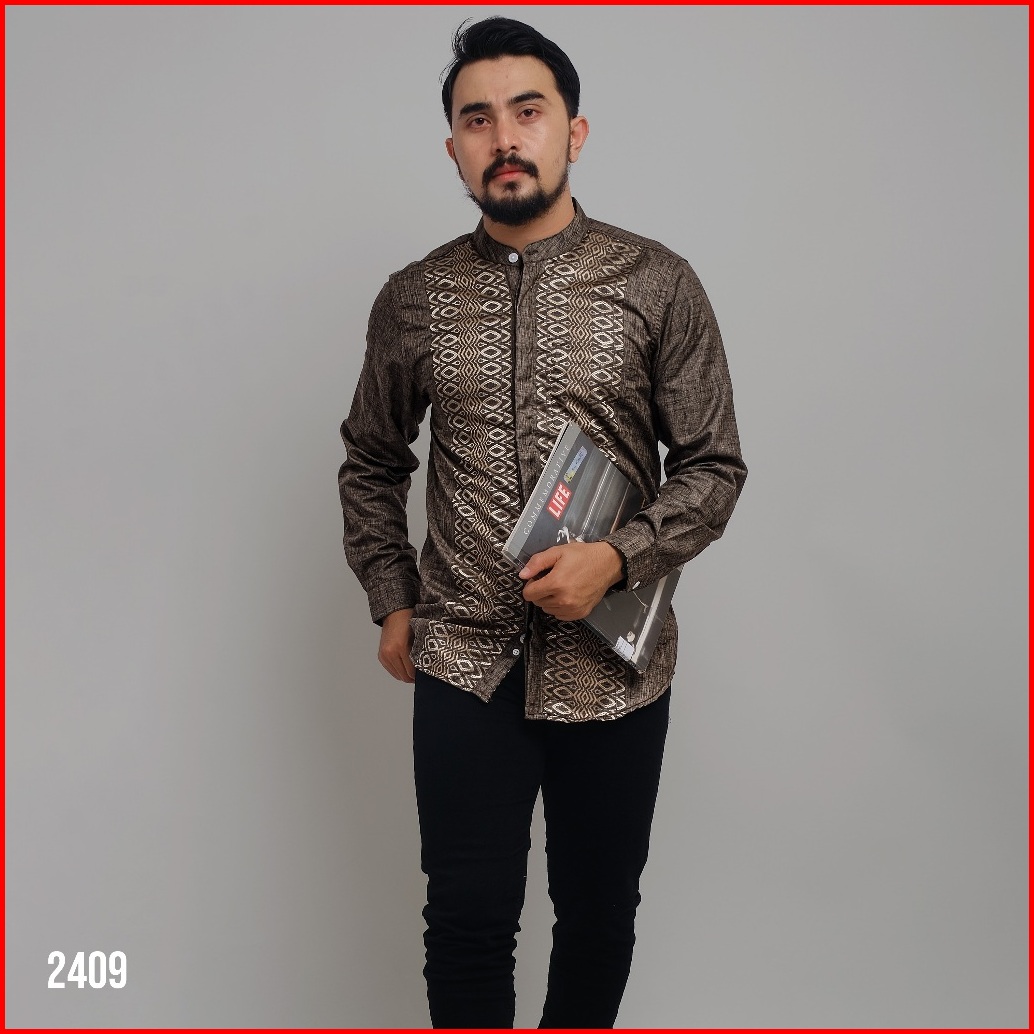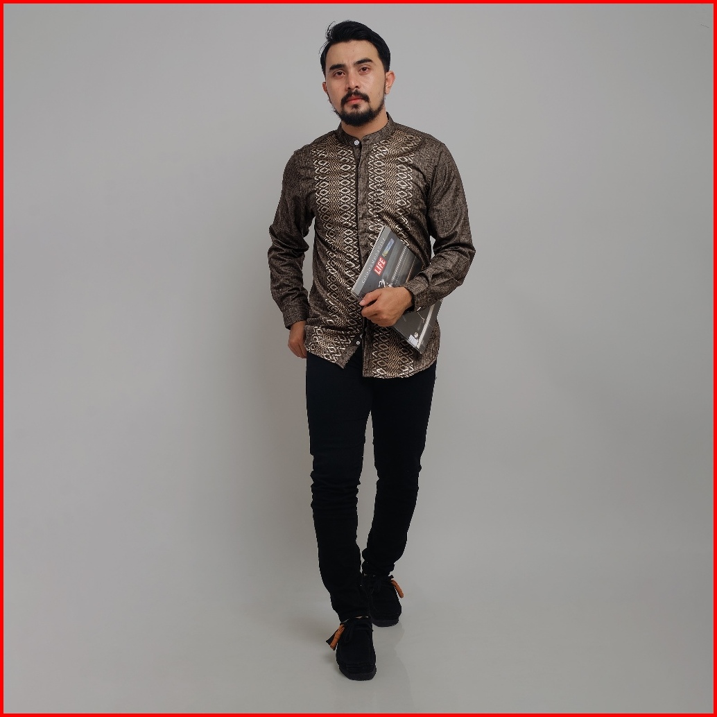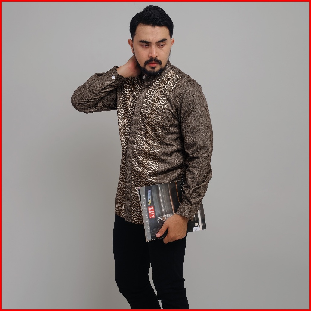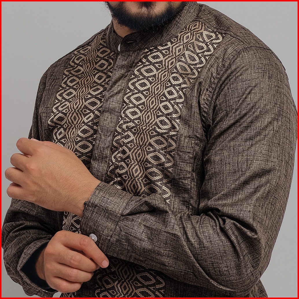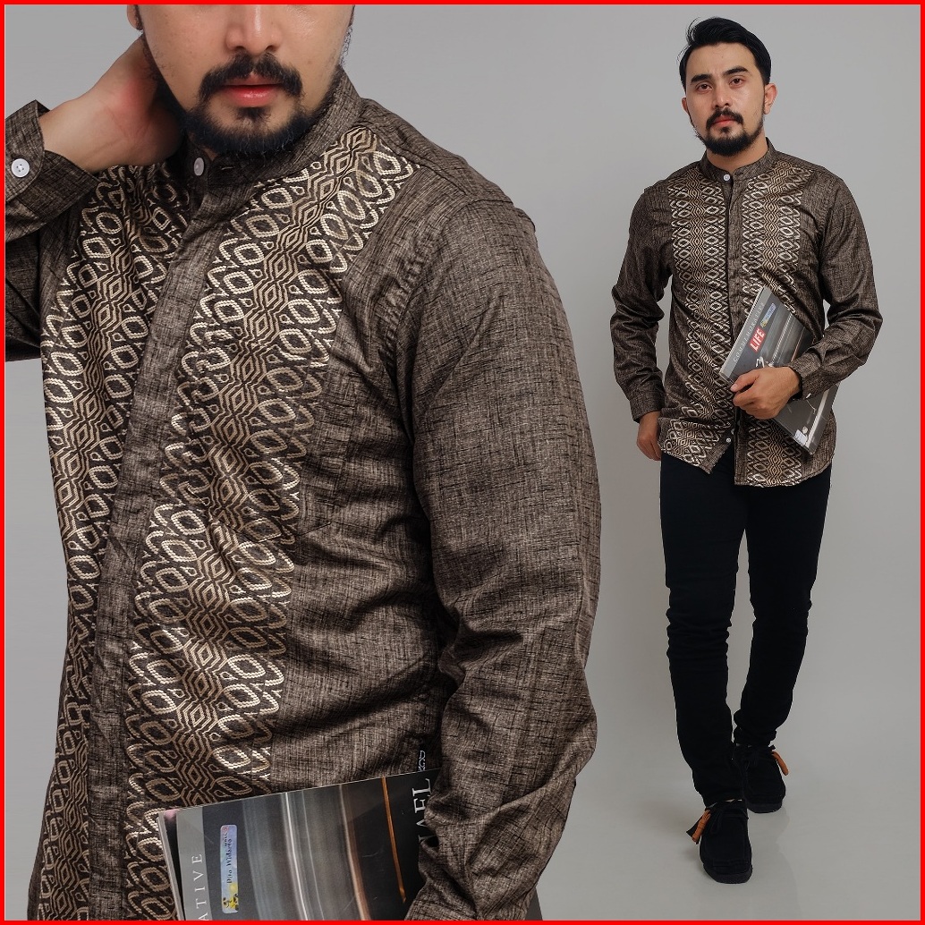 Dgm Kemeja Pria Koko Caramel Bordir Lengan Panjang Motif Geometri Lingkaran 2409