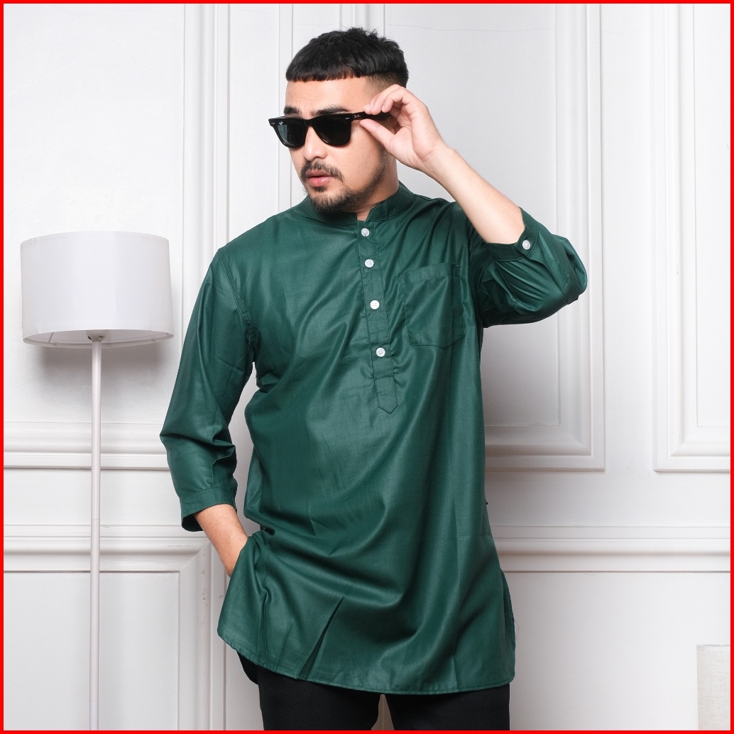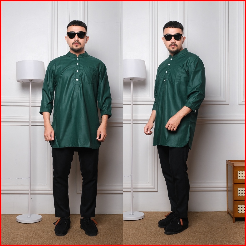 Dgm Baju Koko Pria Lengan 3 4 Toyobo Polos Premium Hijau Tua Koko Kurta 1648