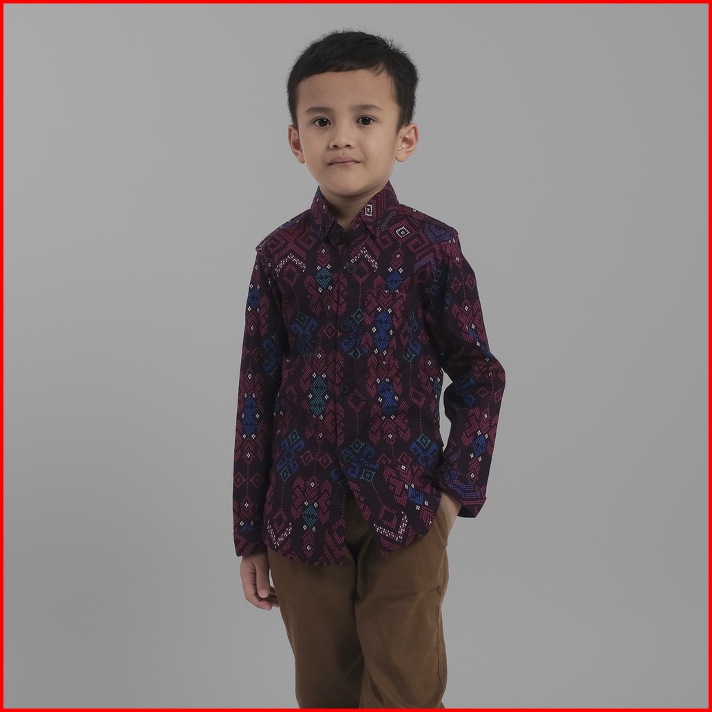 Dgm Kemeja Batik Anak Premium Lengan Panjang Songket Ungu 103