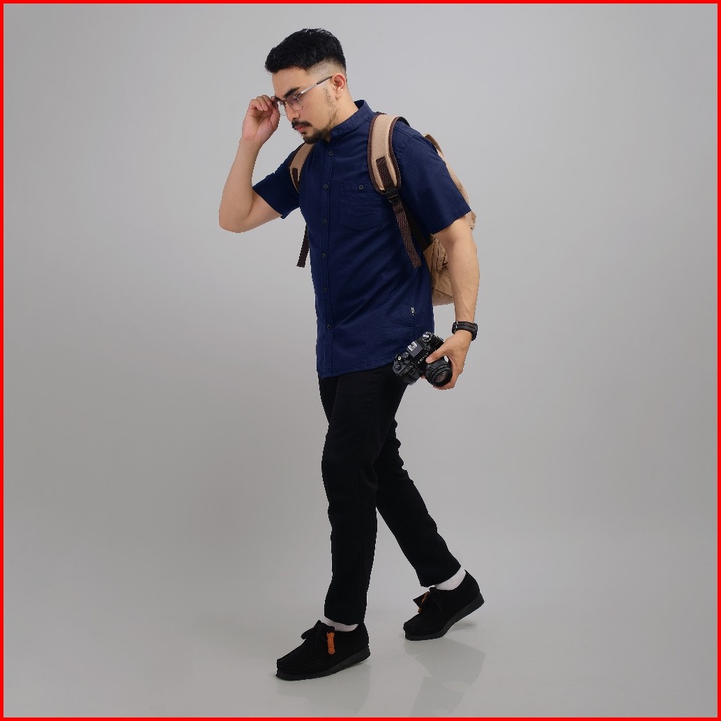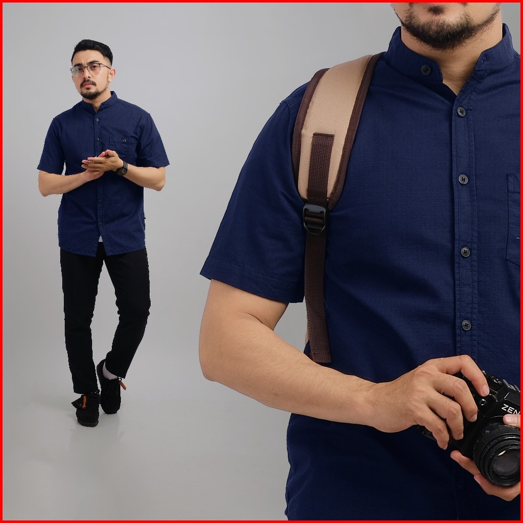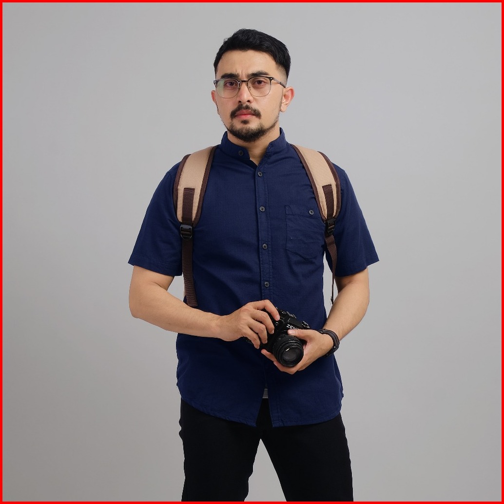Dgm Fashion Kemeja Pria Shanghai Polos Pendek Navy 1025