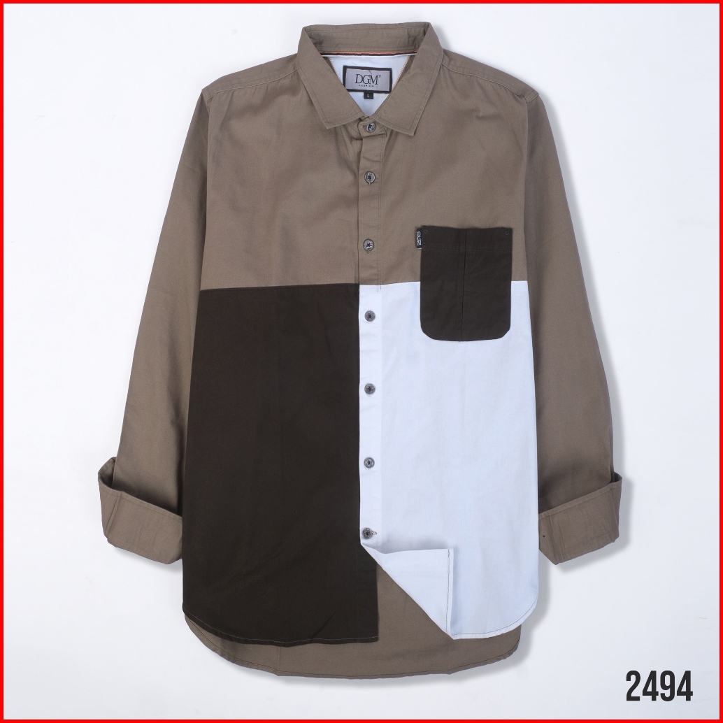 Dgm Workshirt Kemeja Kerja Katun Twill 30s Premium Lengan Panjang Kombinasi Kemeja Pria White Coklat Skala 2494