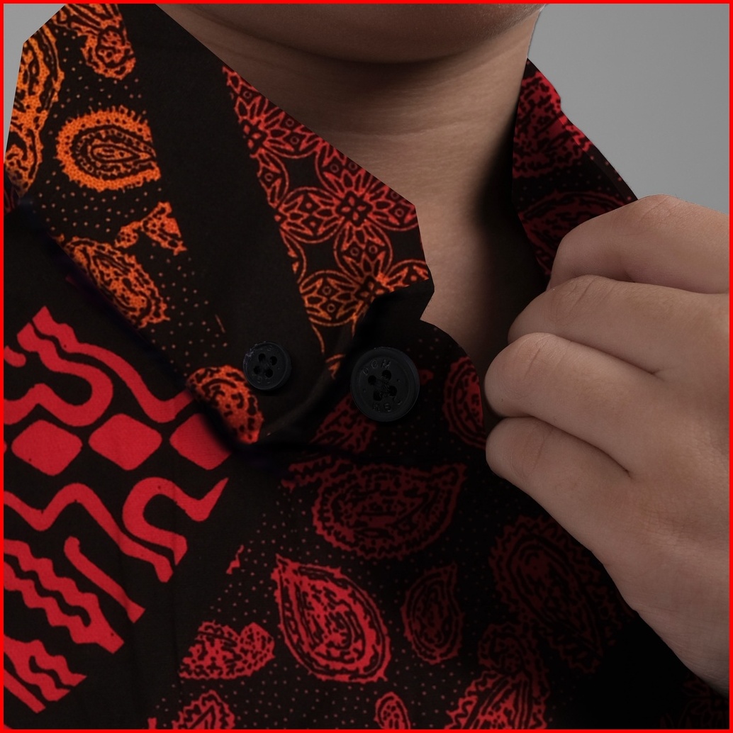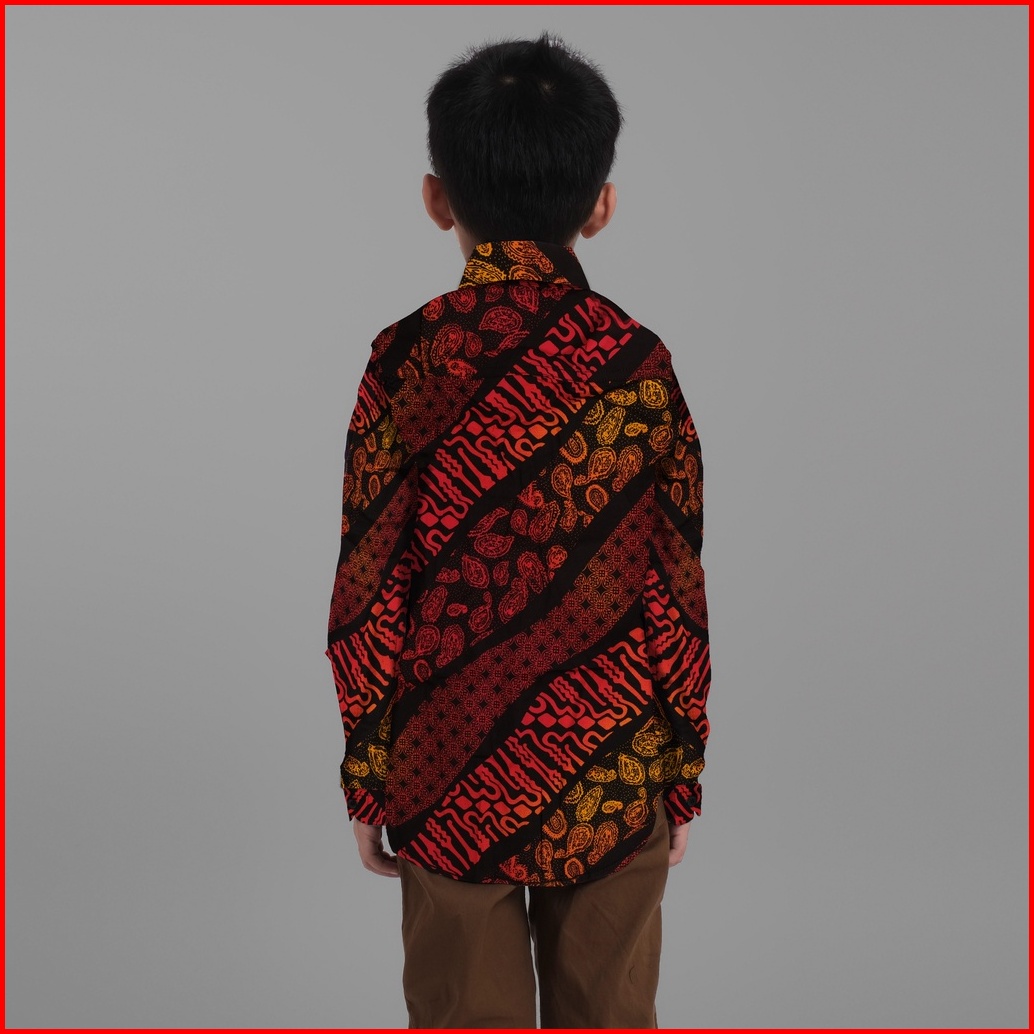 Dgm Kemeja Batik Anak Cowok Lengan Panjang Premium Gradasi Merah 108