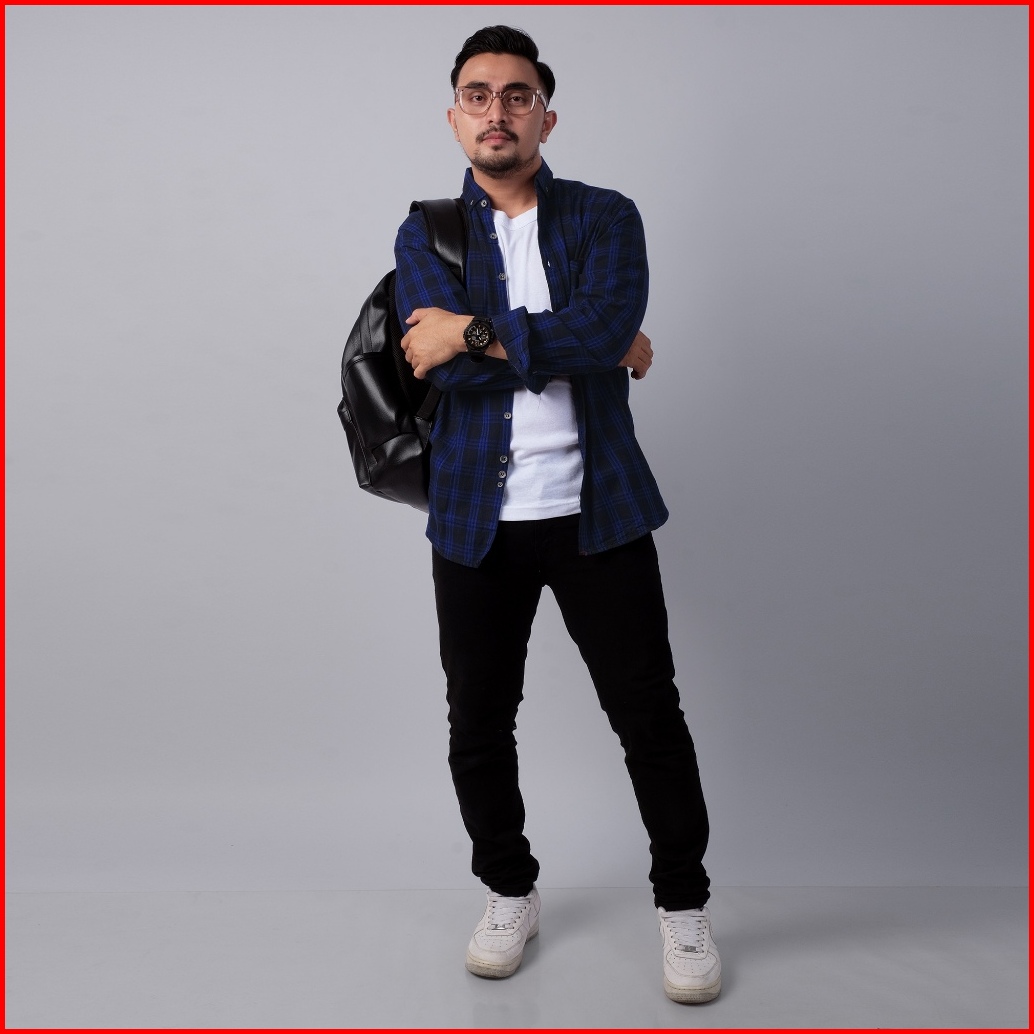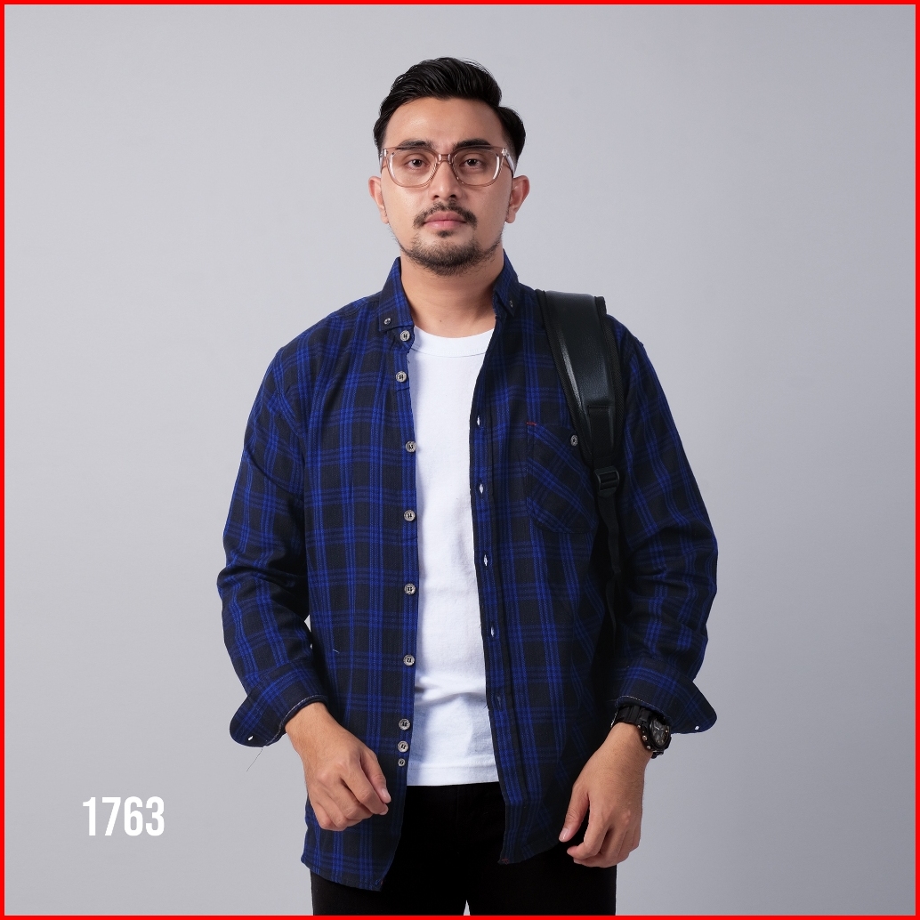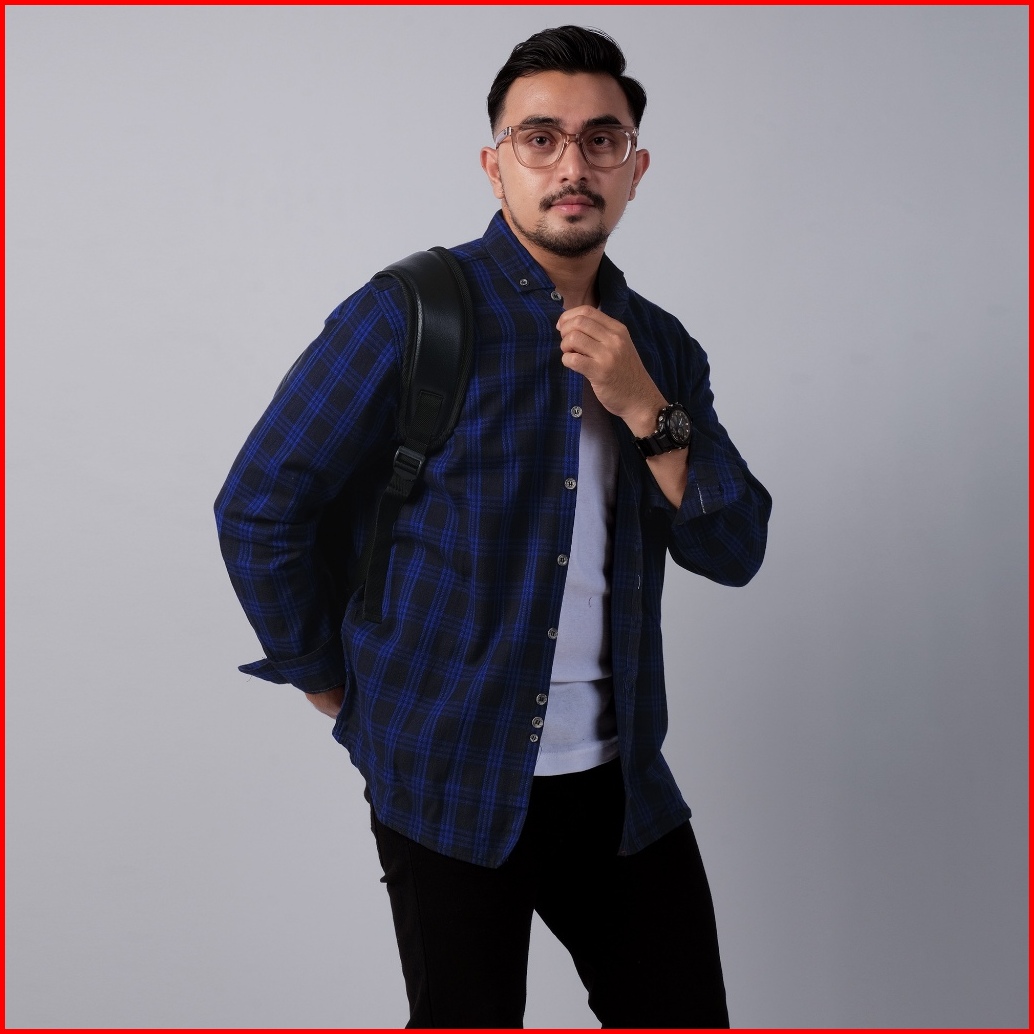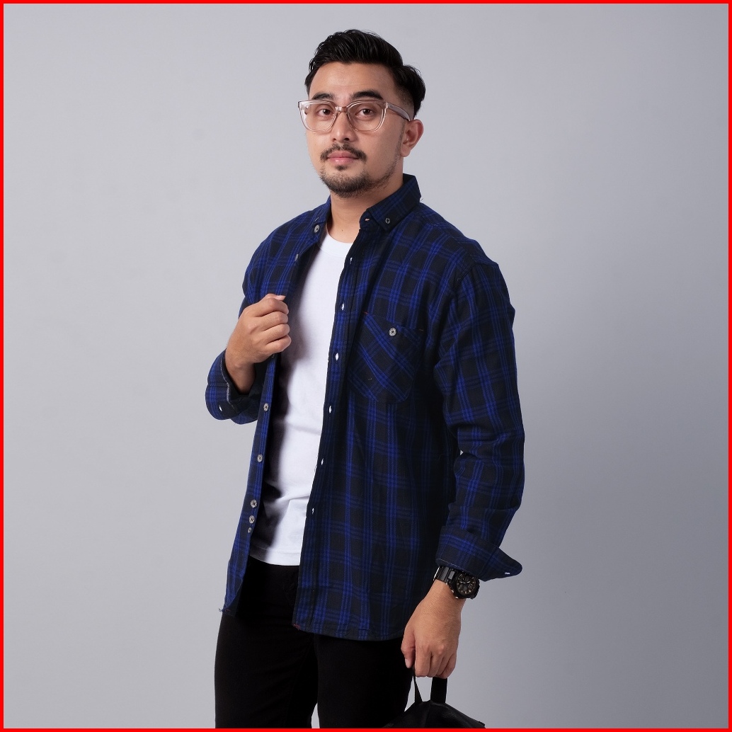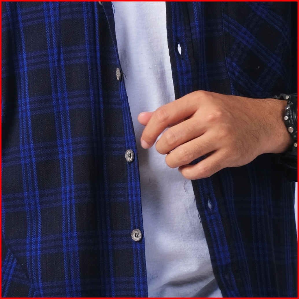 Dgm Kemeja Pria Flanel Premium Hitam Garis Biru Kotak-kotak 1763