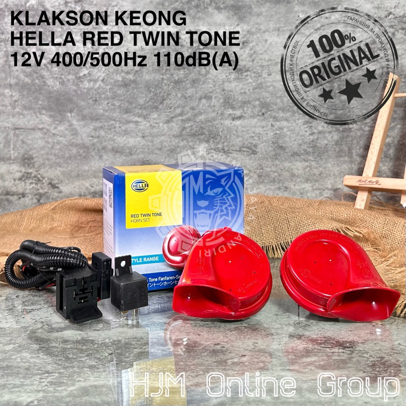 KLAKSON KEONG HELLA RED TWIN TONE 12V - KEONG MERAH PAKET KABEL RELAY SET