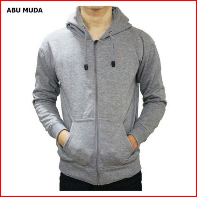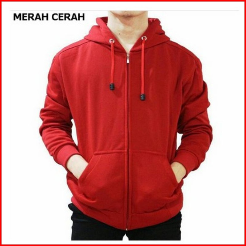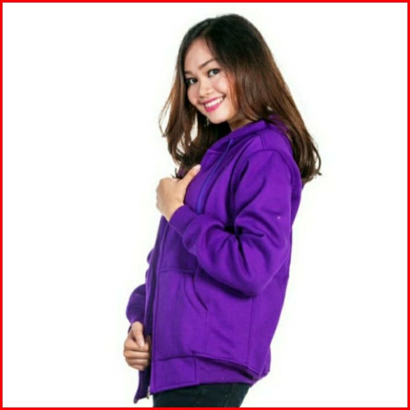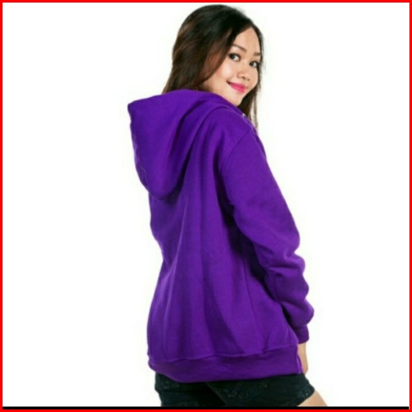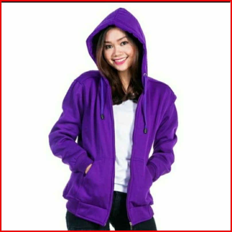 Jaket Hoodie Zipper Polos Unisex Ungu Tua
