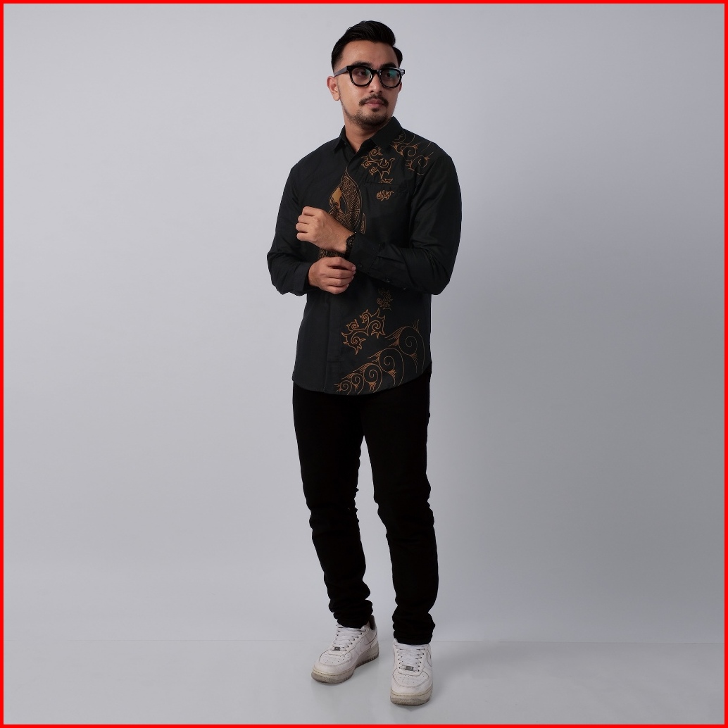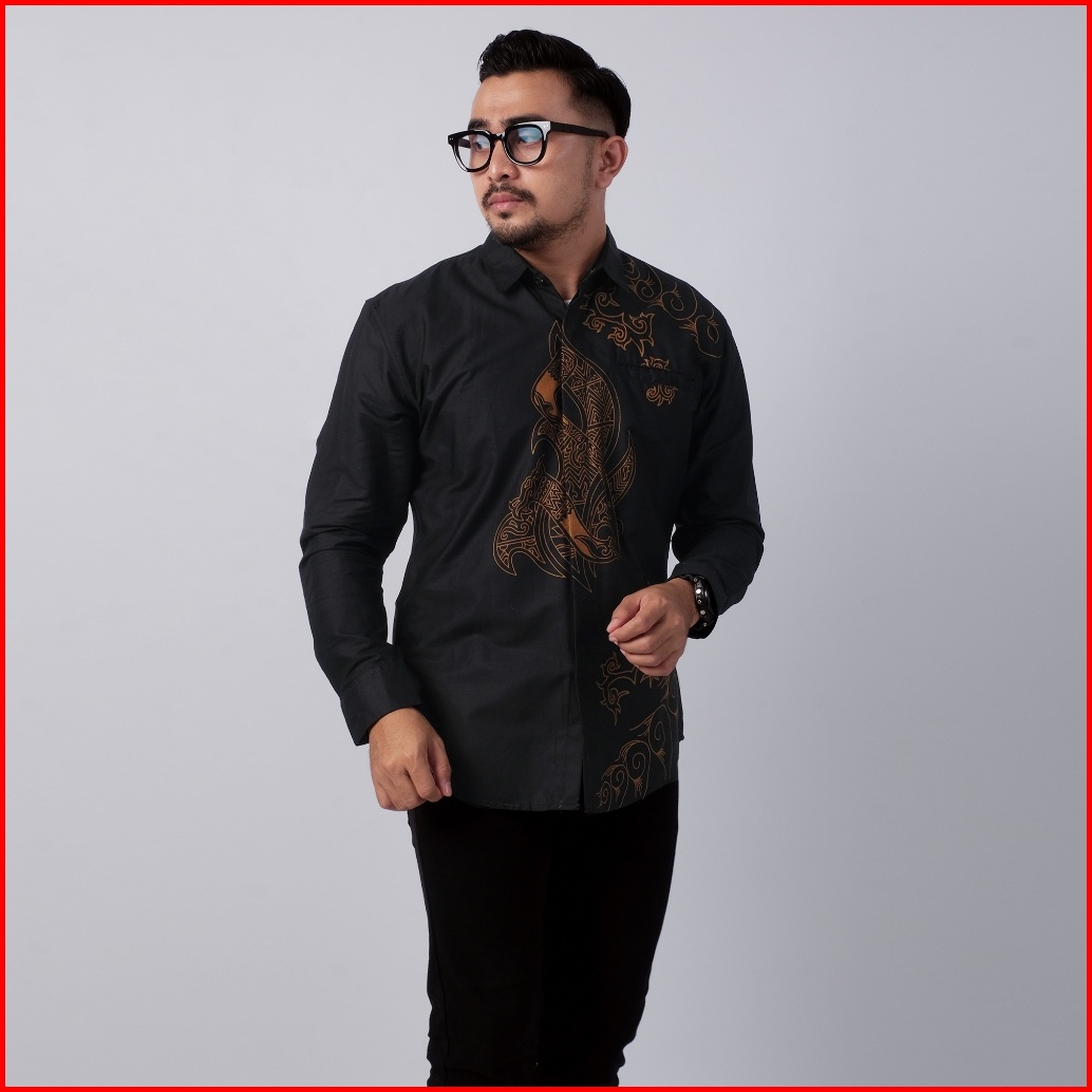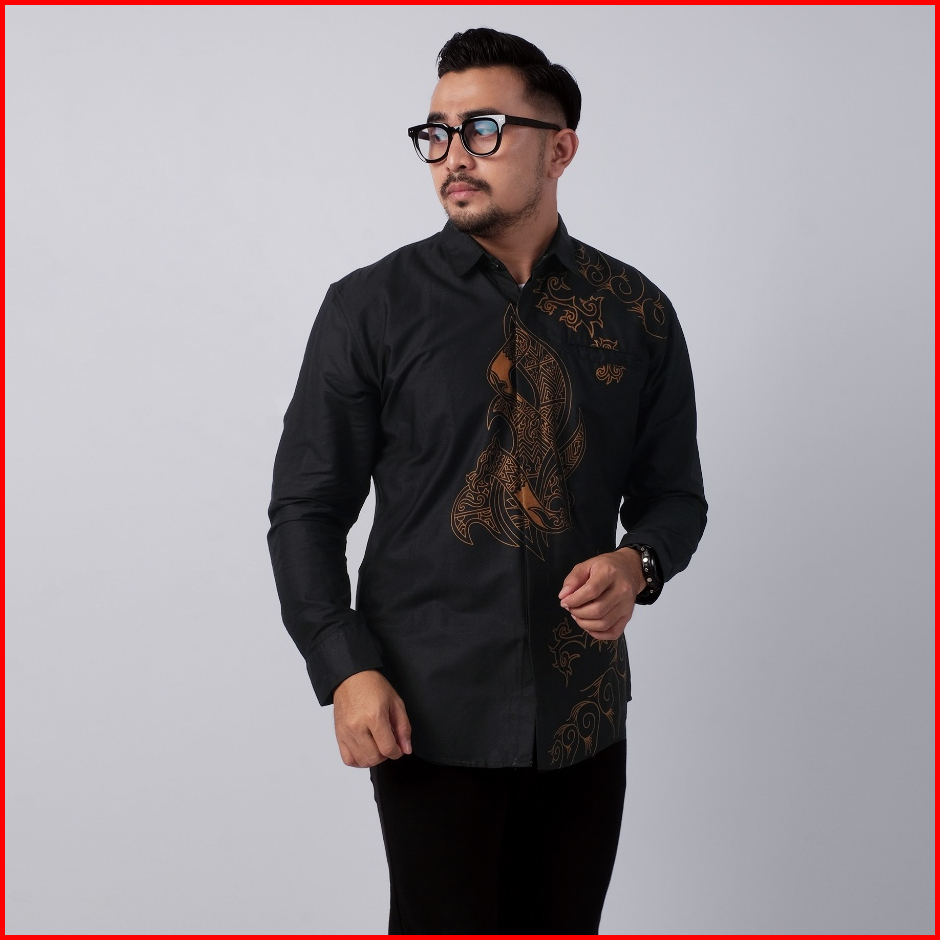 Dgm Kemeja Batik Pria Lapis Furing Lengan Panjang Hitam Premium Batik Puring Belati Hitam 2595