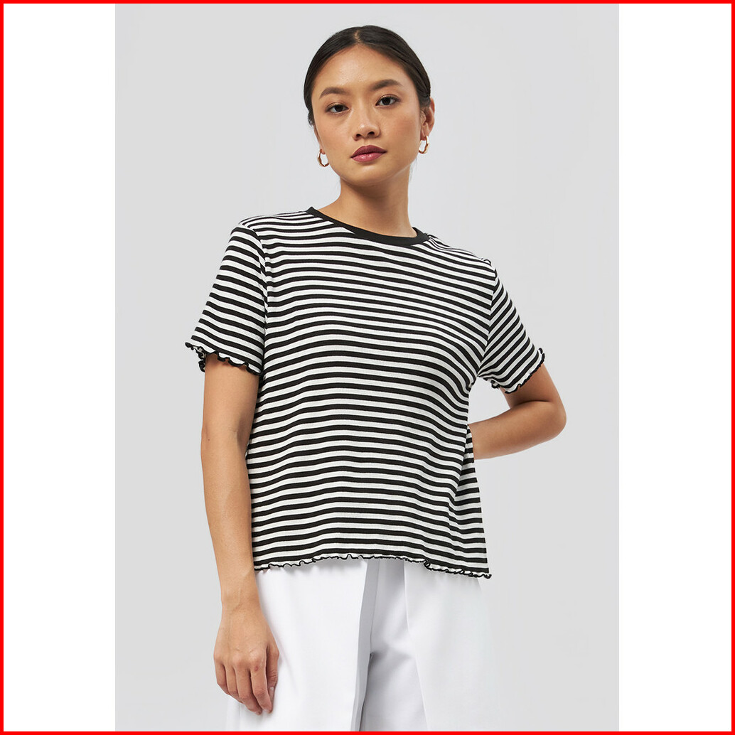 Executive Short Sleeve Stripes Rib T-shirt Black
