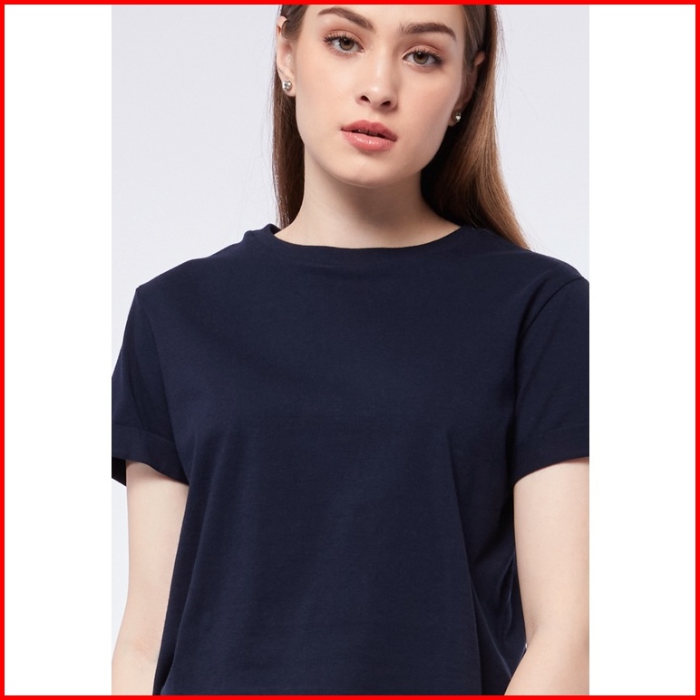 Executive Basic Cropped Cotton T-shirt Navy
