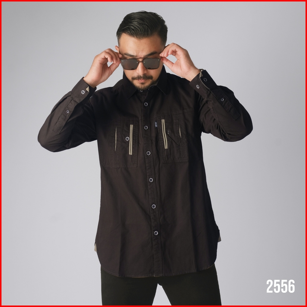 Dgm Kemeja Pria Katun Twill 30s Premium Panjang Double Pocket Workshirt Kemeja Kerja Saddle Brown Arsenio 2556