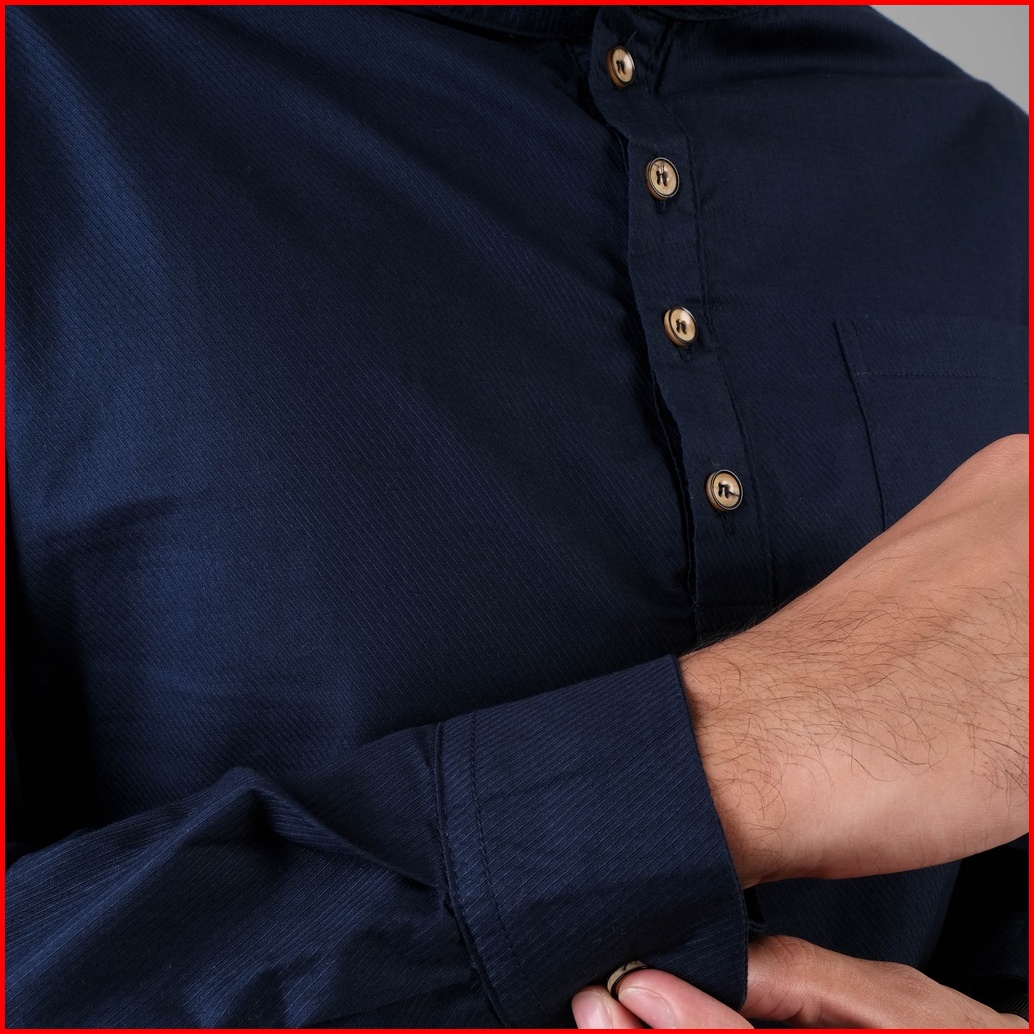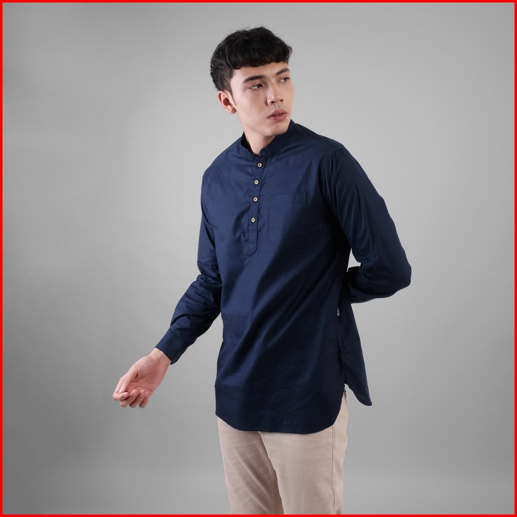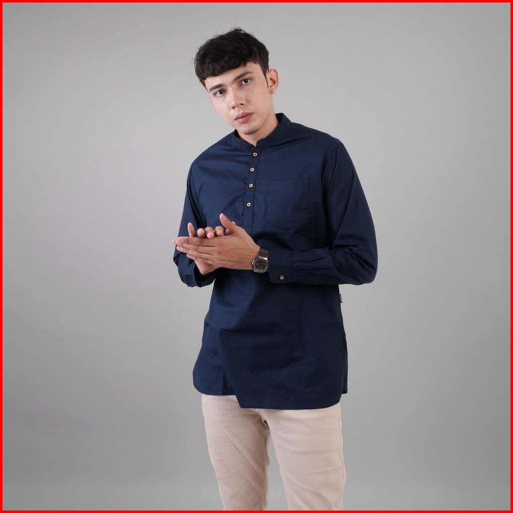 Dgm Baju Koko Pria Polos Katun Weave Premium Lengan Panjang Navy Koko Kurta 1607