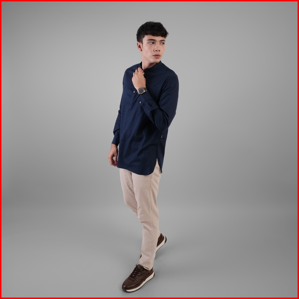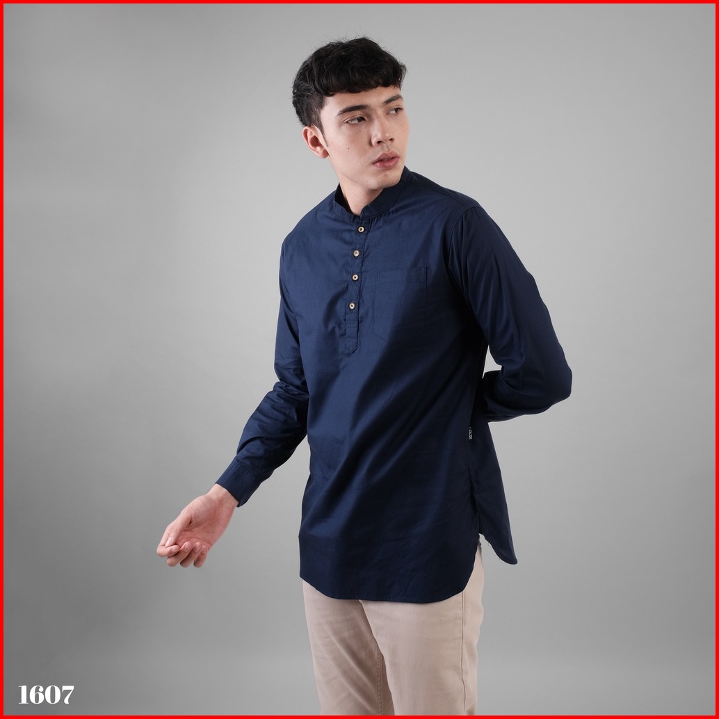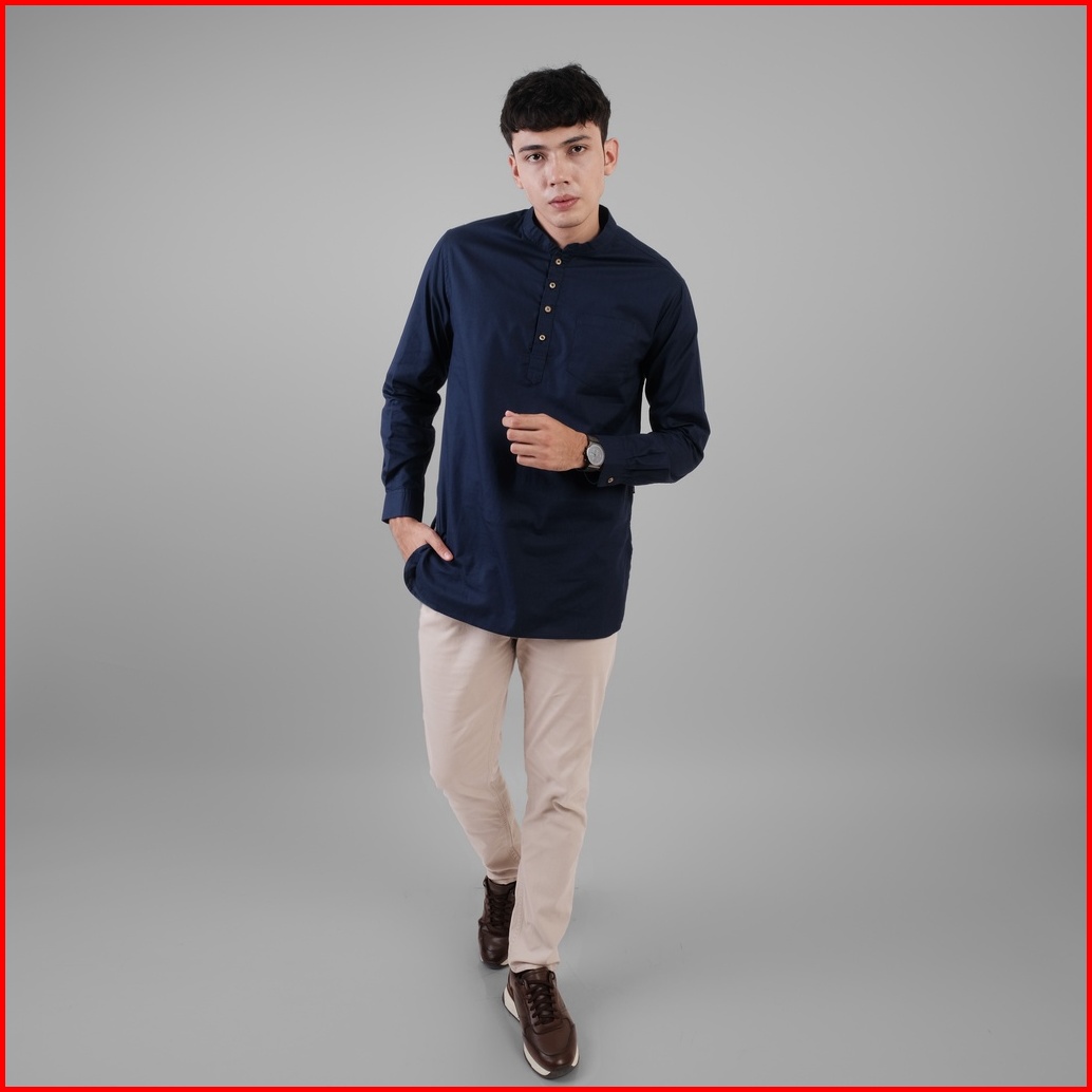 Dgm Baju Koko Pria Polos Katun Weave Premium Lengan Panjang Navy Koko Kurta 1607