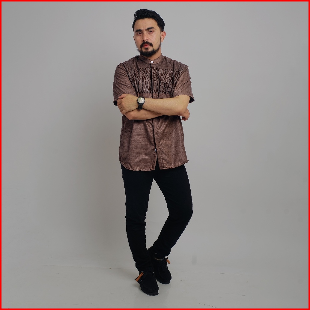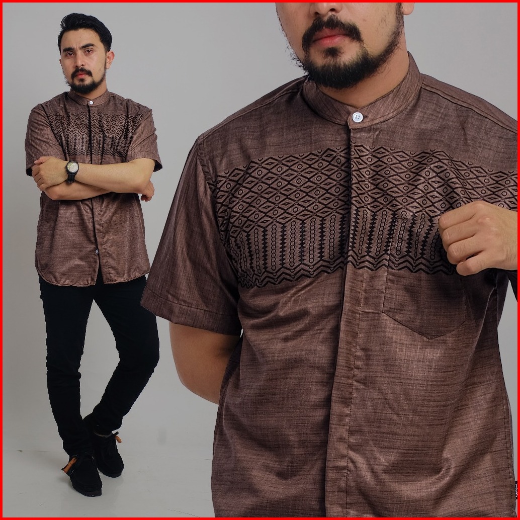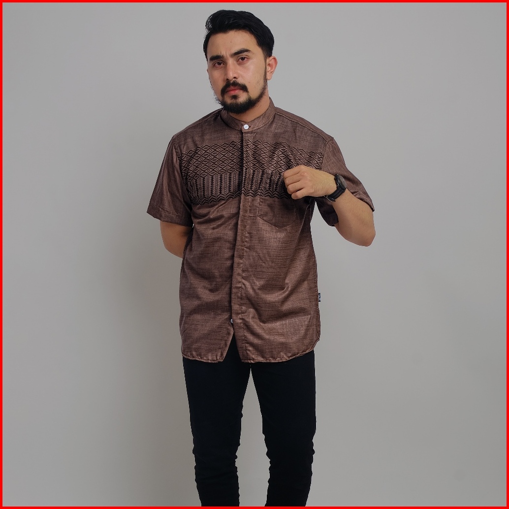 Dgm Kemeja Pria Koko Coklat Bistre Bordir Lengan Pendek Motif Diagonal 2433
